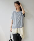・半袖Tシャツのインナーとして、裾からレースをちら見せしたレイヤードコーデ。