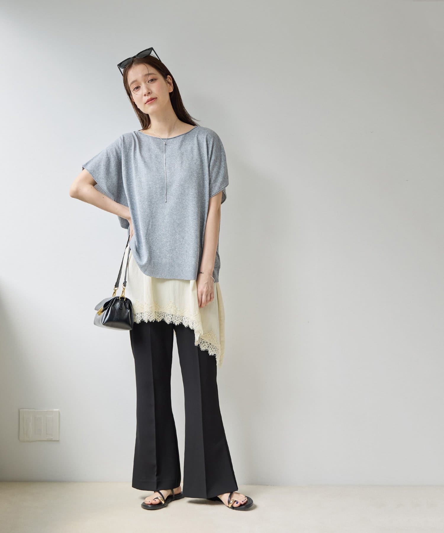 153cmスタッフ:左右非対称なデザインが新しい!上からTシャツを合わせても着丈が長いので、裾からレースのデザインが見えるのもポイントです◎主役としてはもちろんですが、ワンポイント使いにもおすすめ♪