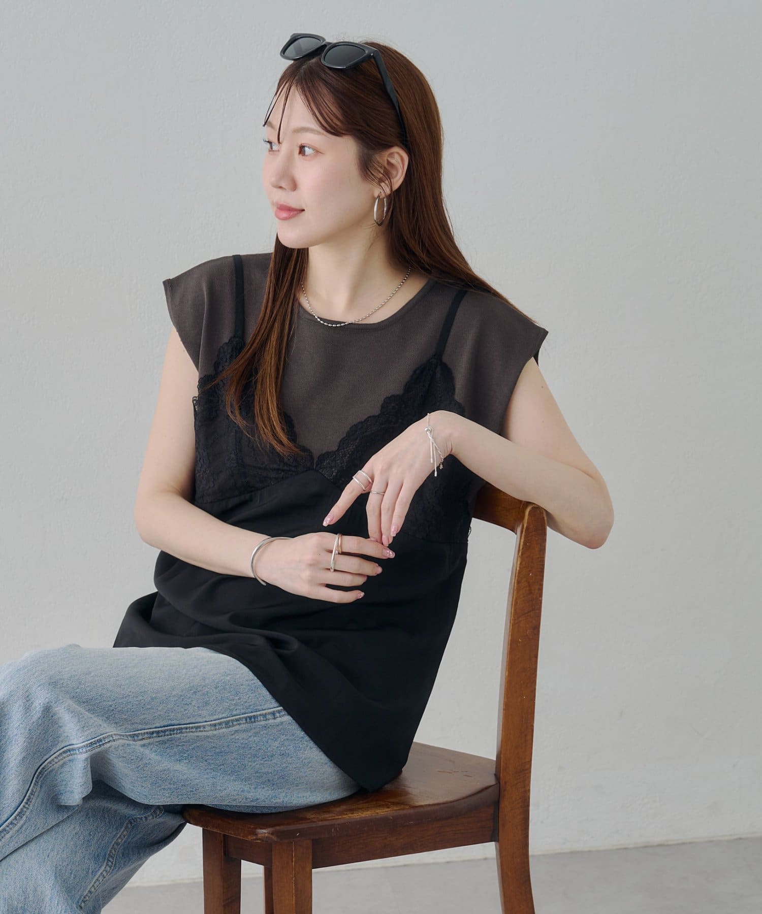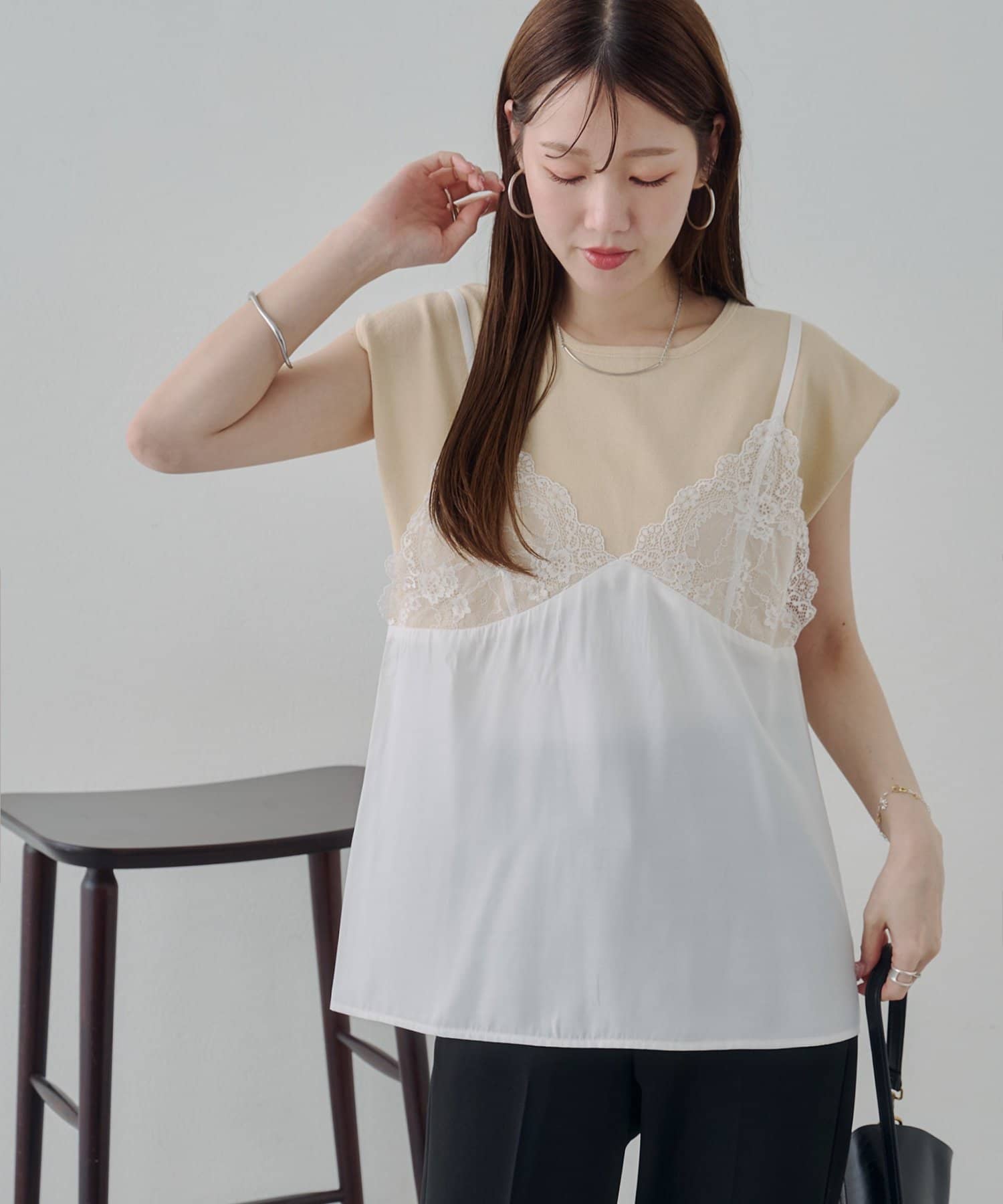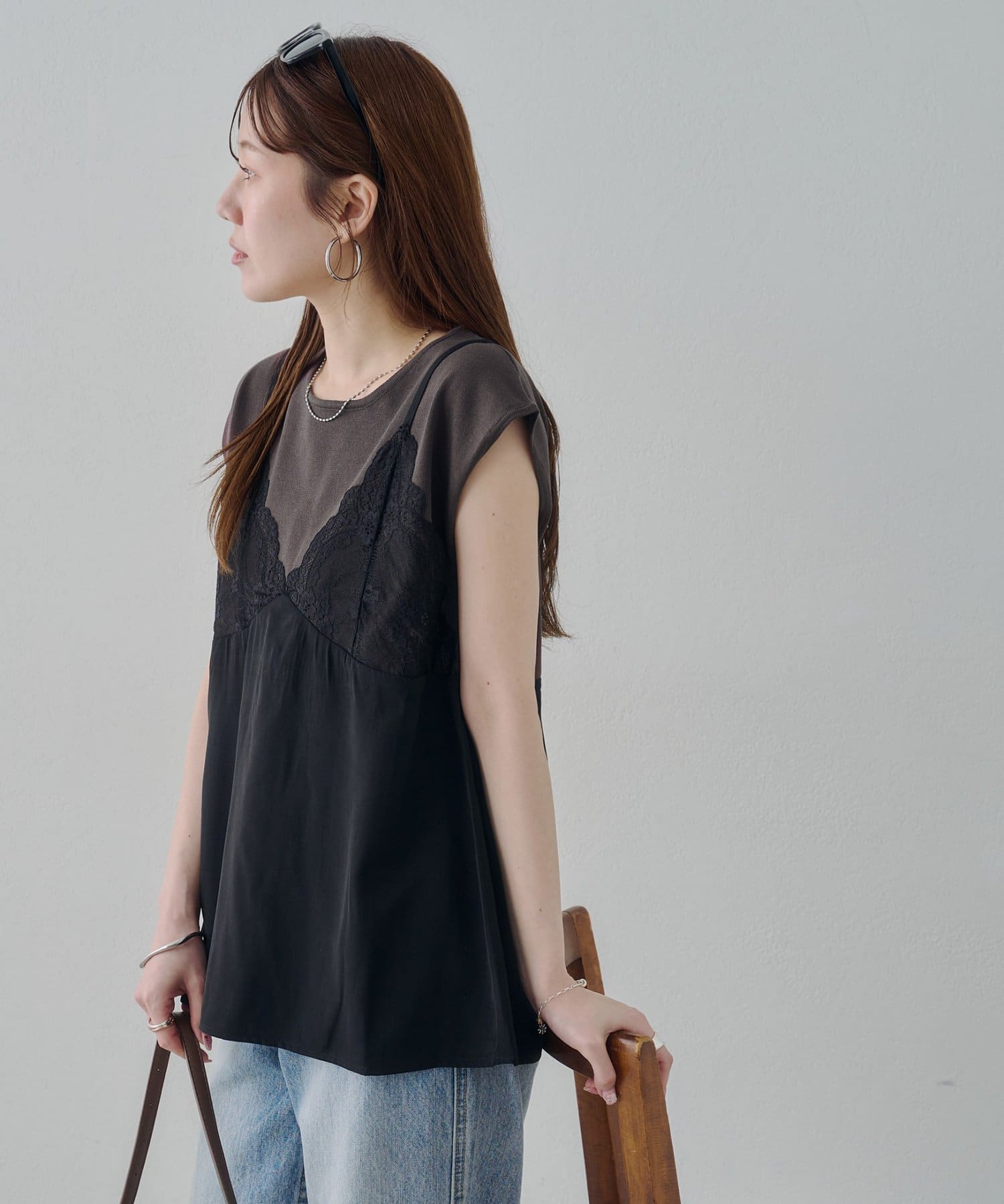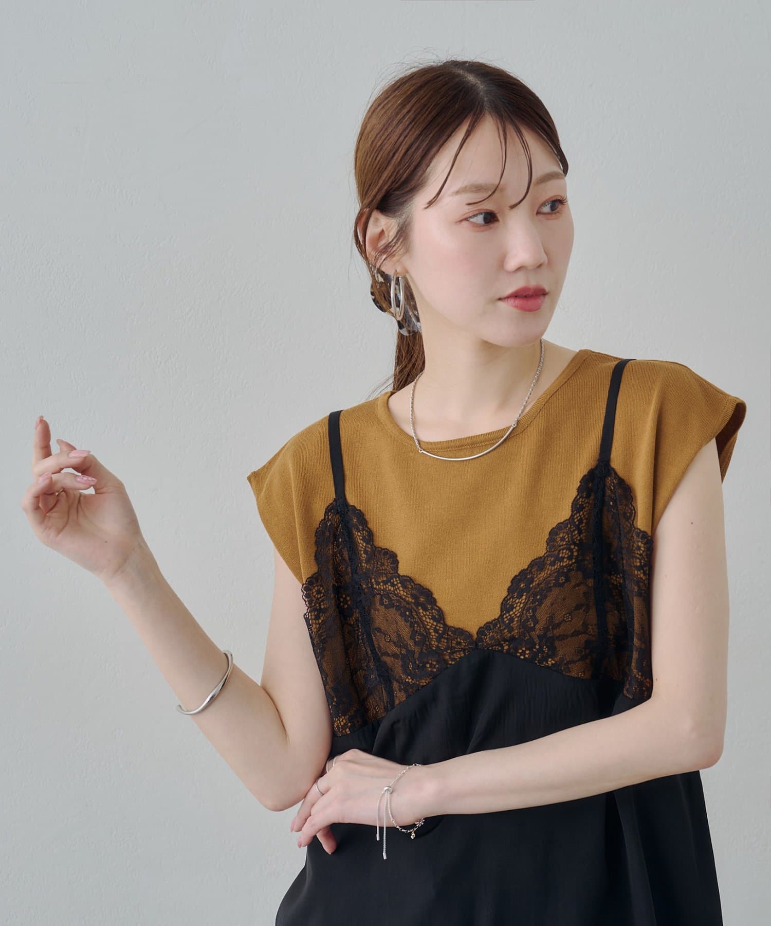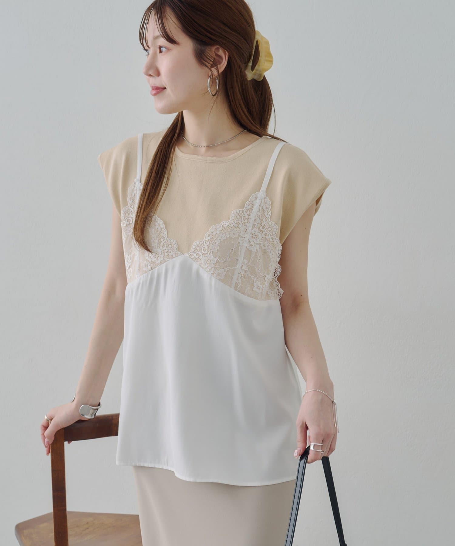 ・繊細なレースがレイヤードされた、目を惹く一枚