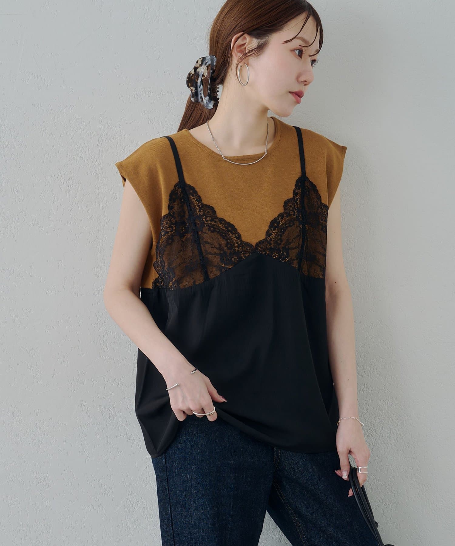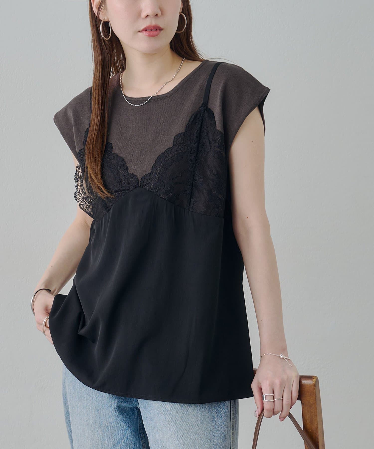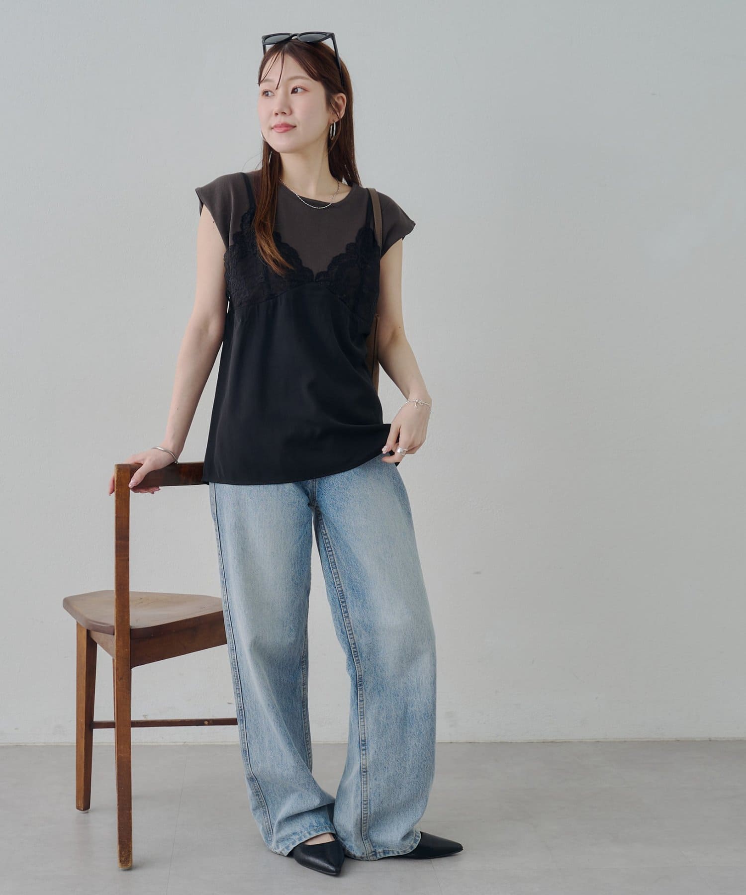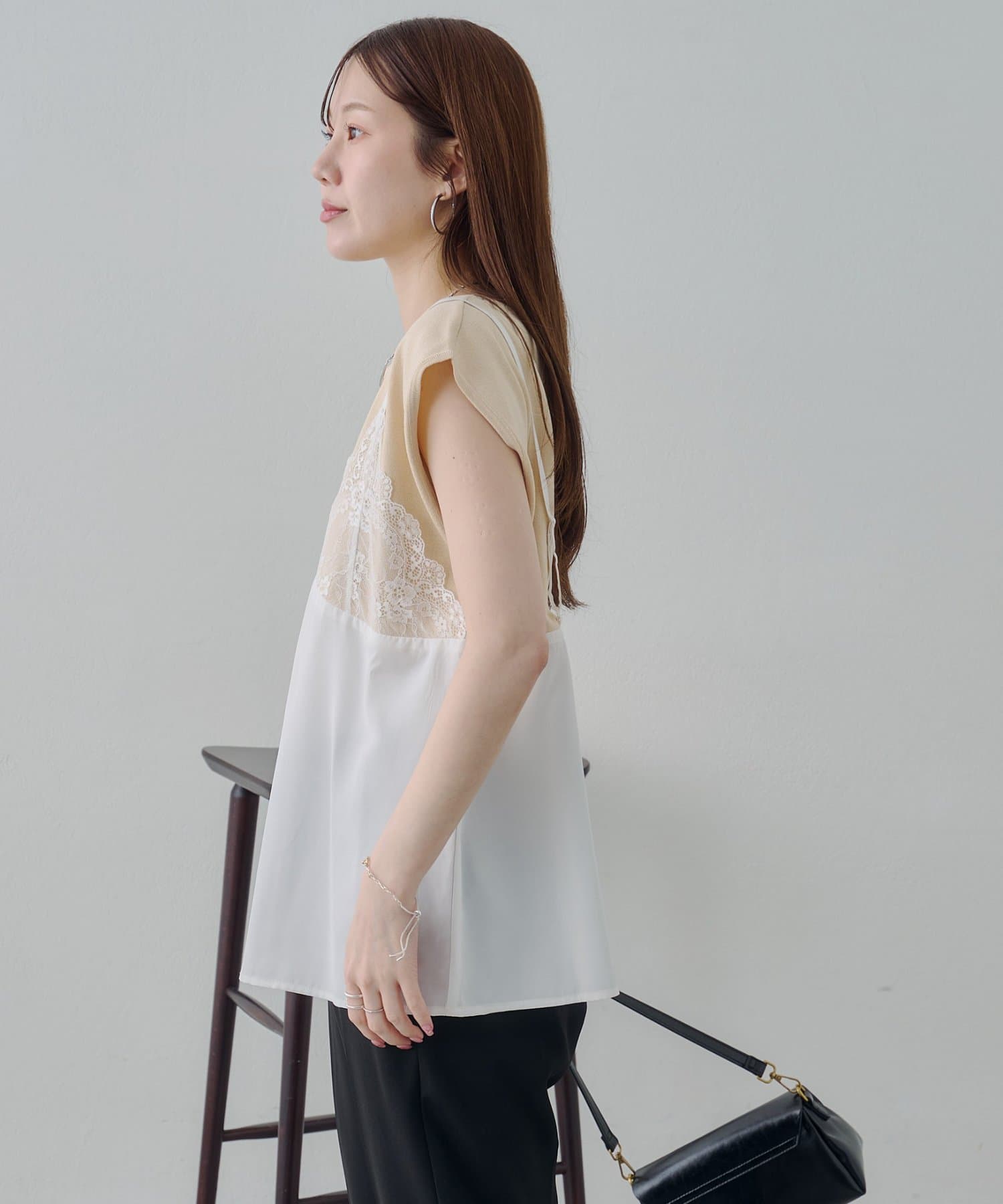 ・繊細なレースがレイヤードされた、目を惹く一枚