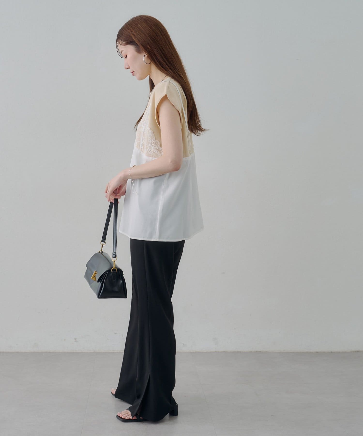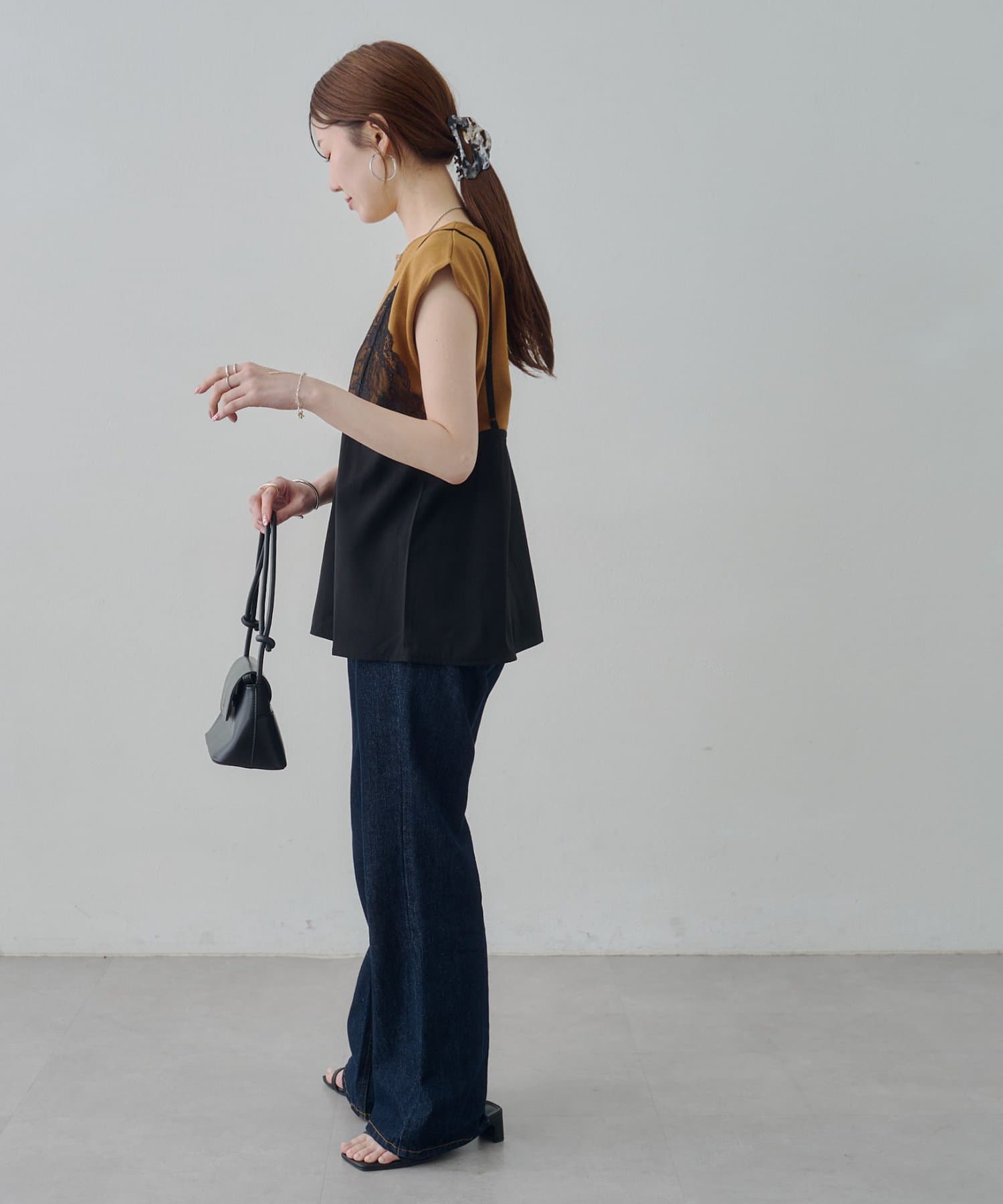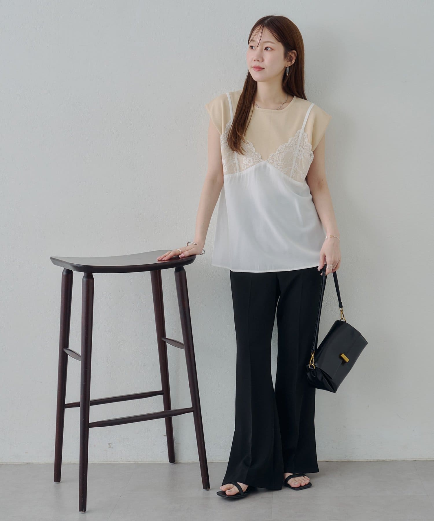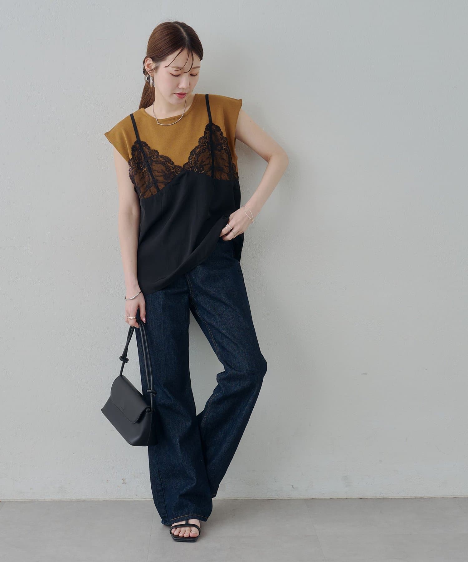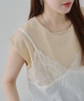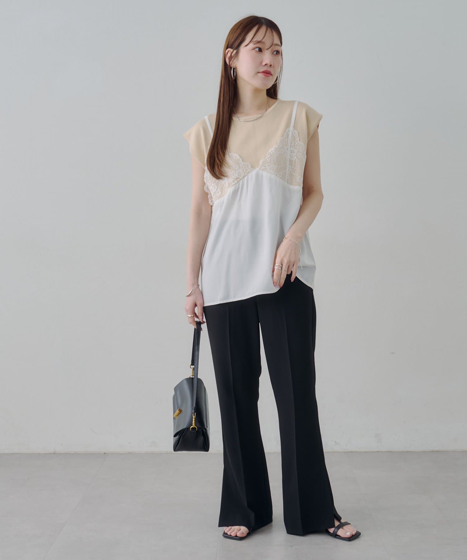 ・繊細なレースがレイヤードされた、目を惹く一枚