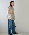 ・タンクトップとリネンパンツの組み合わせで、涼しげなリラックススタイルの完成です。