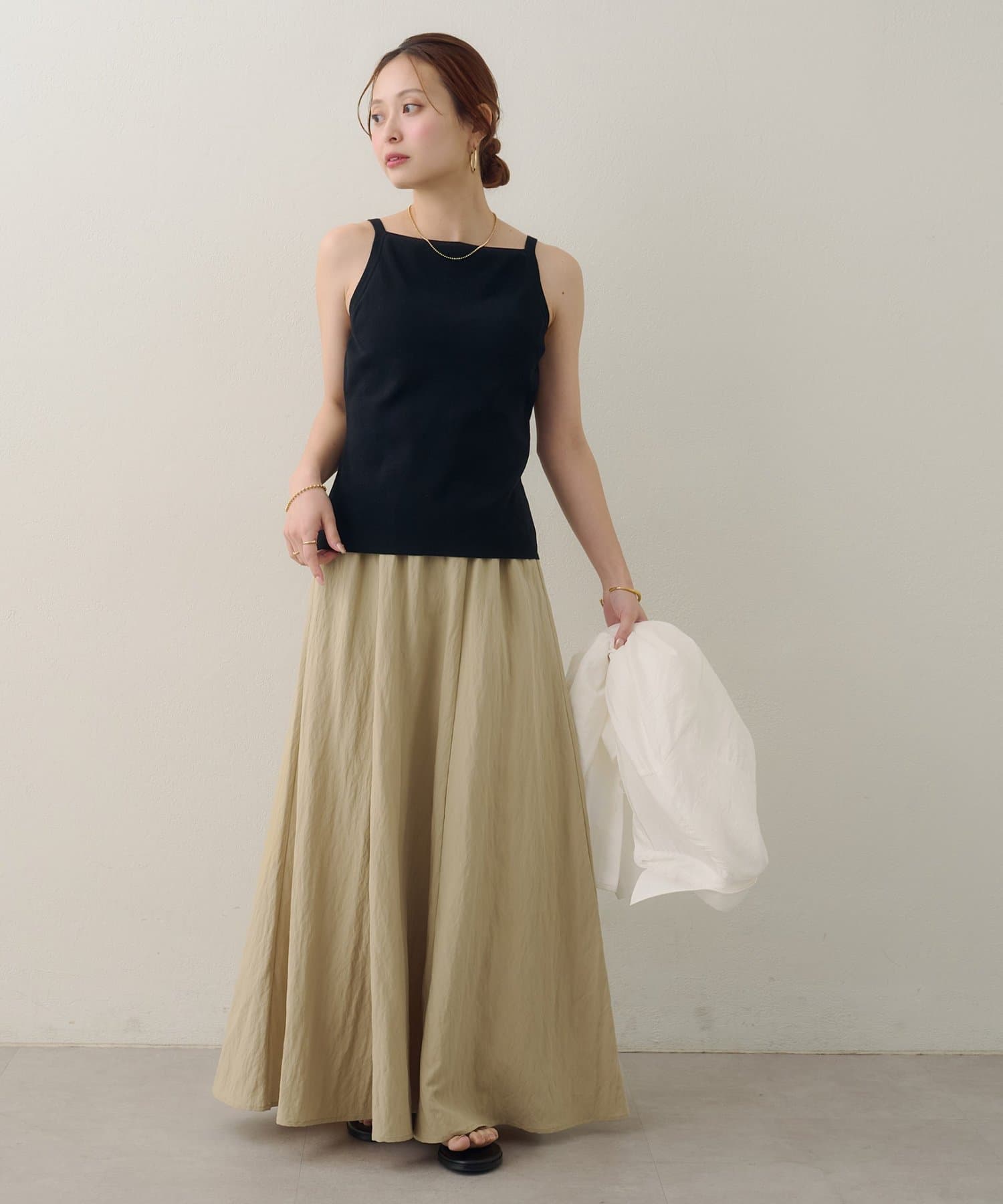 ・キャミソールと合わせたヘルシーなスタイリングも素敵です