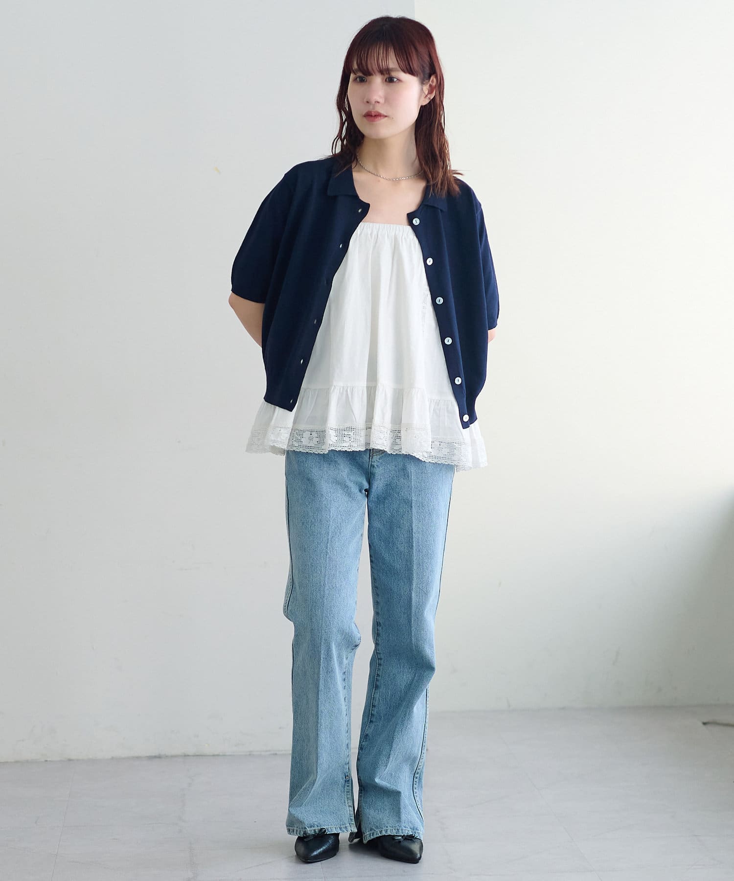 インスタでスタッフさん達の着こなしを見て欲しいと思ってたアイテム!なんとかギリギリ購入できて良かったです。予想通りかわいい。レイヤード楽しむつもりです♪