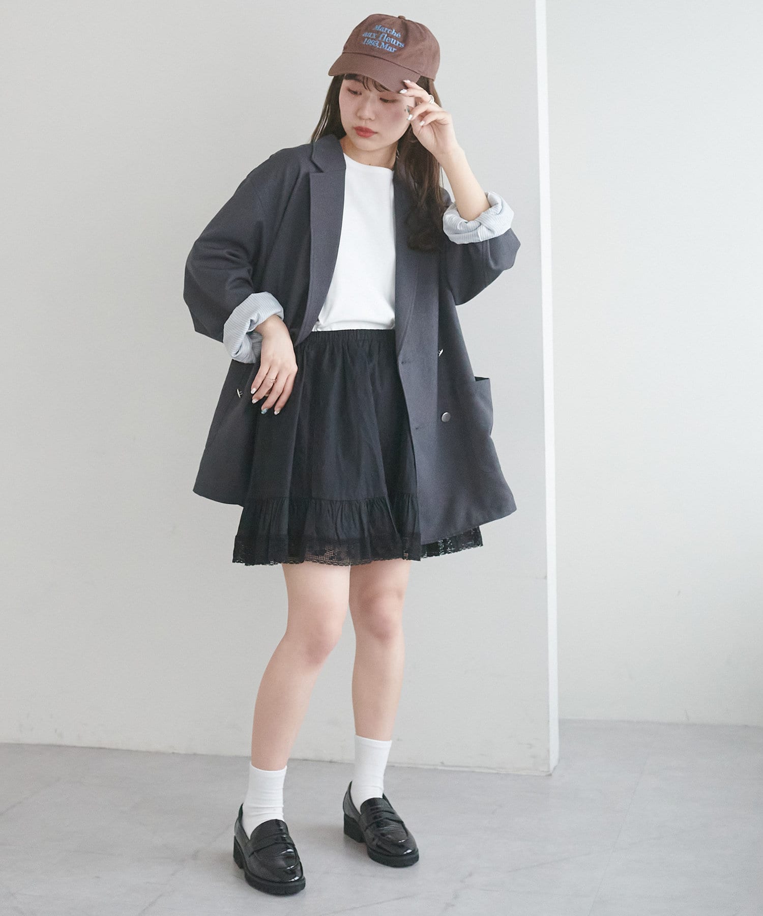 アラフォーでも可愛いすぎずに取り入れやすく、気になる腰回りを隠せるのでとても便利です!