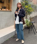 膝丈くらいの長さで着用ができるのでボトムスとのバランスがよいです!秋冬はスウェットやニットにレイヤードし、春夏は薄手のカーディガンや
