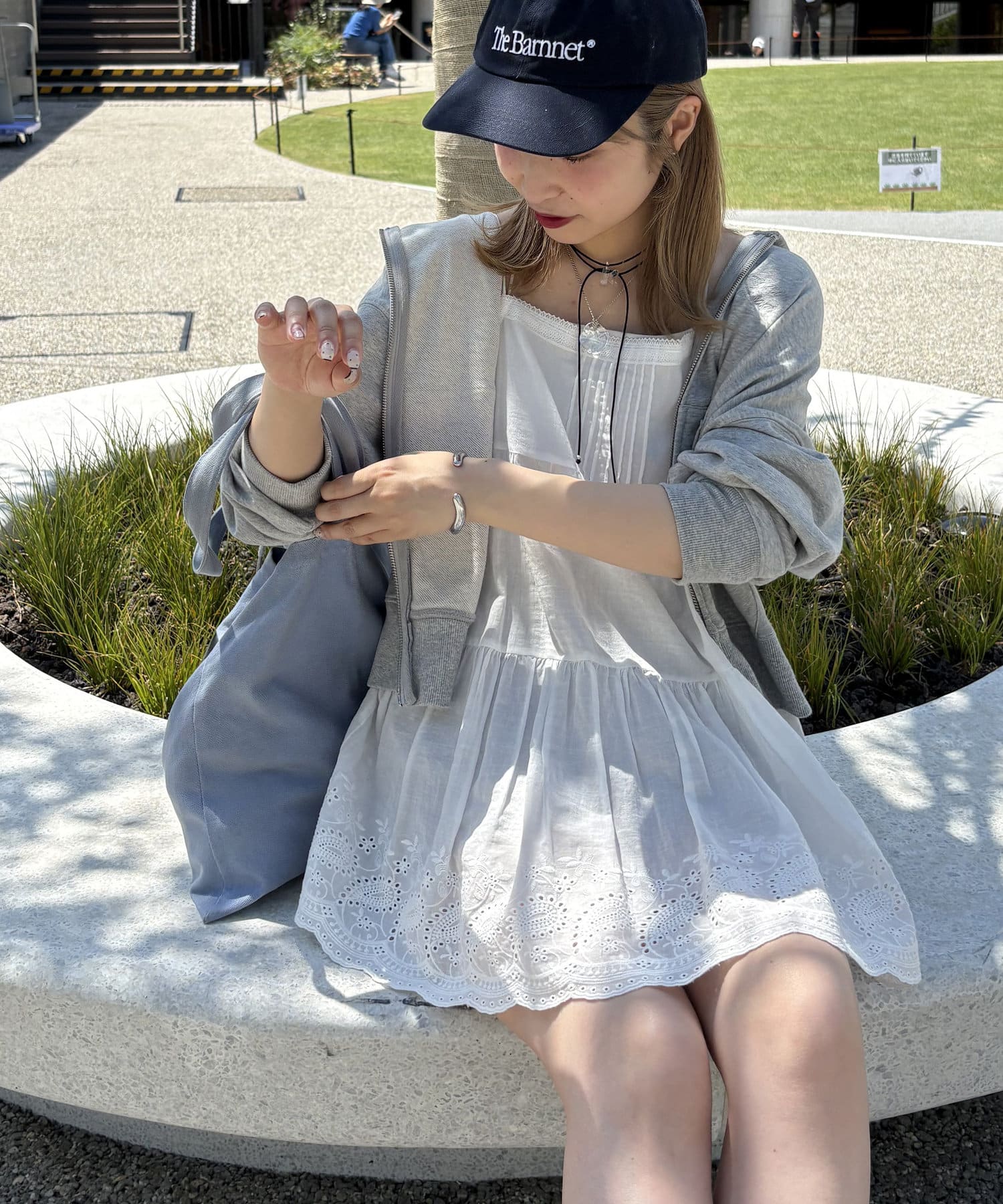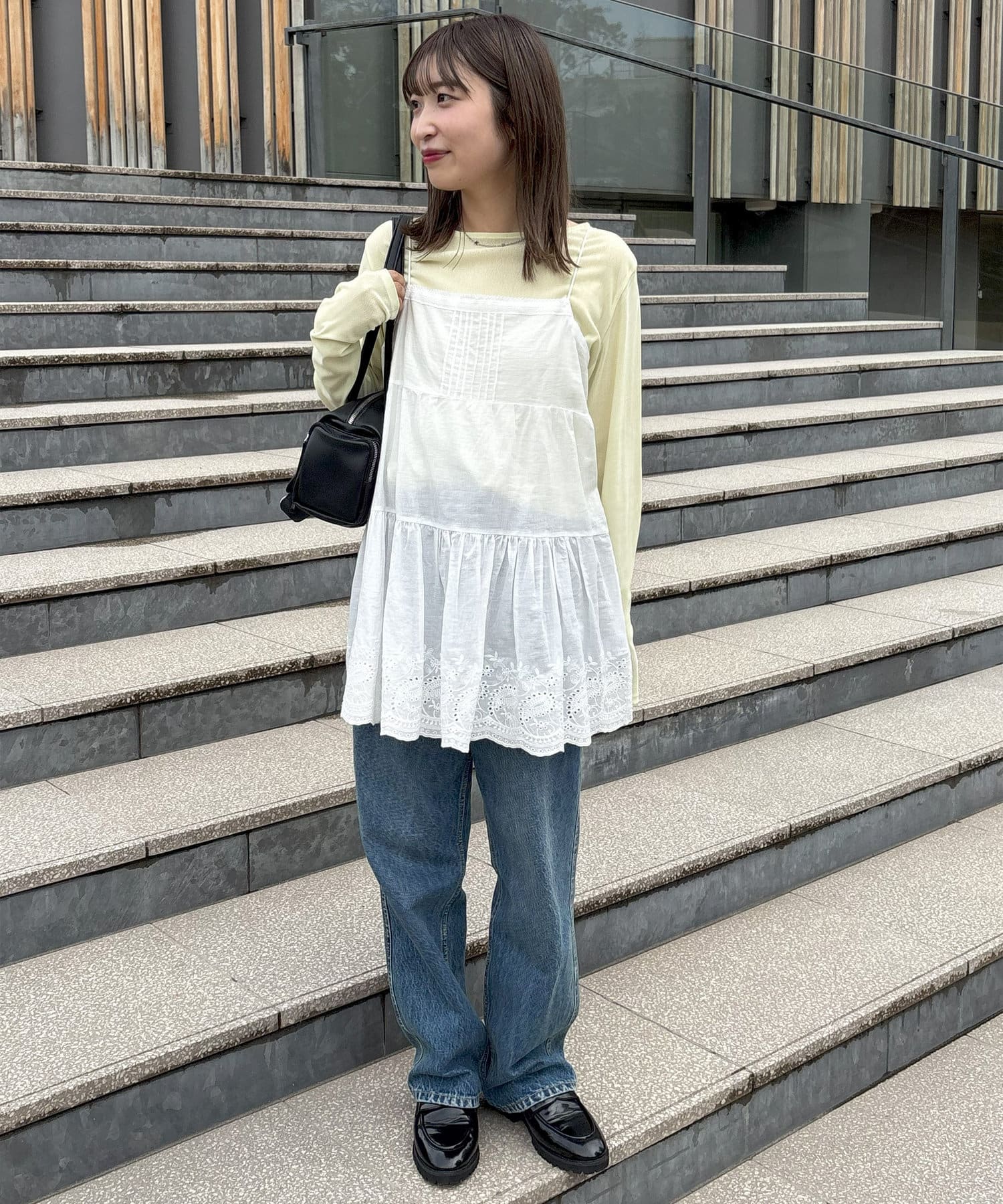 14cmスタッフ:胸元と裾のレースデザインがコーデにかわいらしさをプラスしてくれます◎