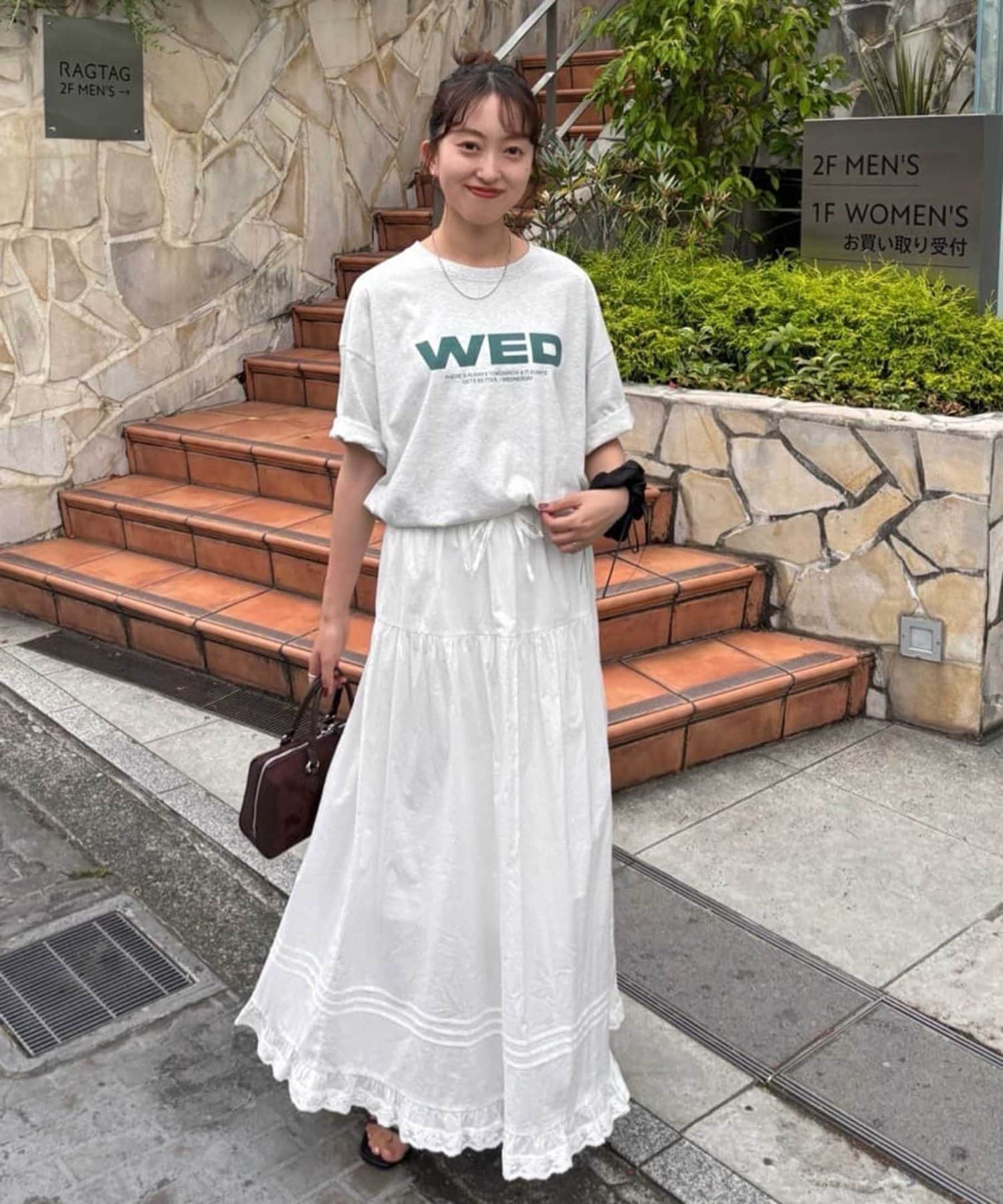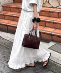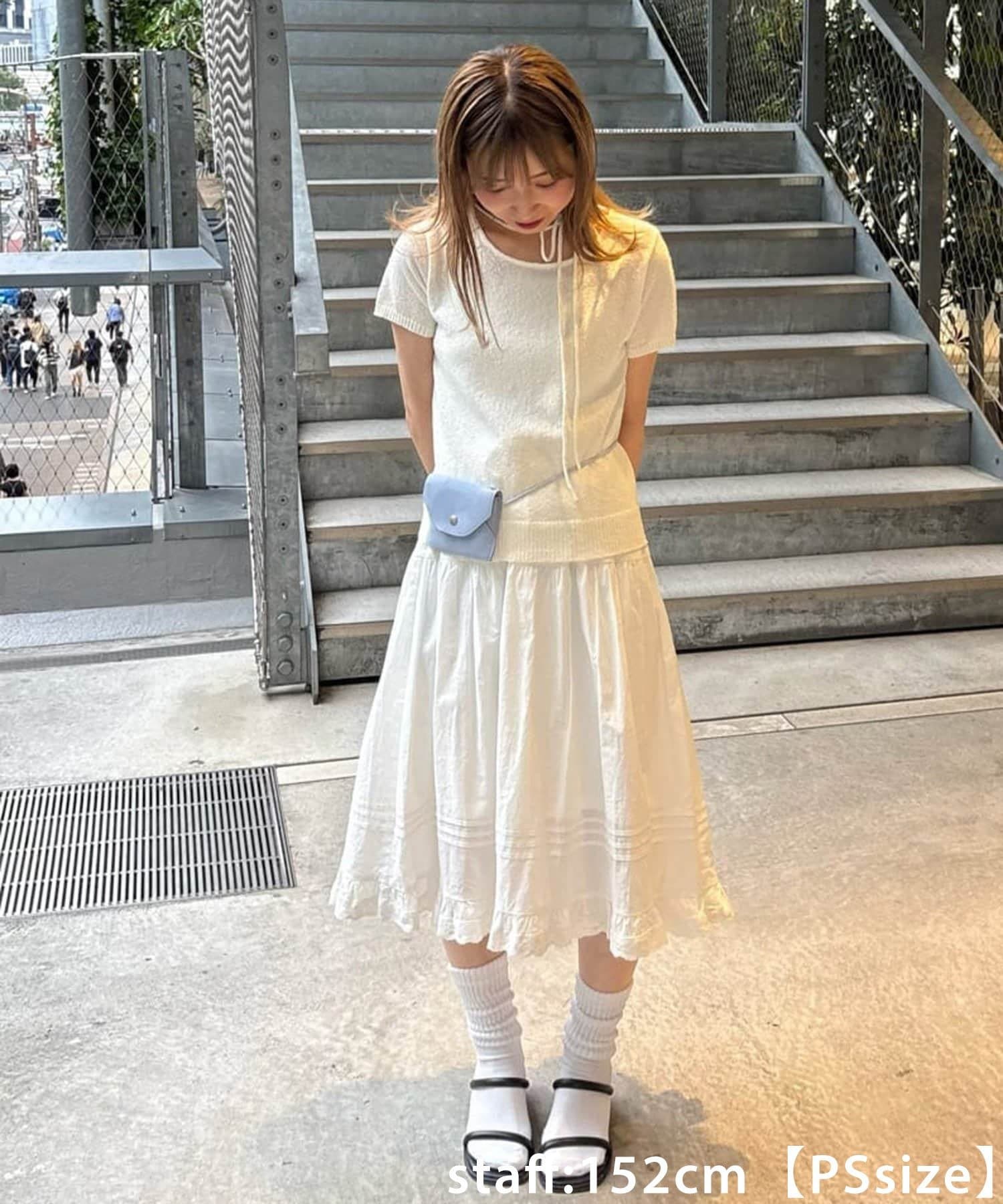 163cmスタッフ:Fサイズはくるぶしが見えるくらいの丈感になります!甘めのアイテムなので、キレイめなジャケットを合わせてメリハリのあるコーディネートがおすすめです!