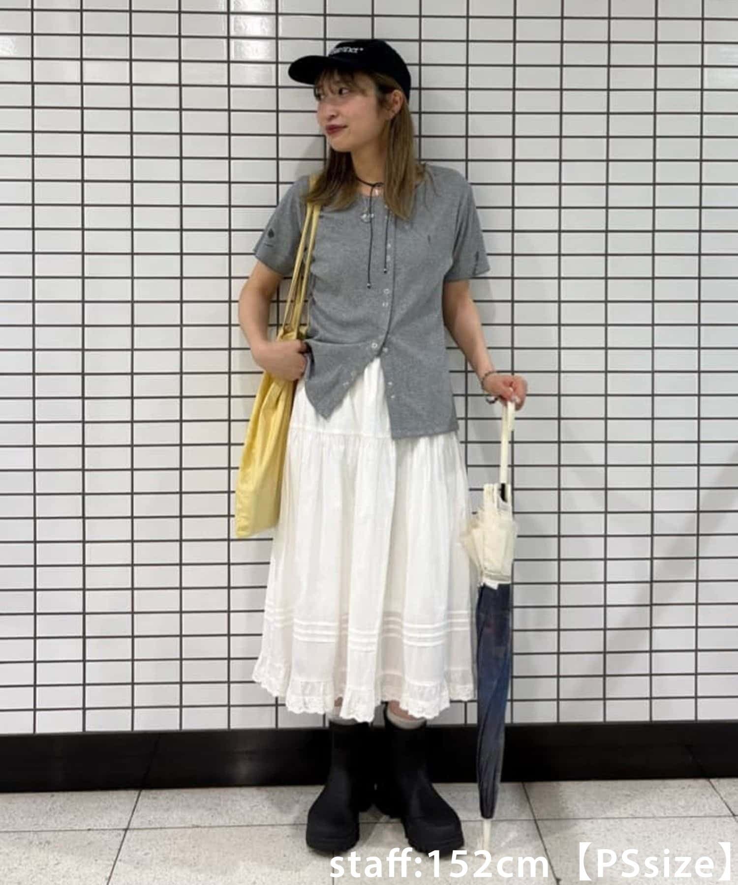 PSサイズは、デニムやリブパンツなどとのレイヤードもおすすめです!