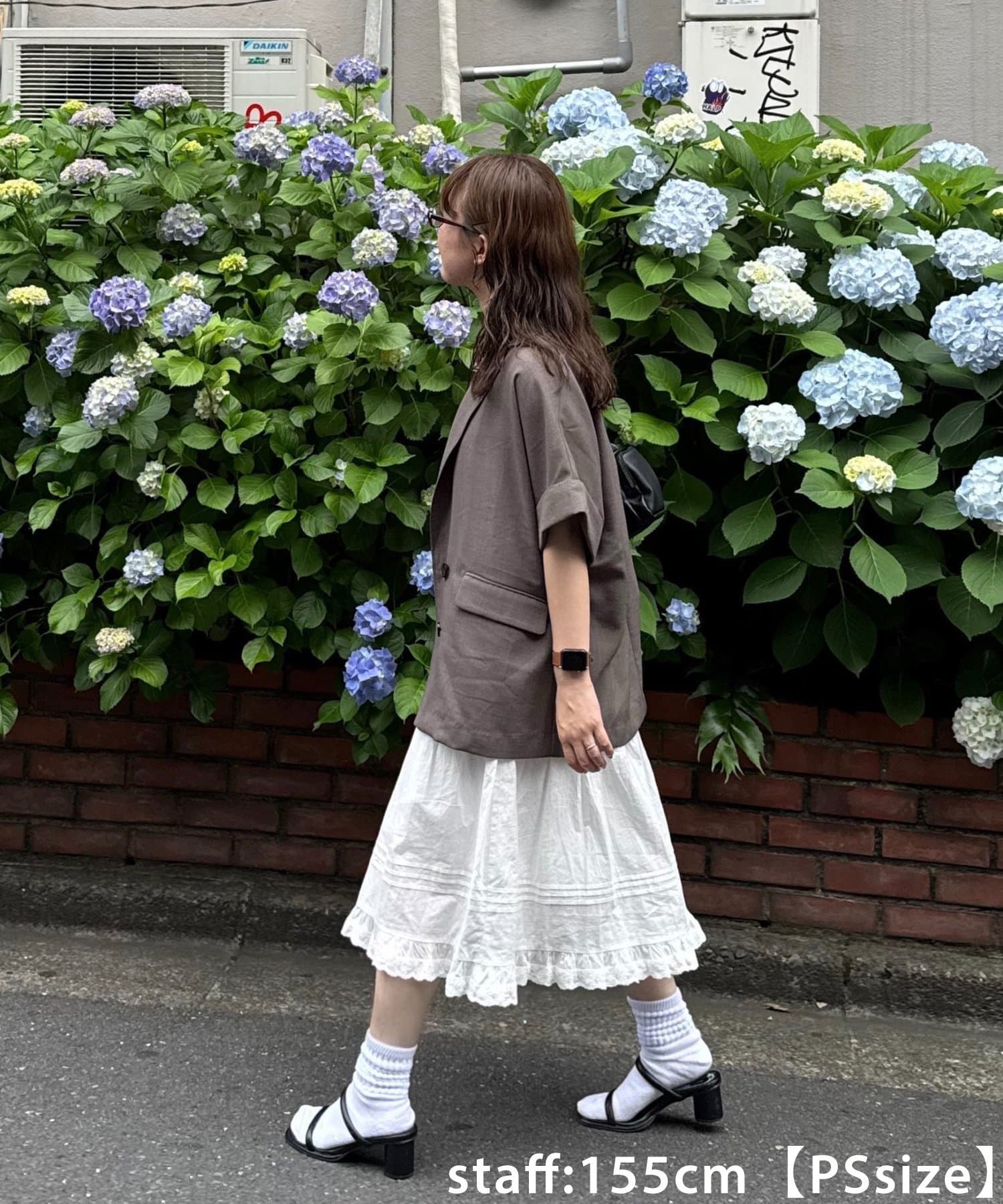 155cmスタッフ:PSサイズは、靴下を合わせるスタイリングも◎ちょうどよく見えてコーディネートのポイントになります!