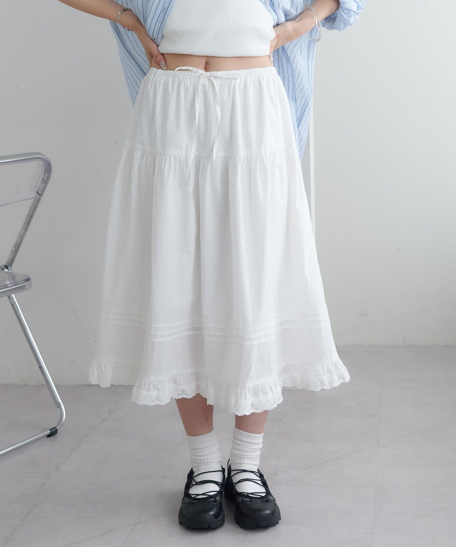 繊細なレースとピンタックデザインが目を惹くフェミニンなフレアスカート。
