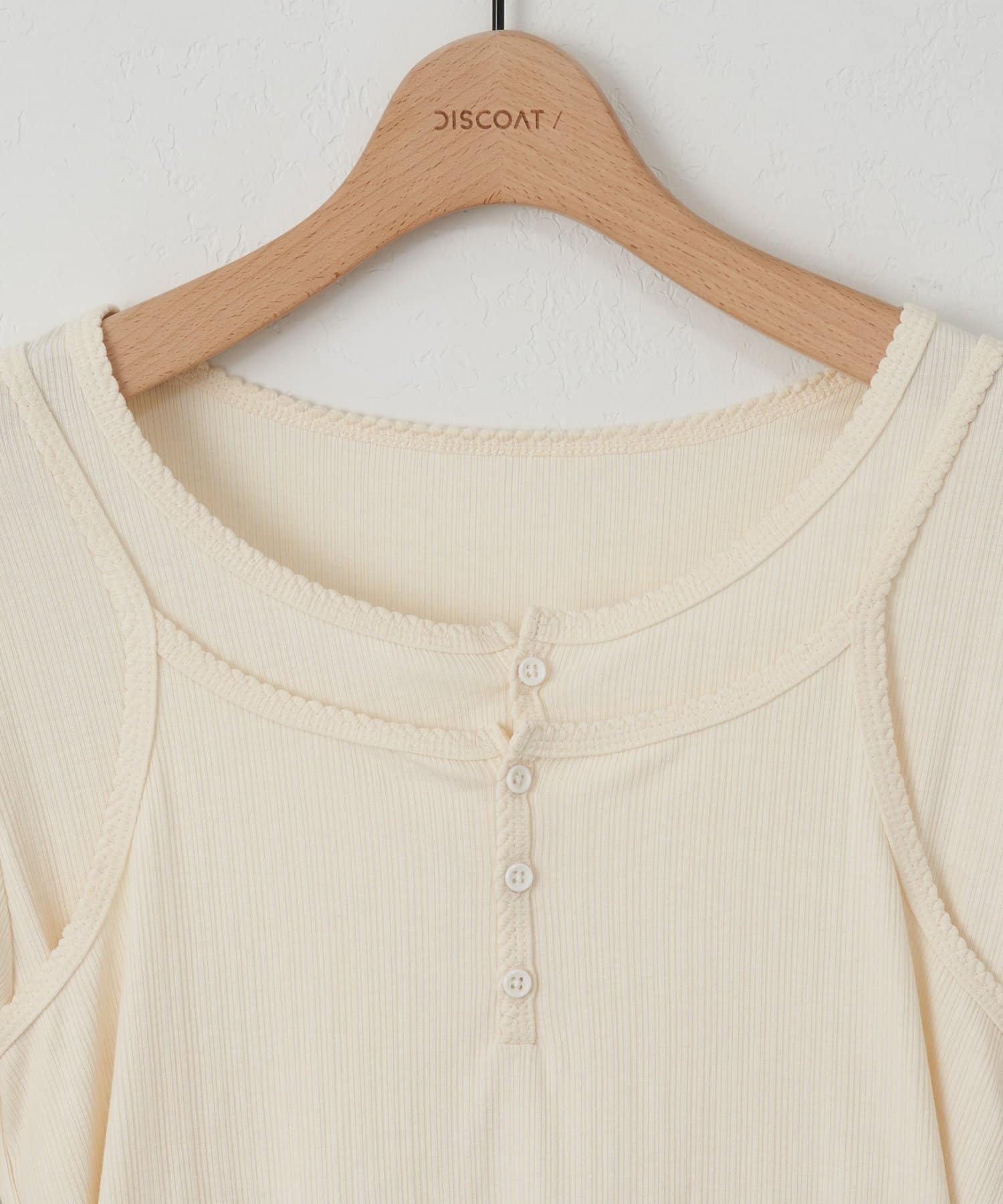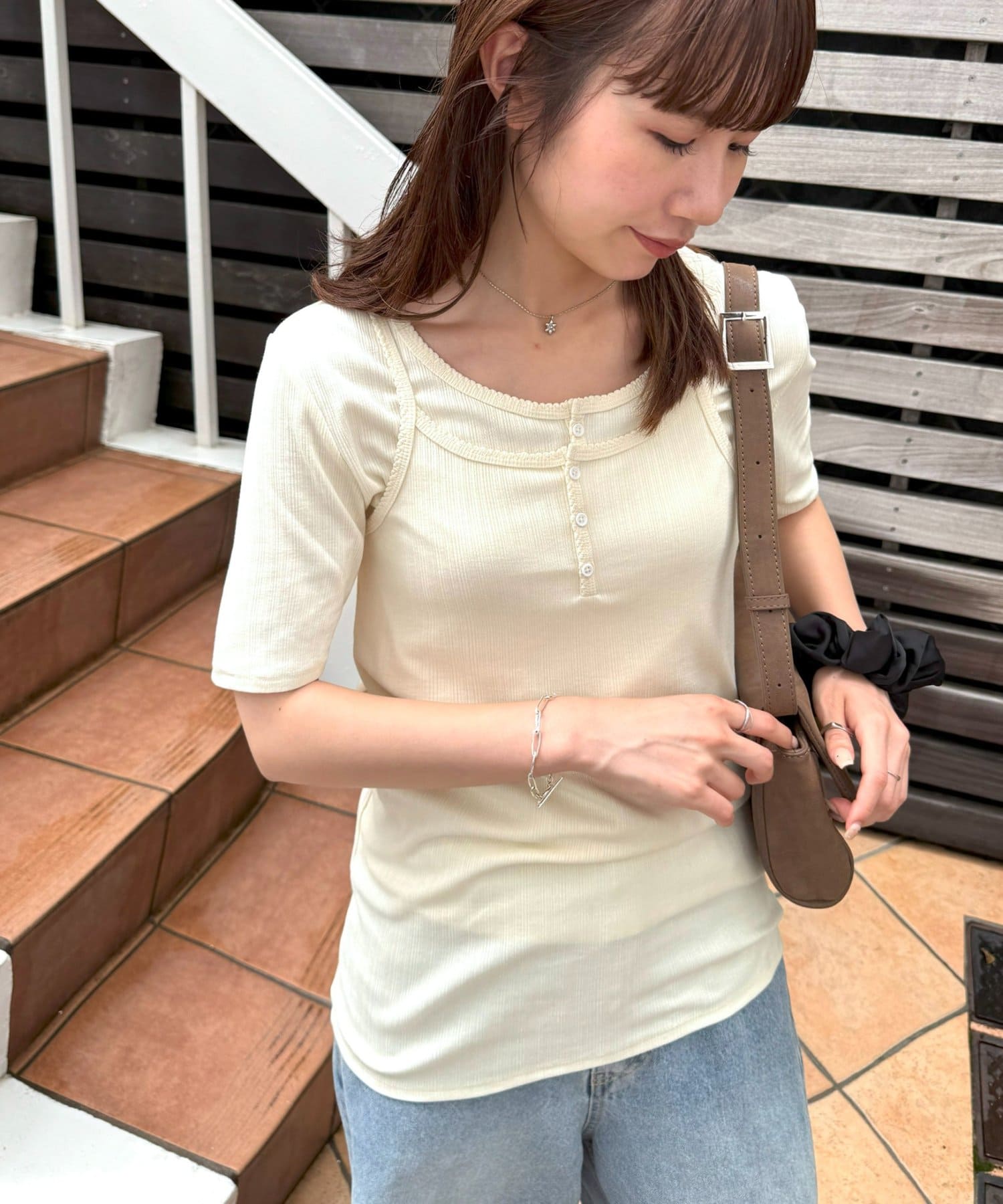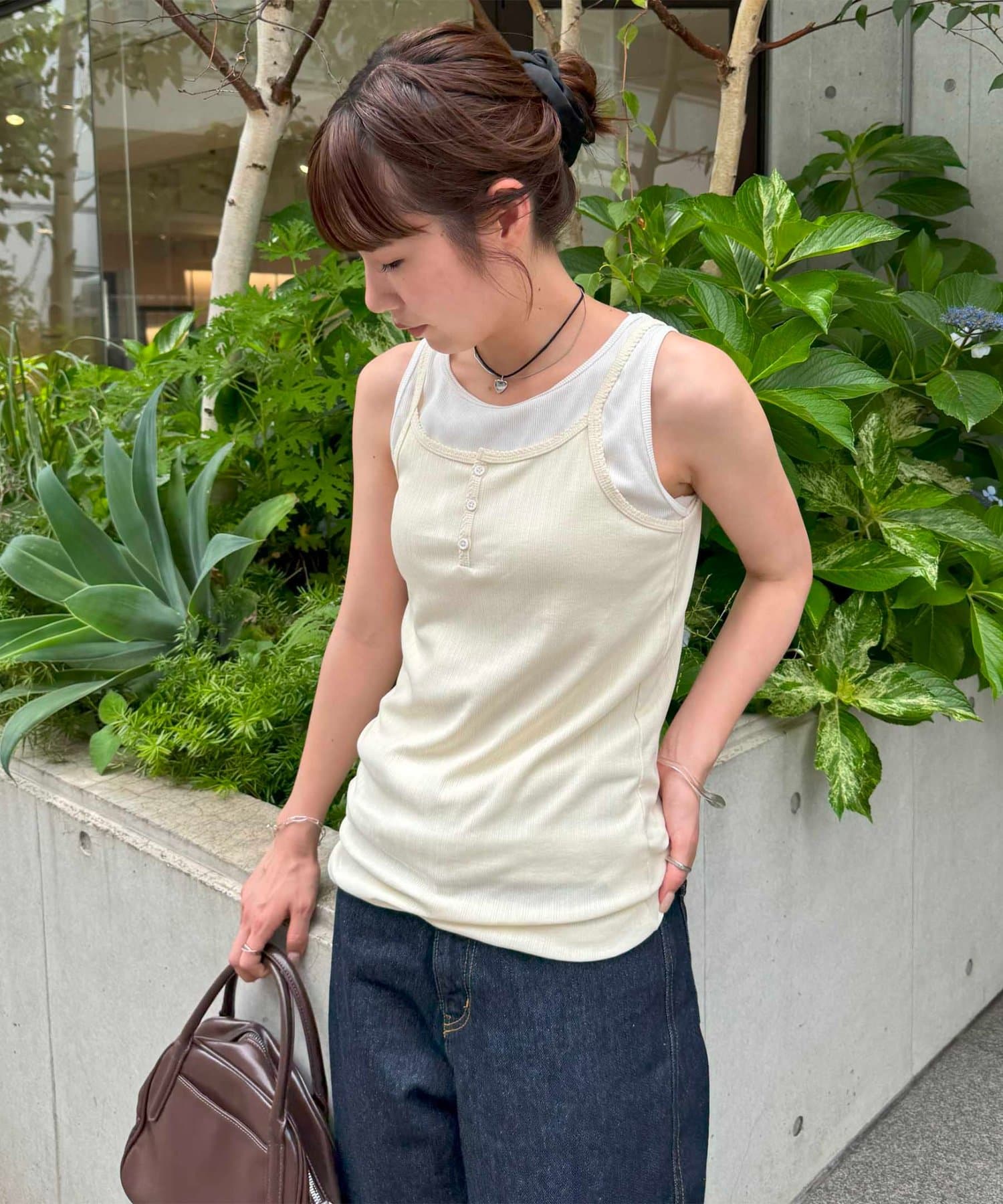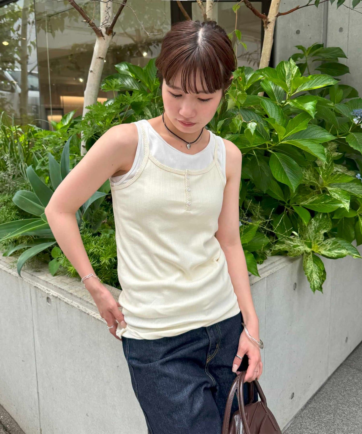 キャミソール・トップスともにトレンドのヘンリーネックデザイン。