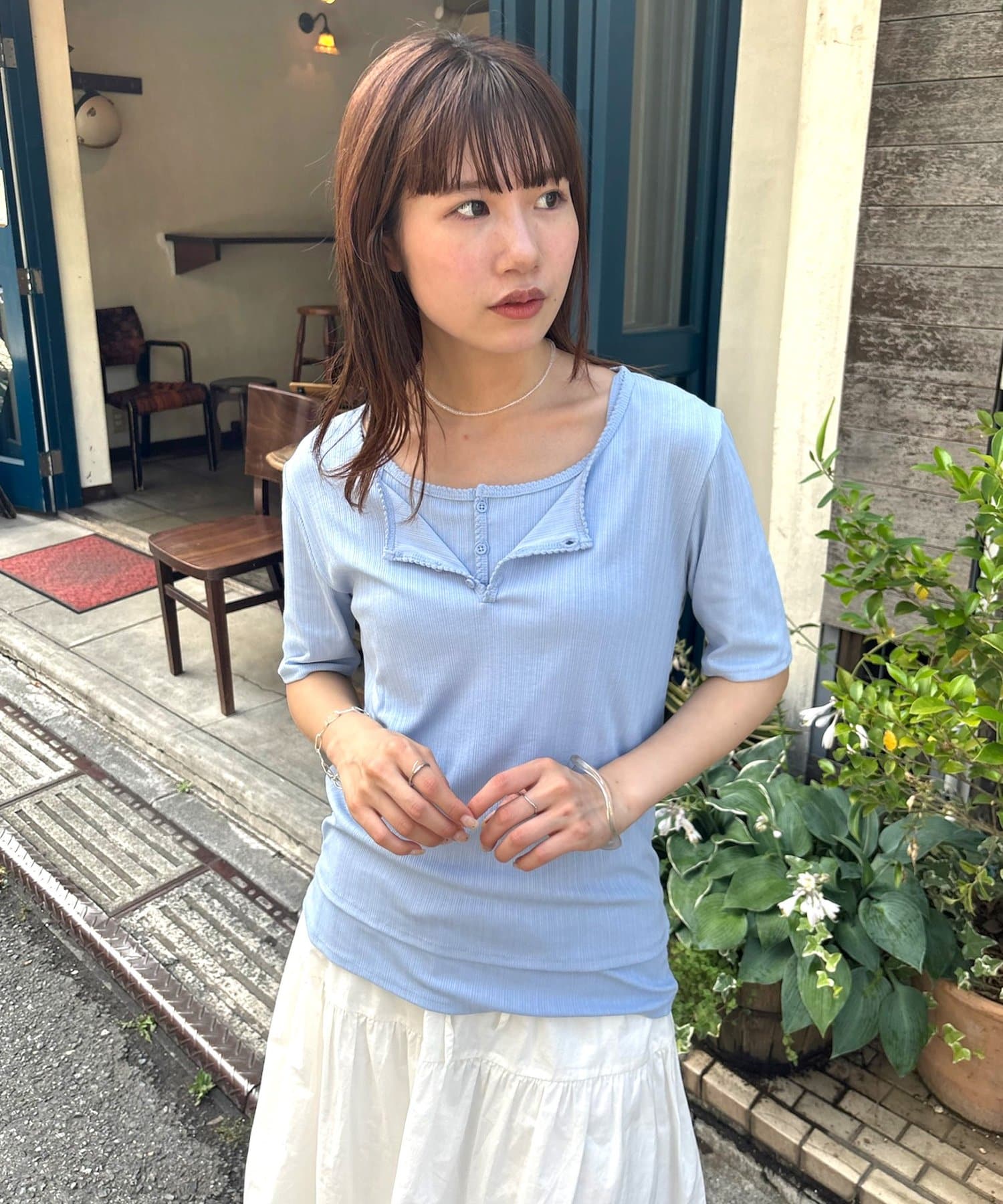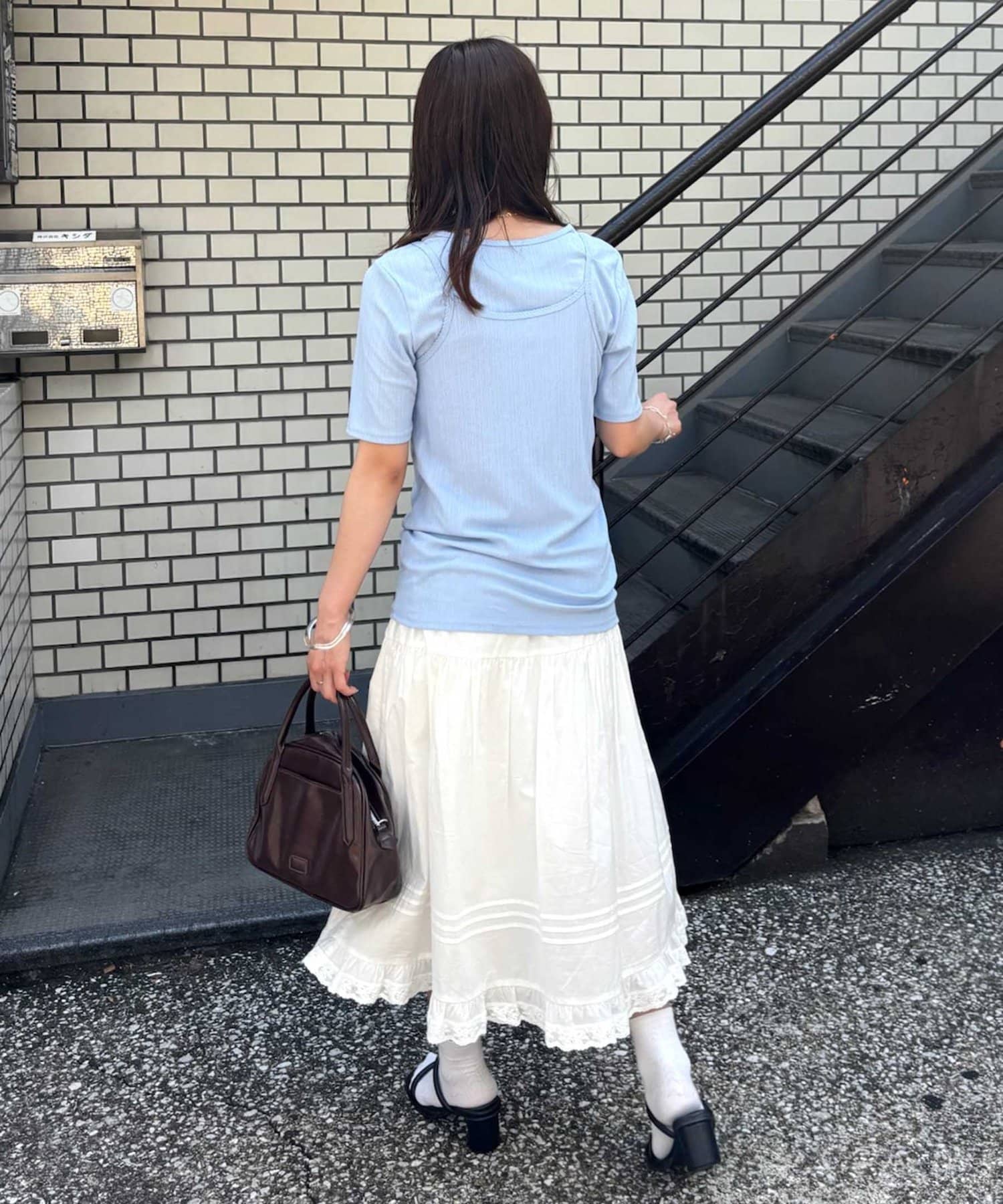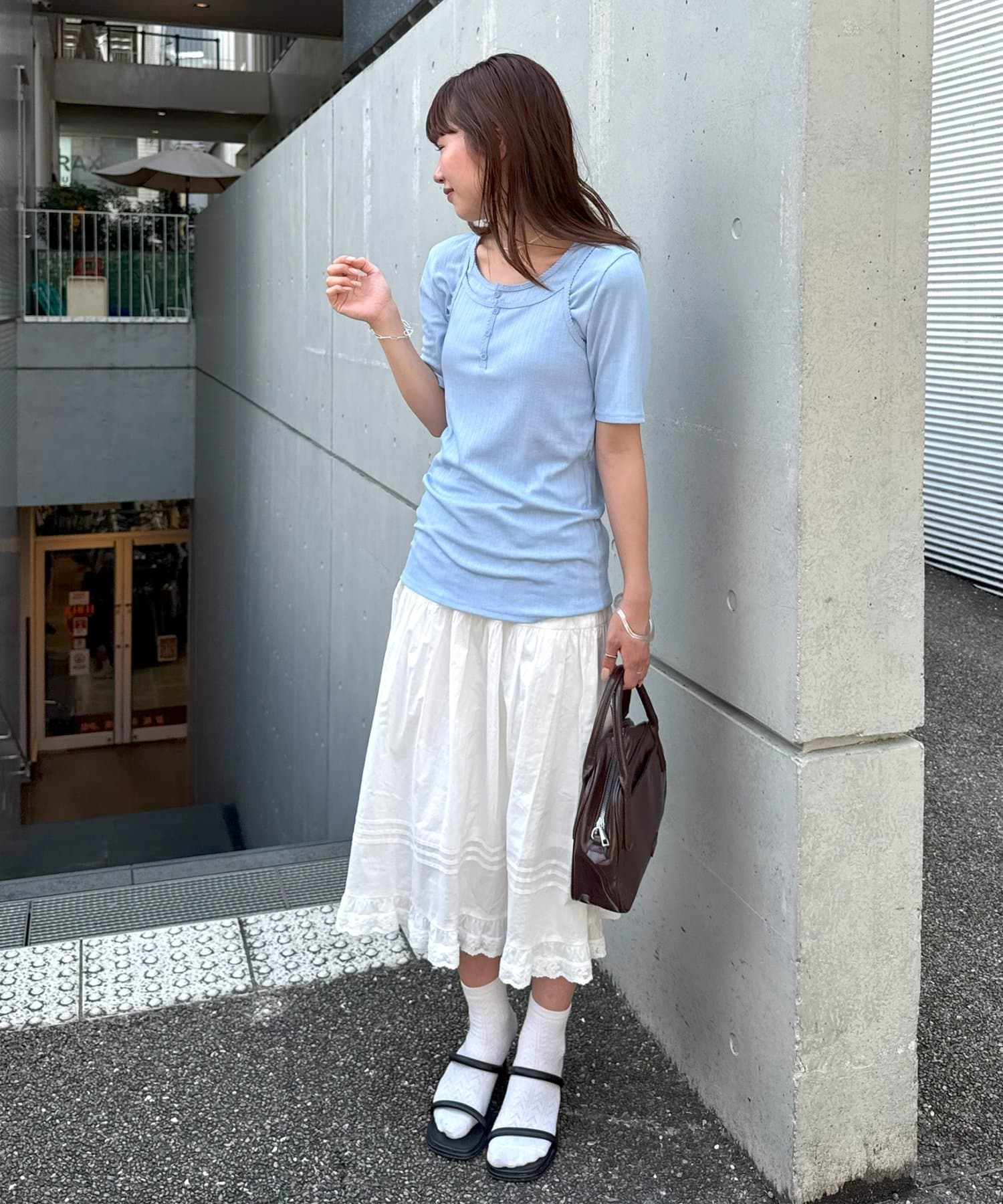 150cmスタッフ:簡単にお洒落見えするのが嬉しい!ピコレースもさりげないポイントになっています◎