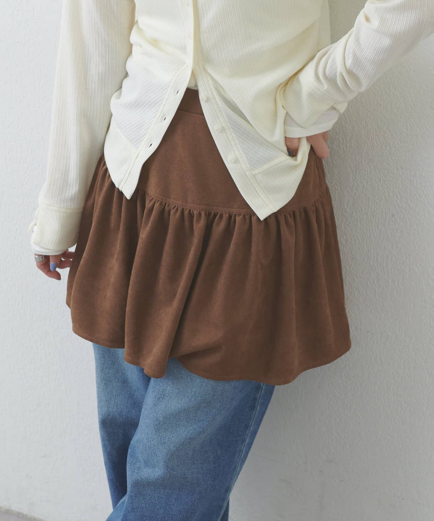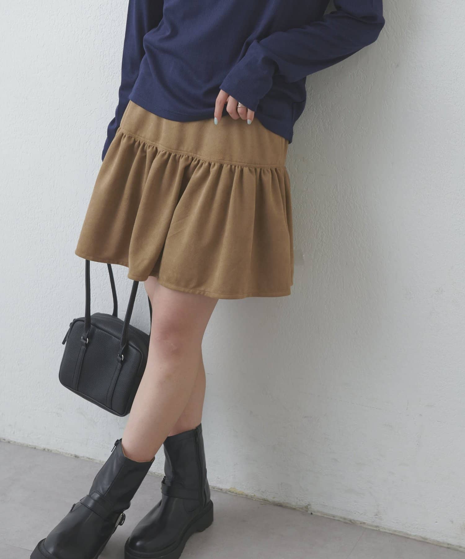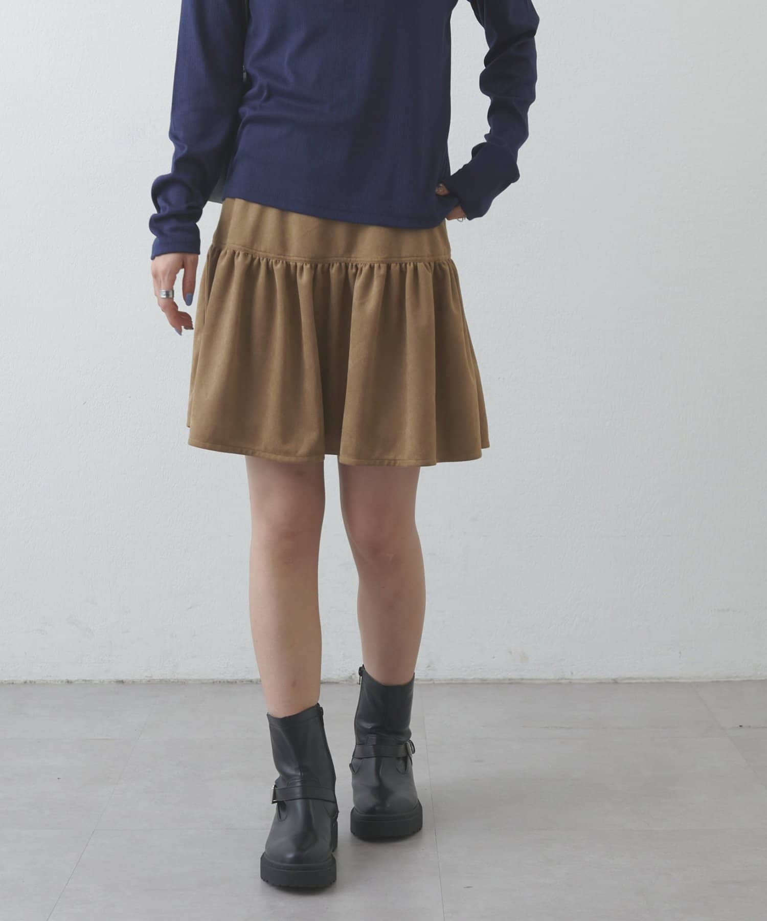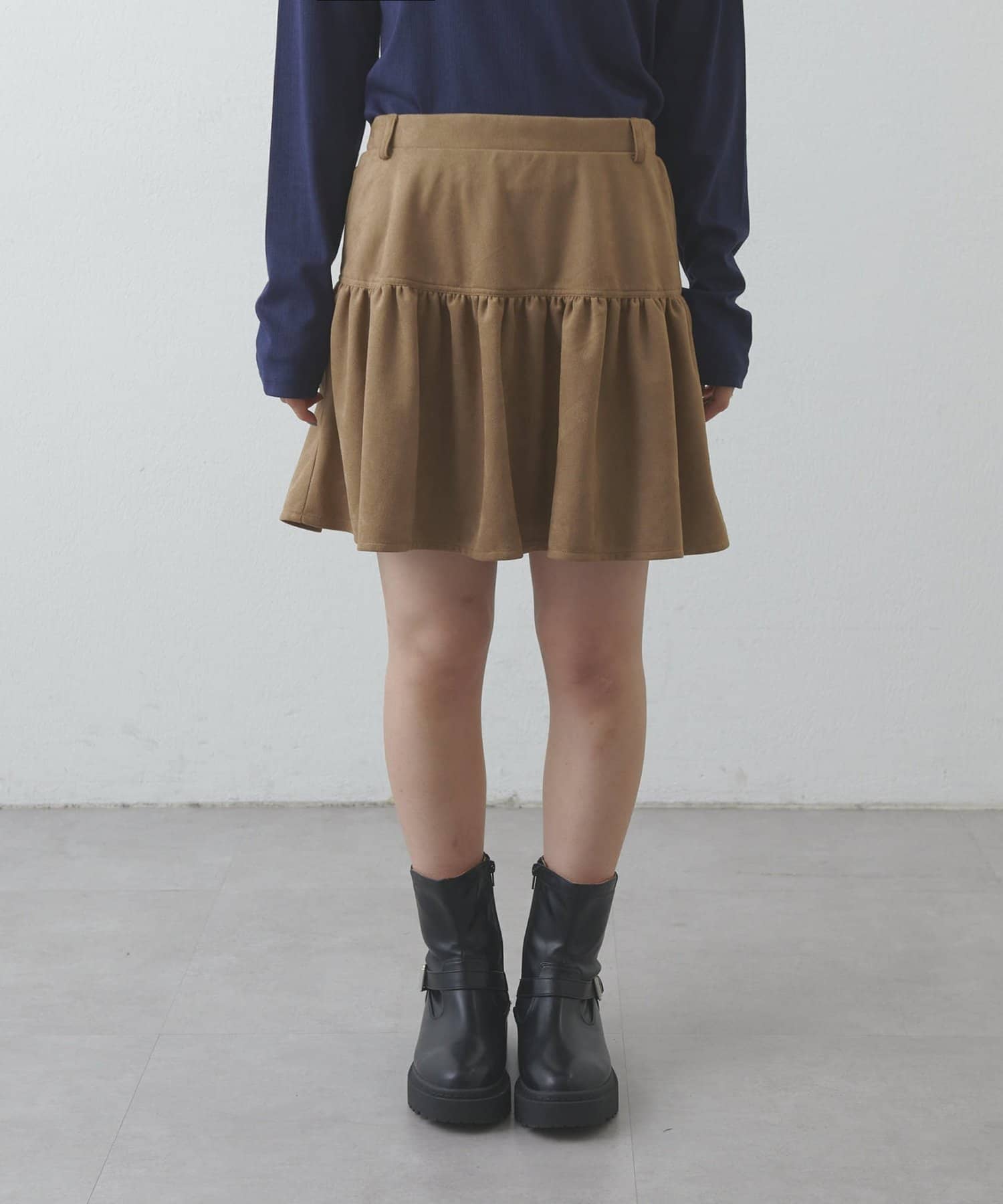 【umm.】フェイクスエードティアードミニスカート