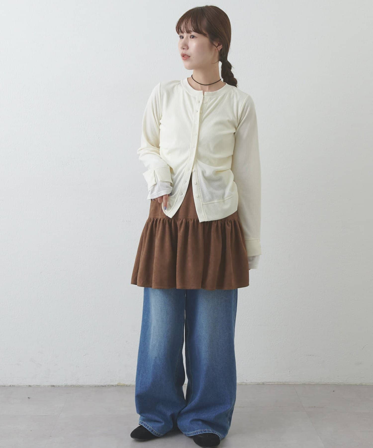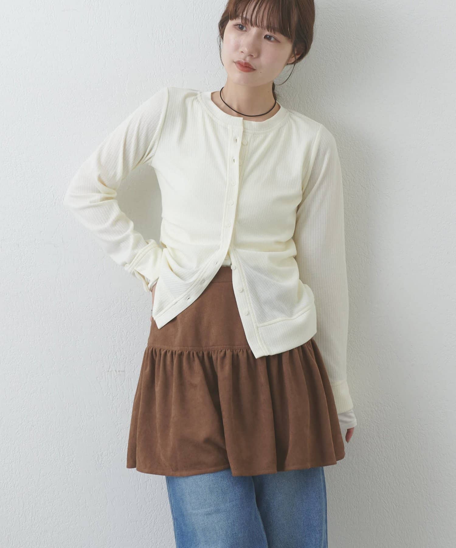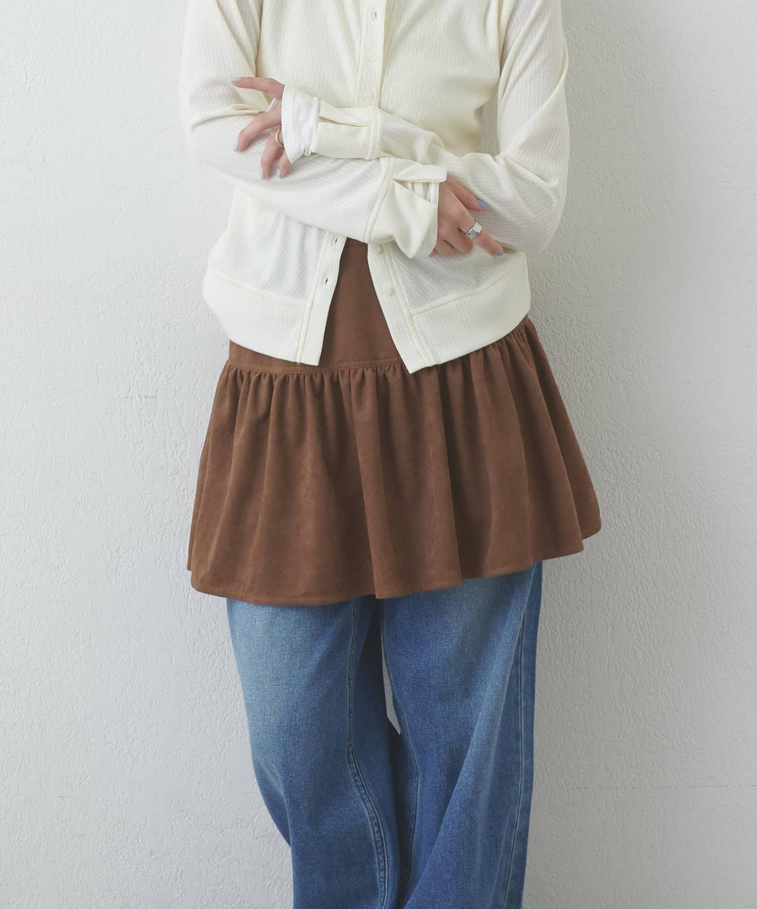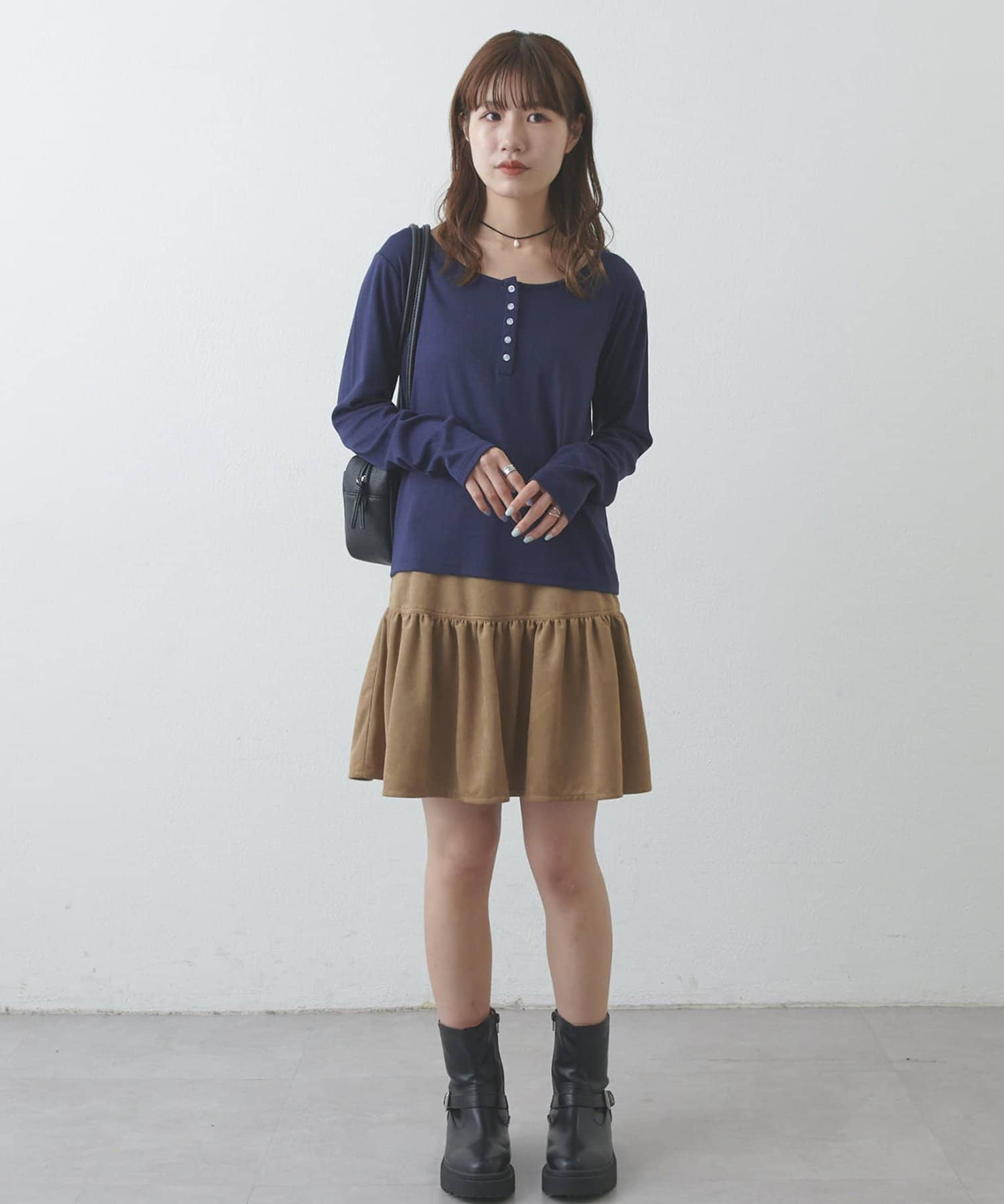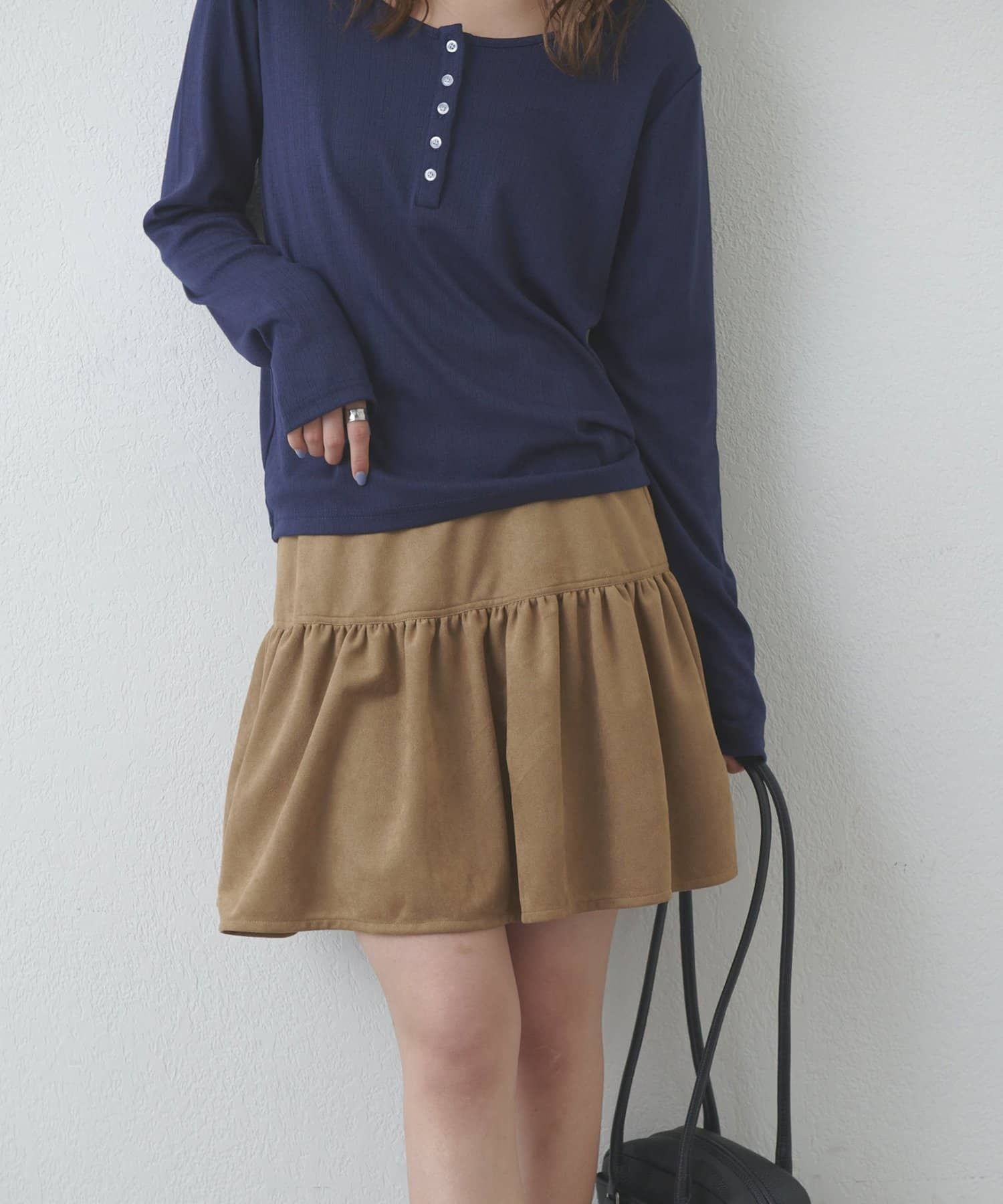 【umm.】フェイクスエードティアードミニスカート