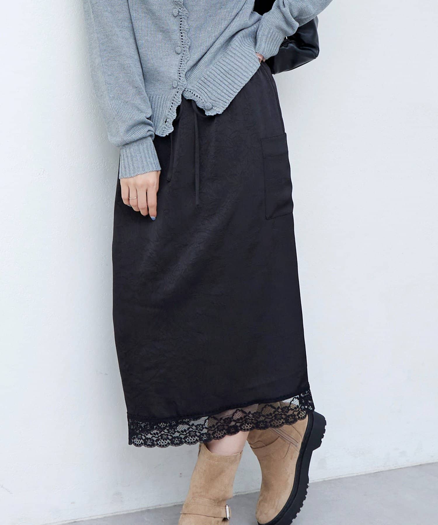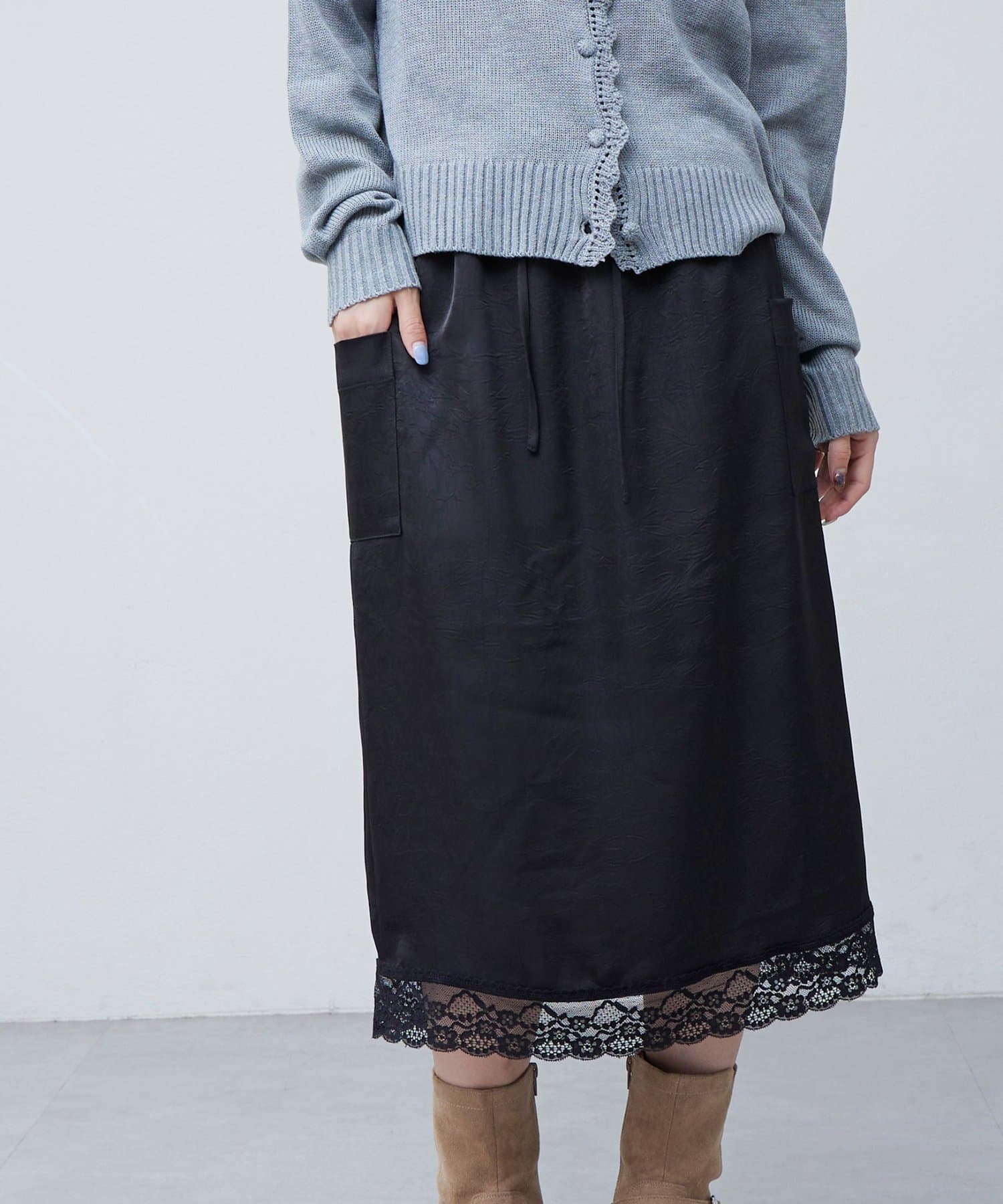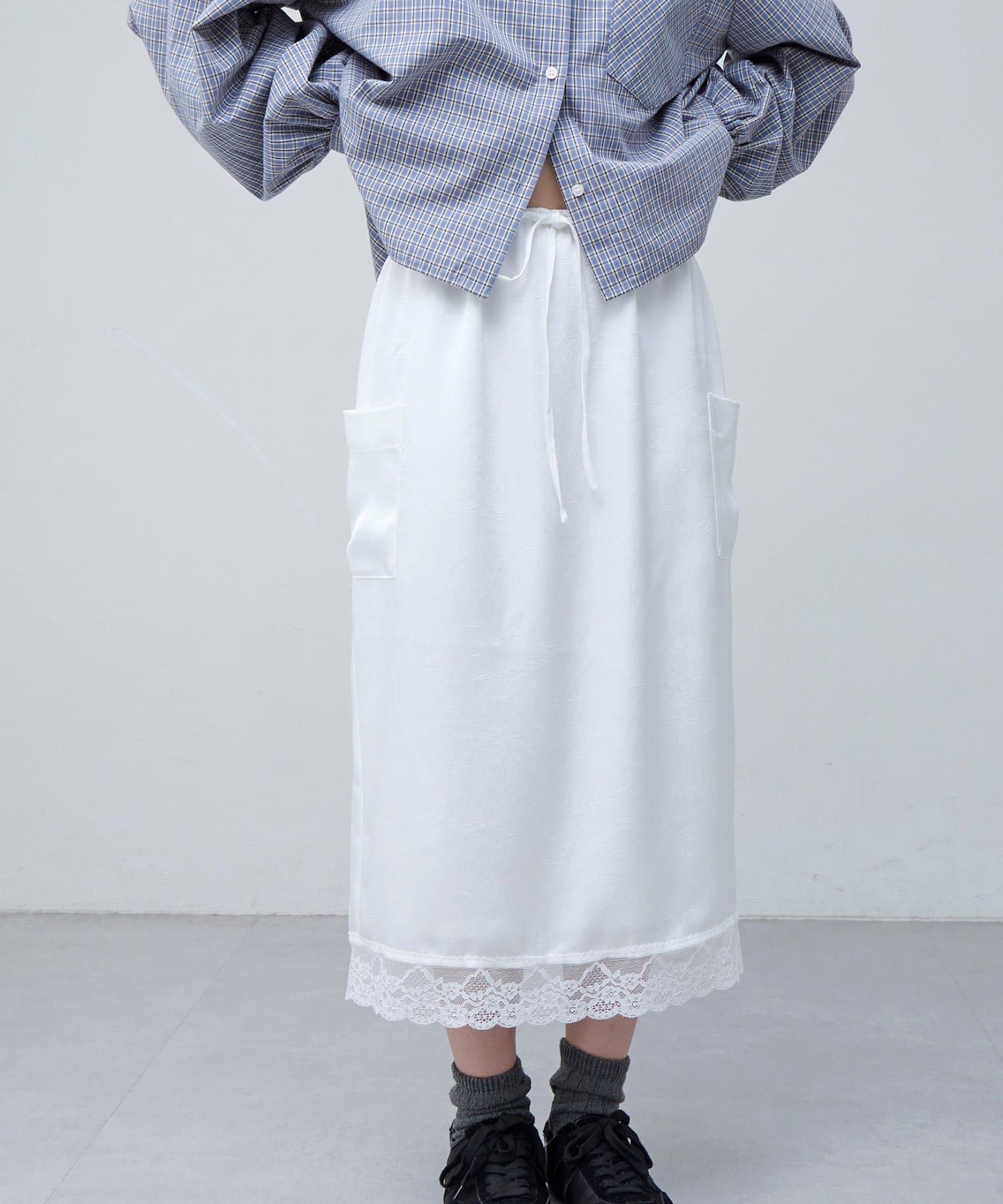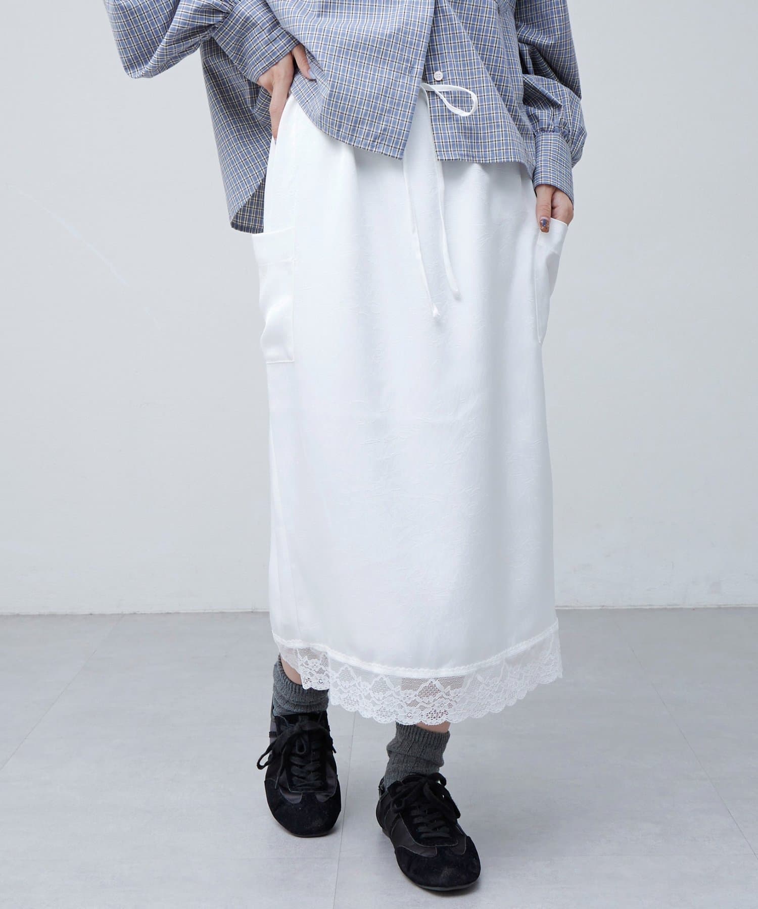 【umm.】裾レースクラッシュサテンスカート