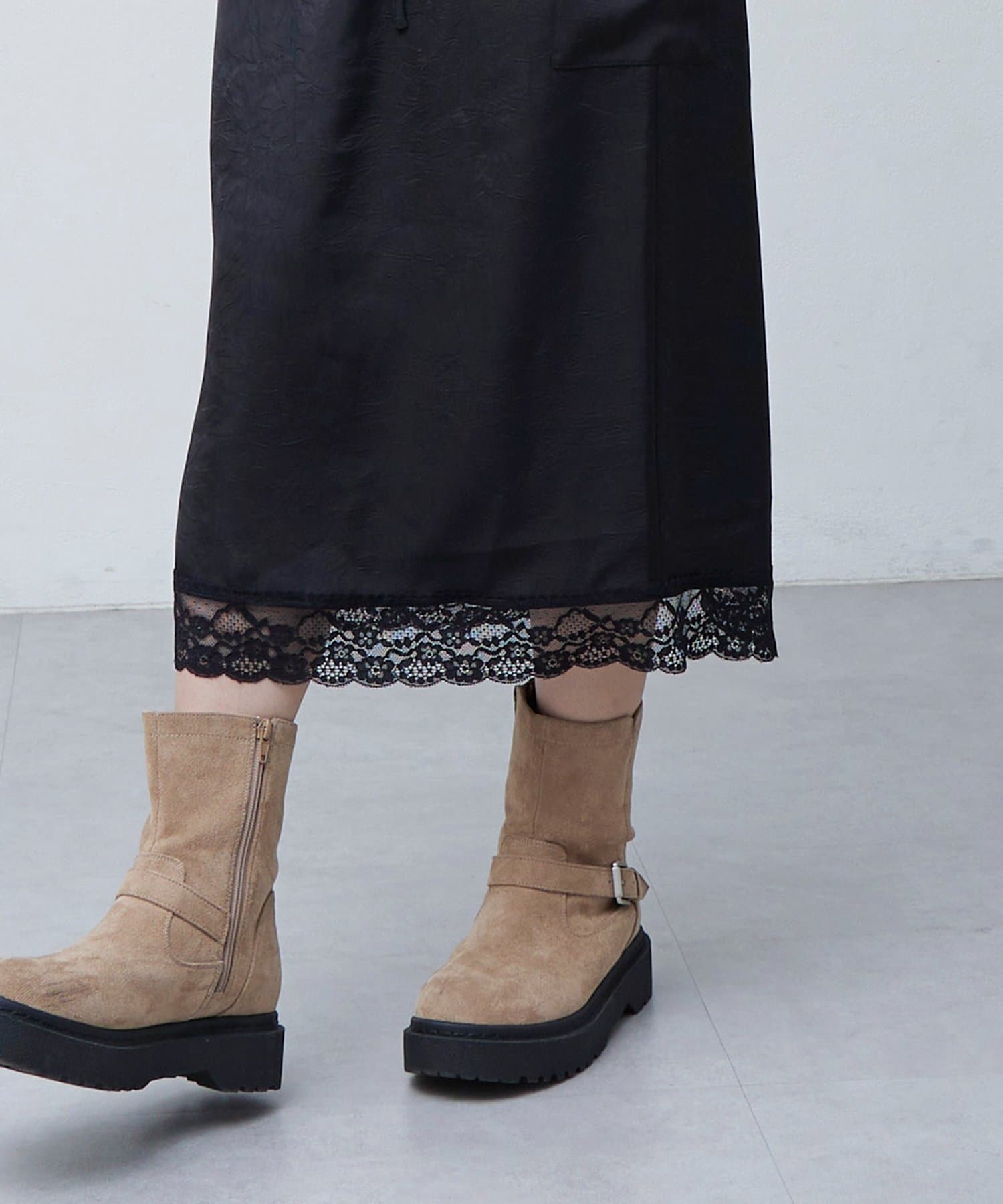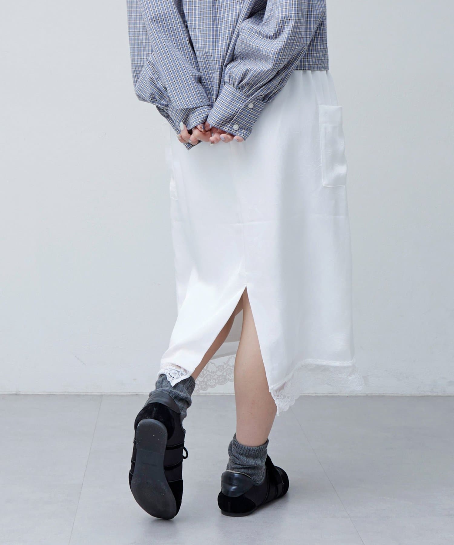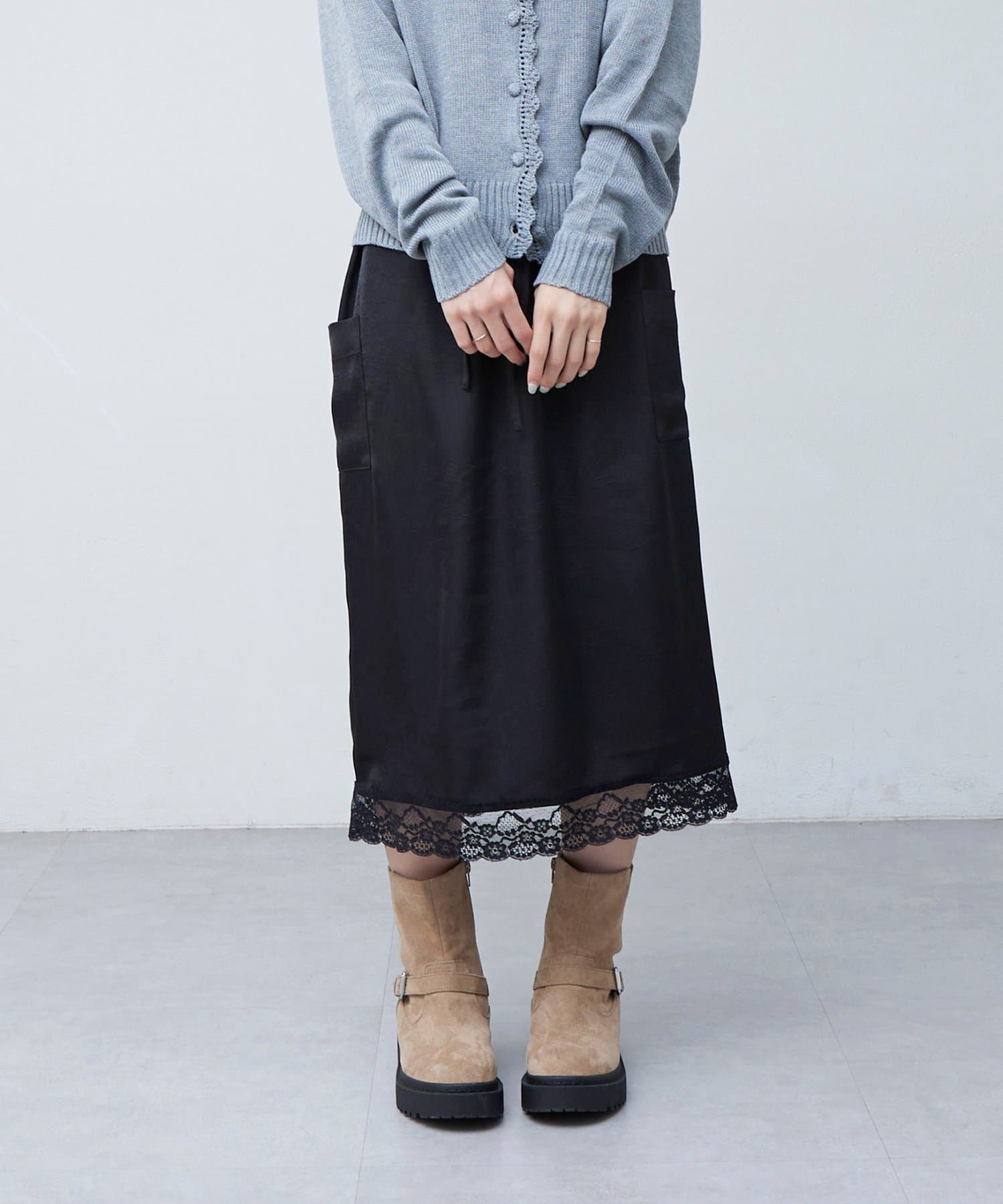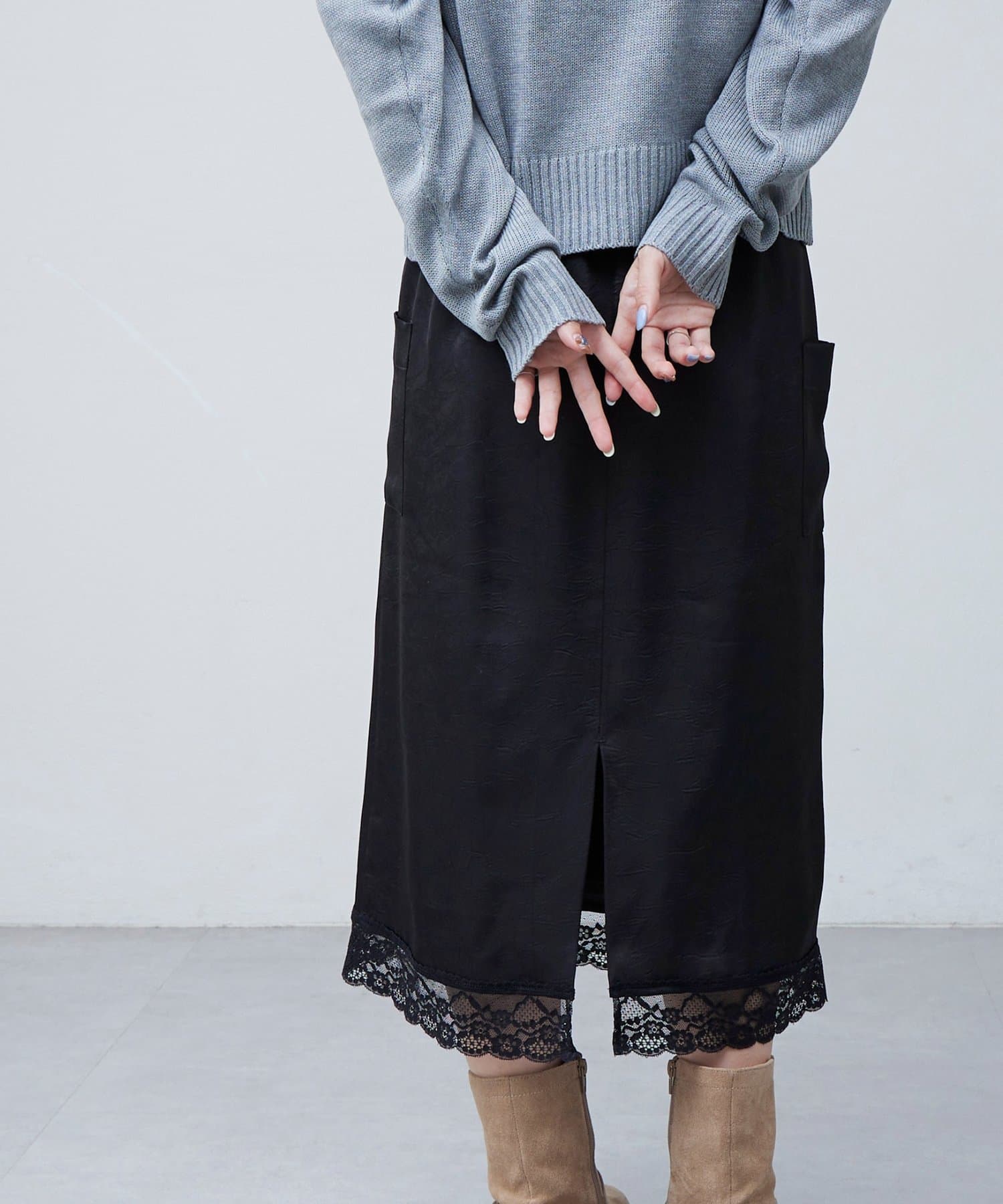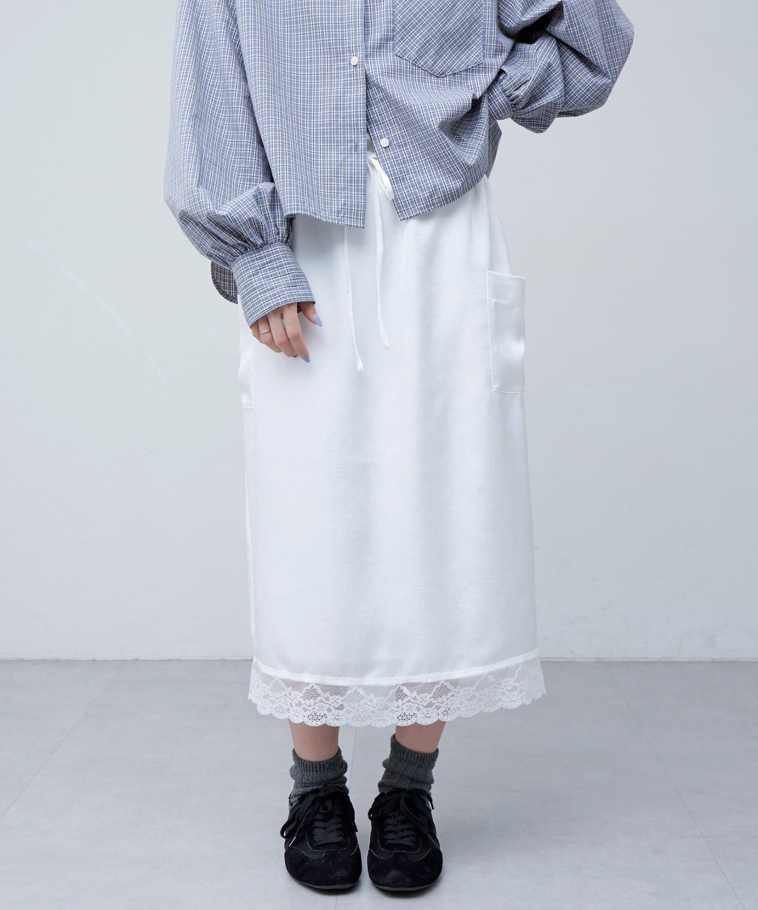 【umm.】裾レースクラッシュサテンスカート