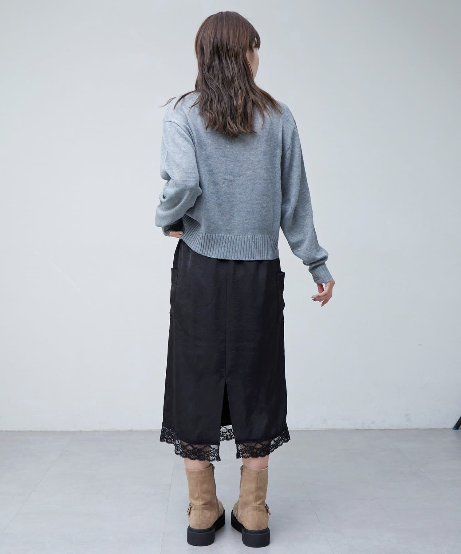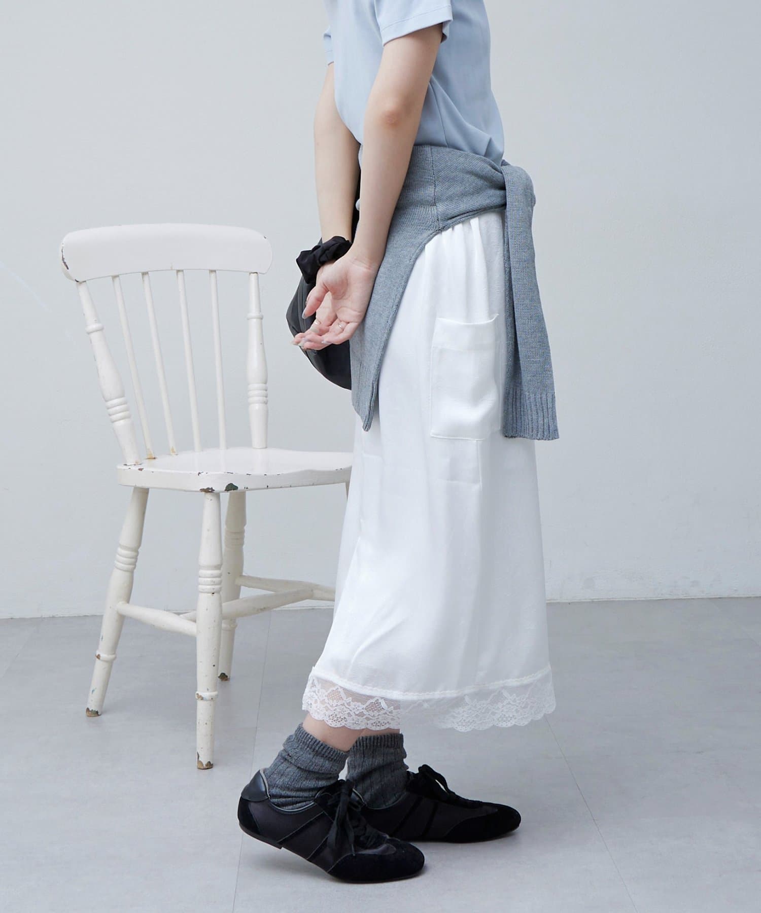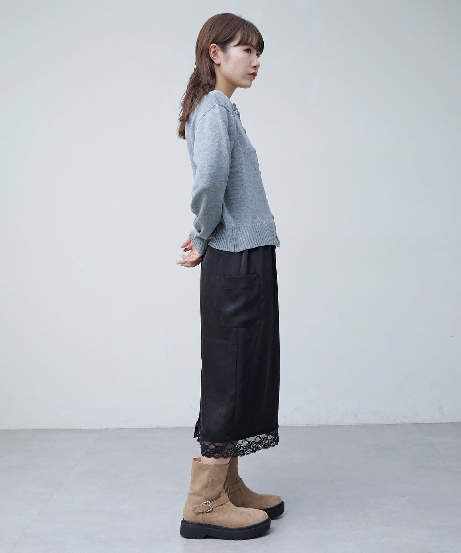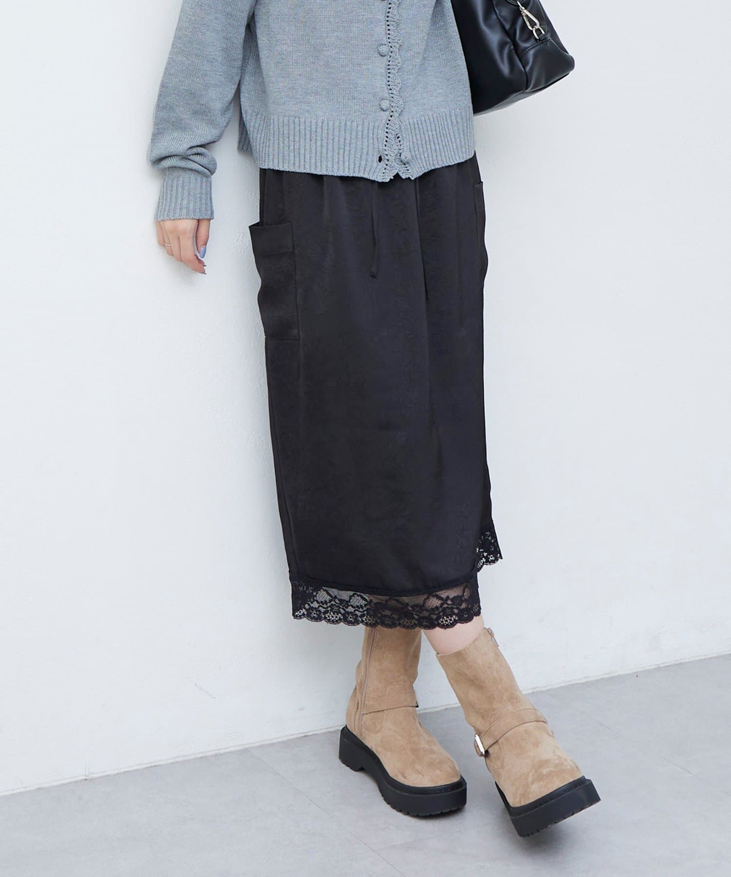 【umm.】裾レースクラッシュサテンスカート