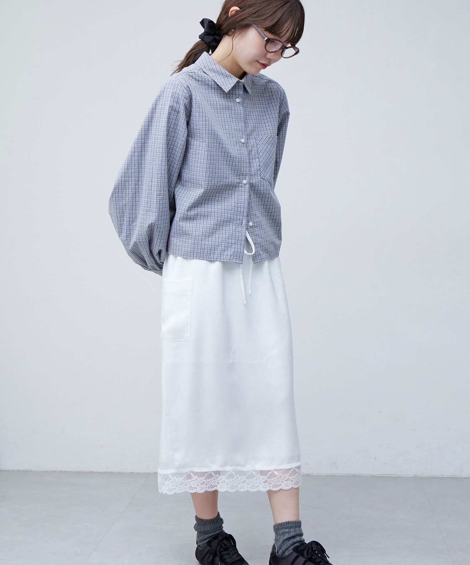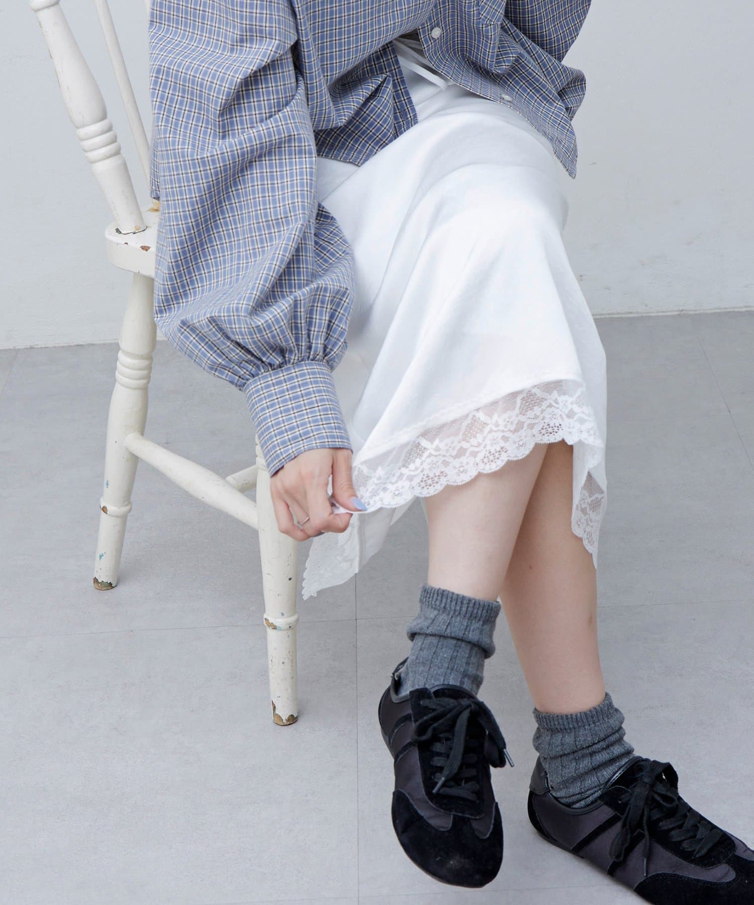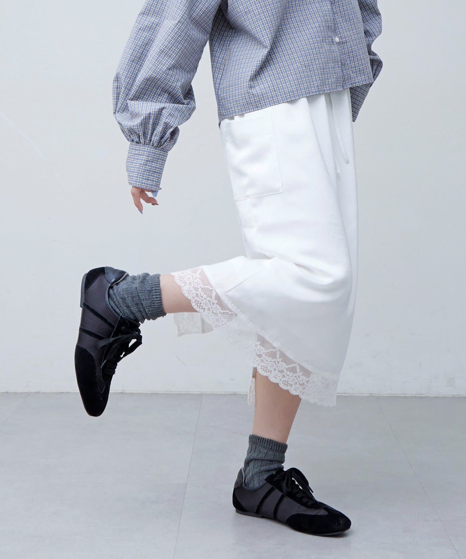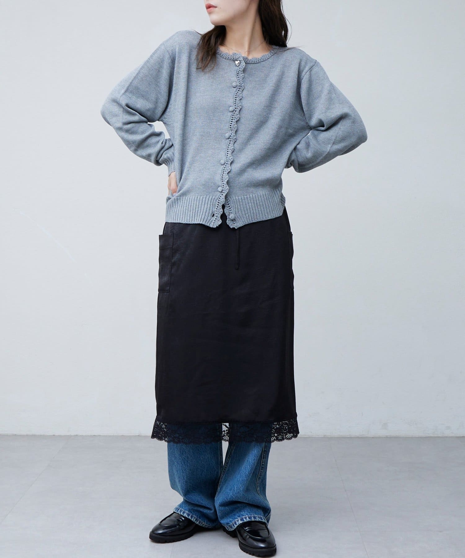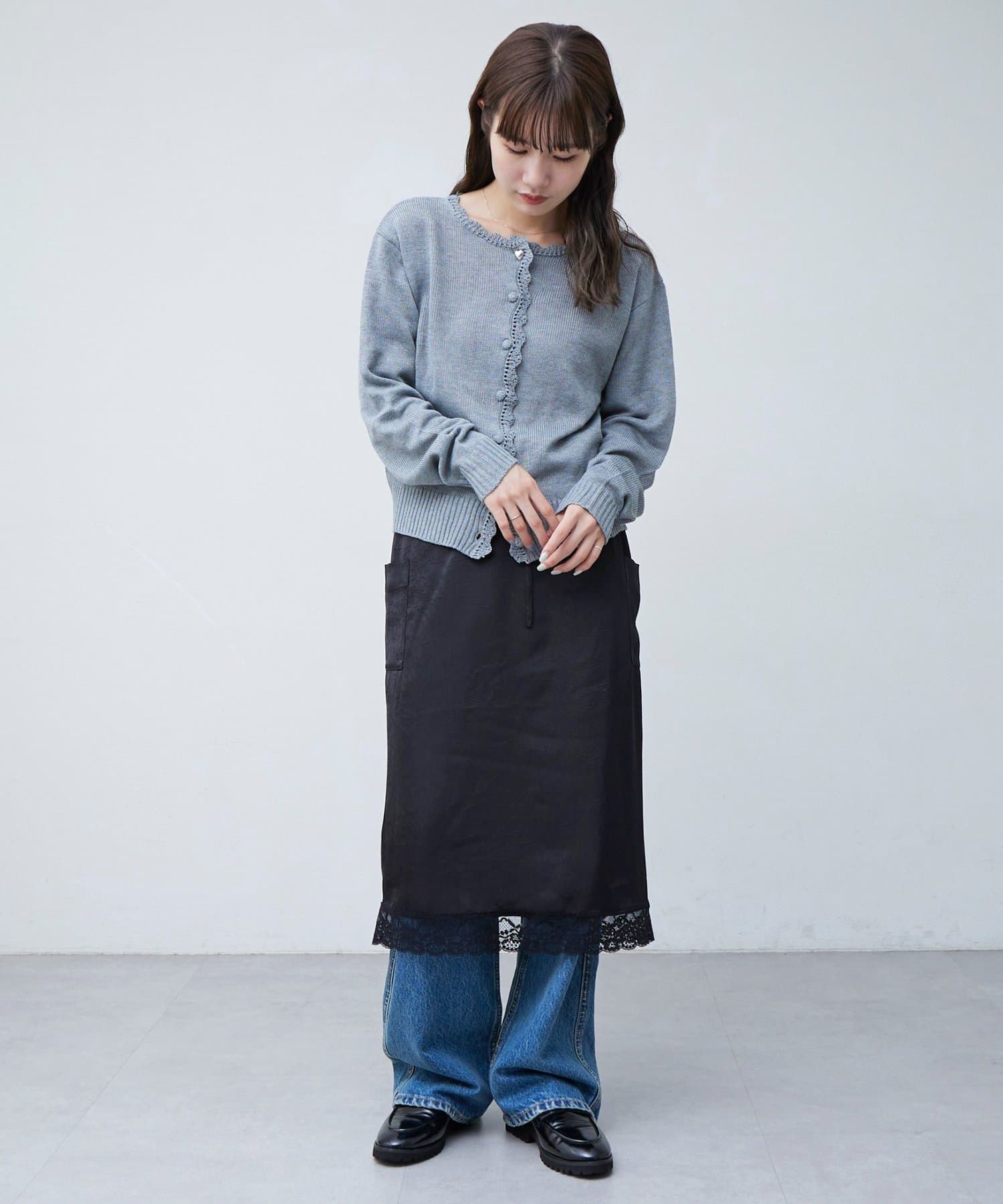 【umm.】裾レースクラッシュサテンスカート