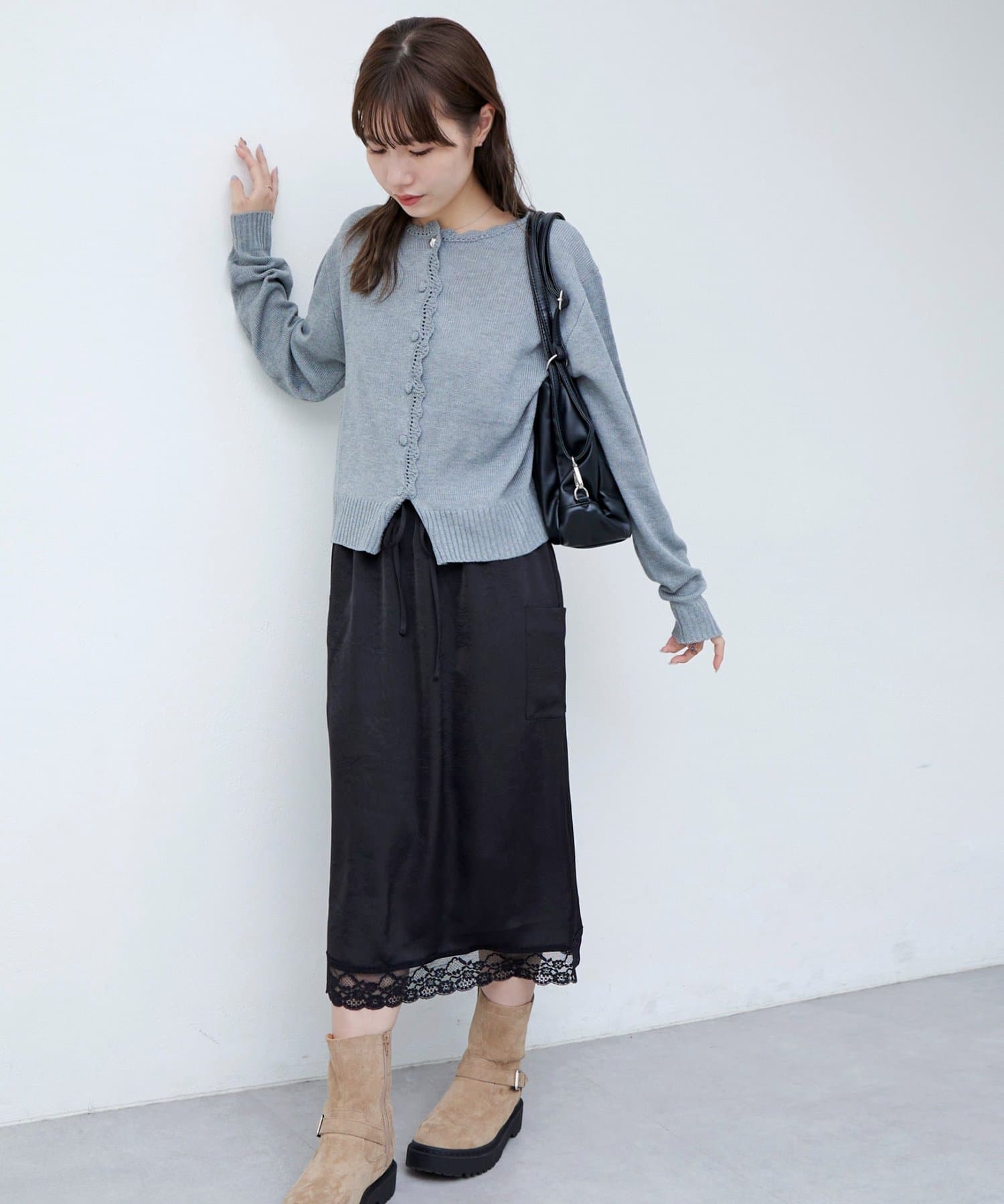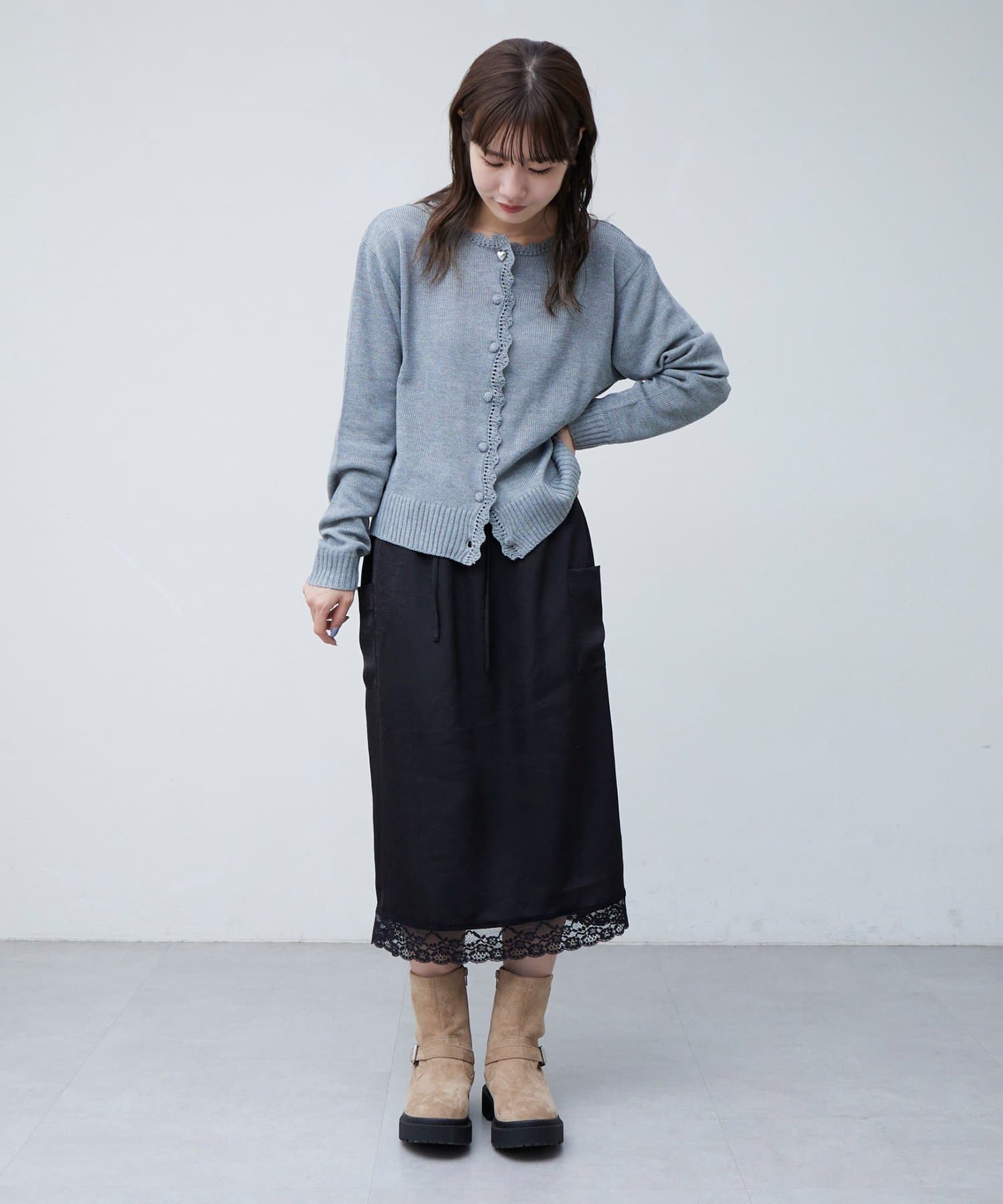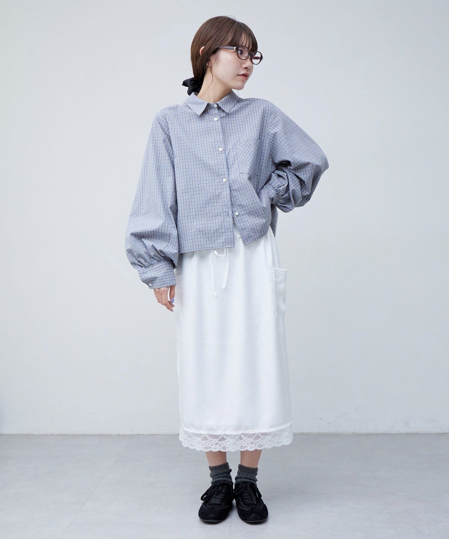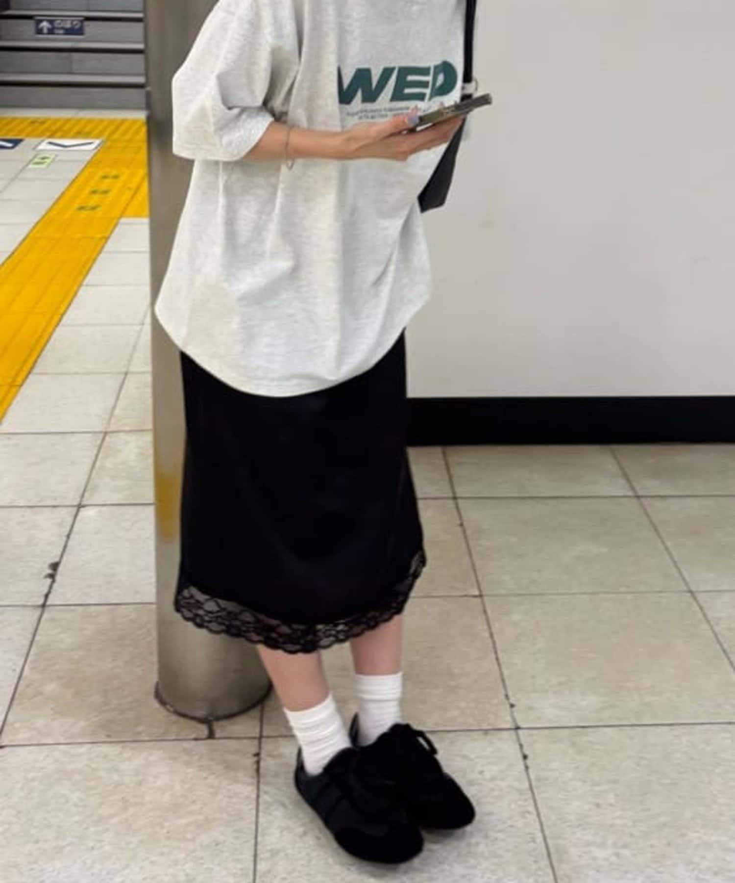 【umm.】裾レースクラッシュサテンスカート