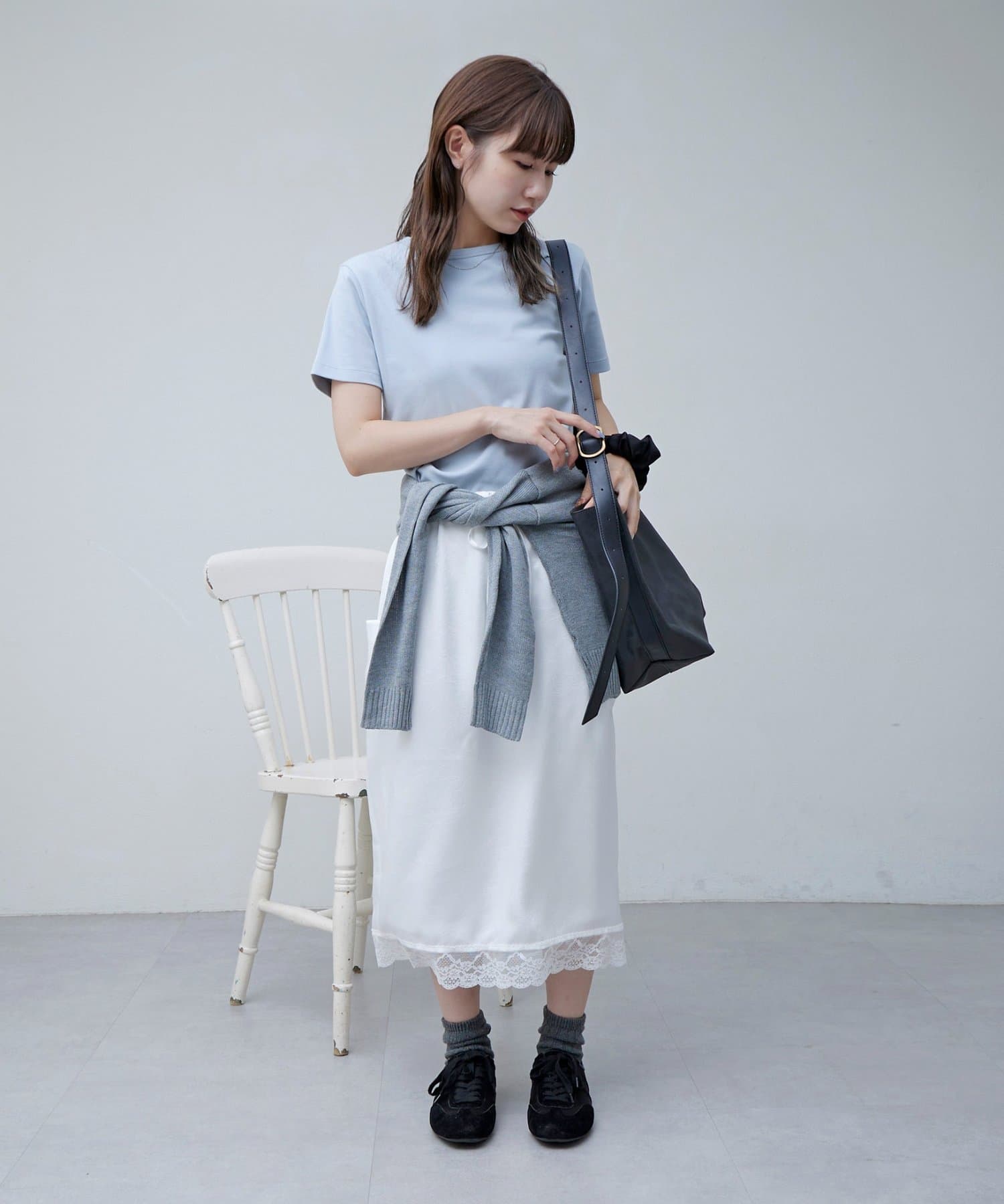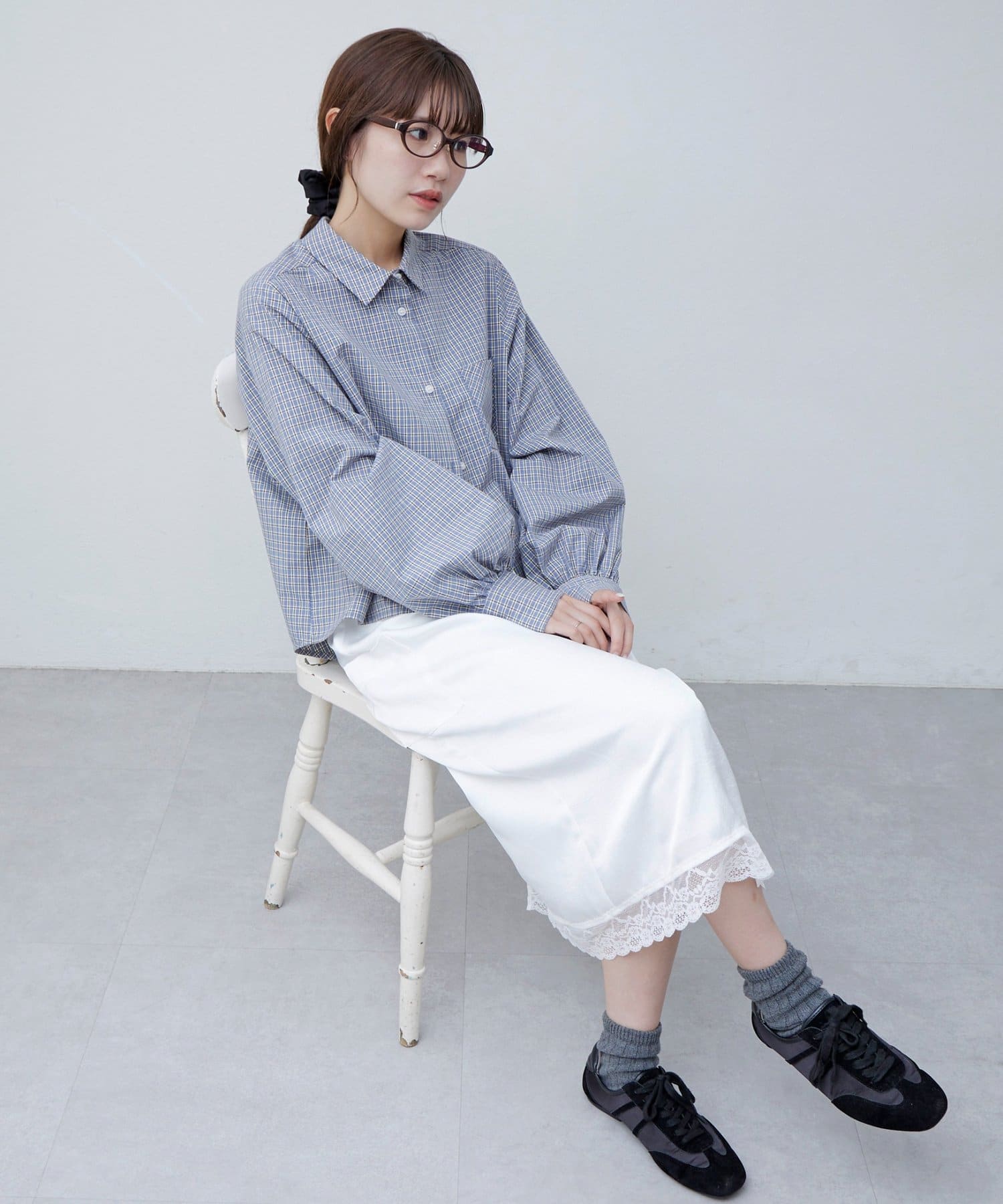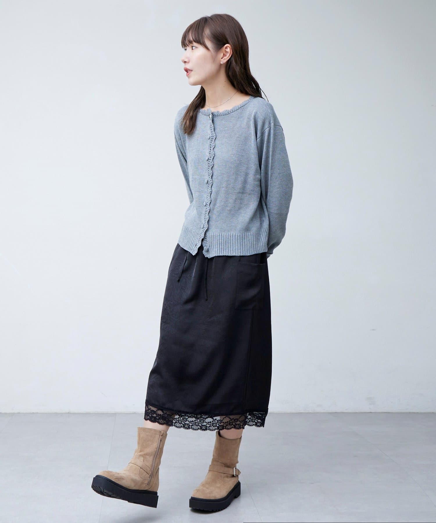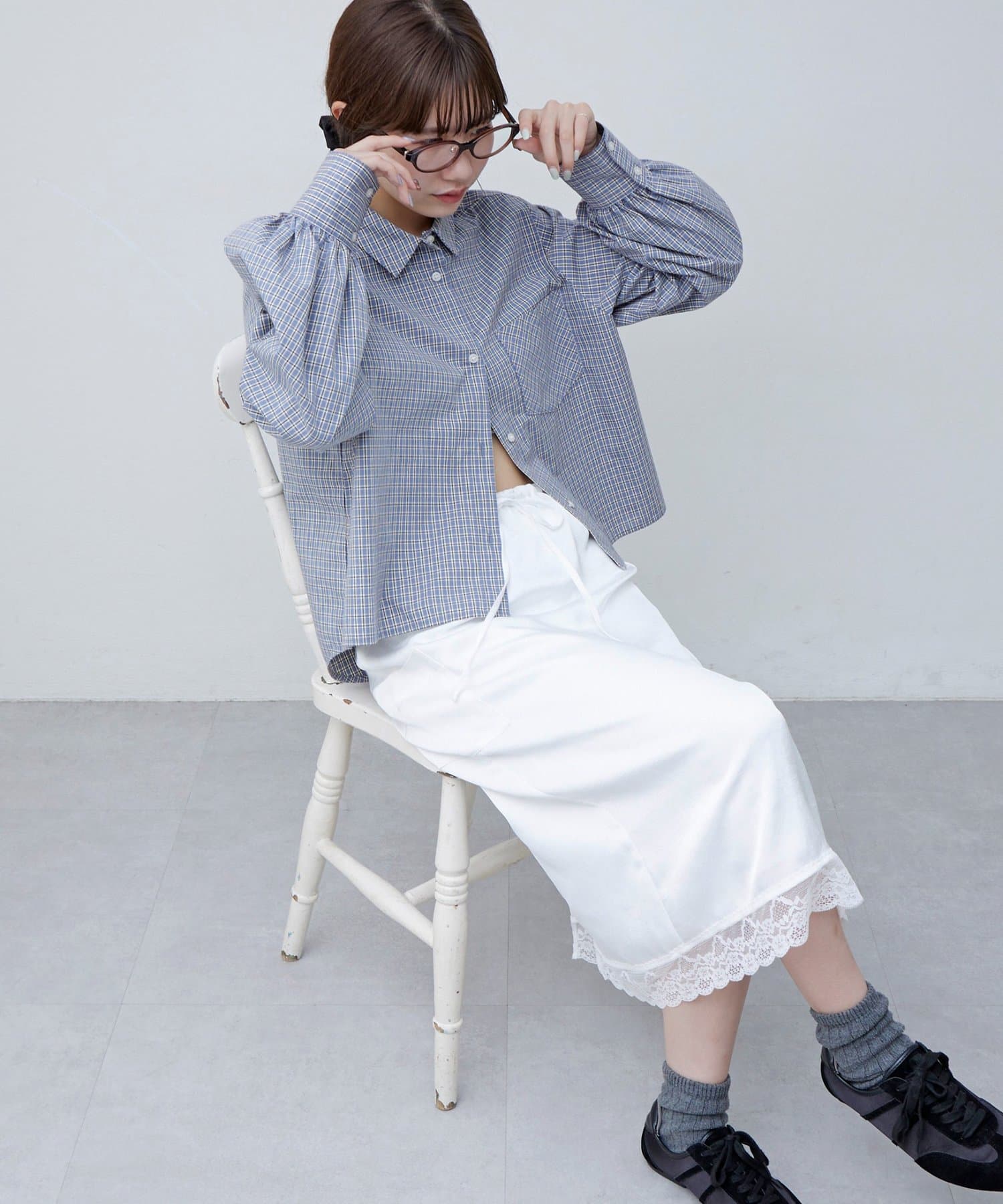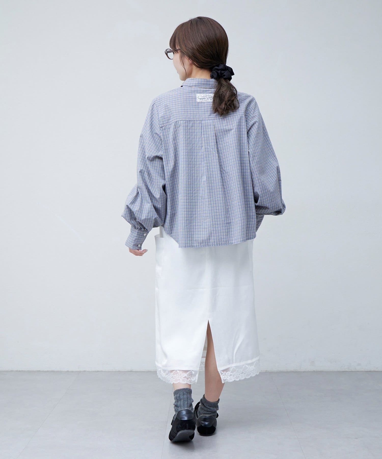 【umm.】裾レースクラッシュサテンスカート