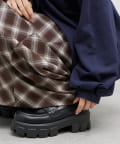 落ち着いた配色のチェック柄で、コーディネートに季節感をプラス。