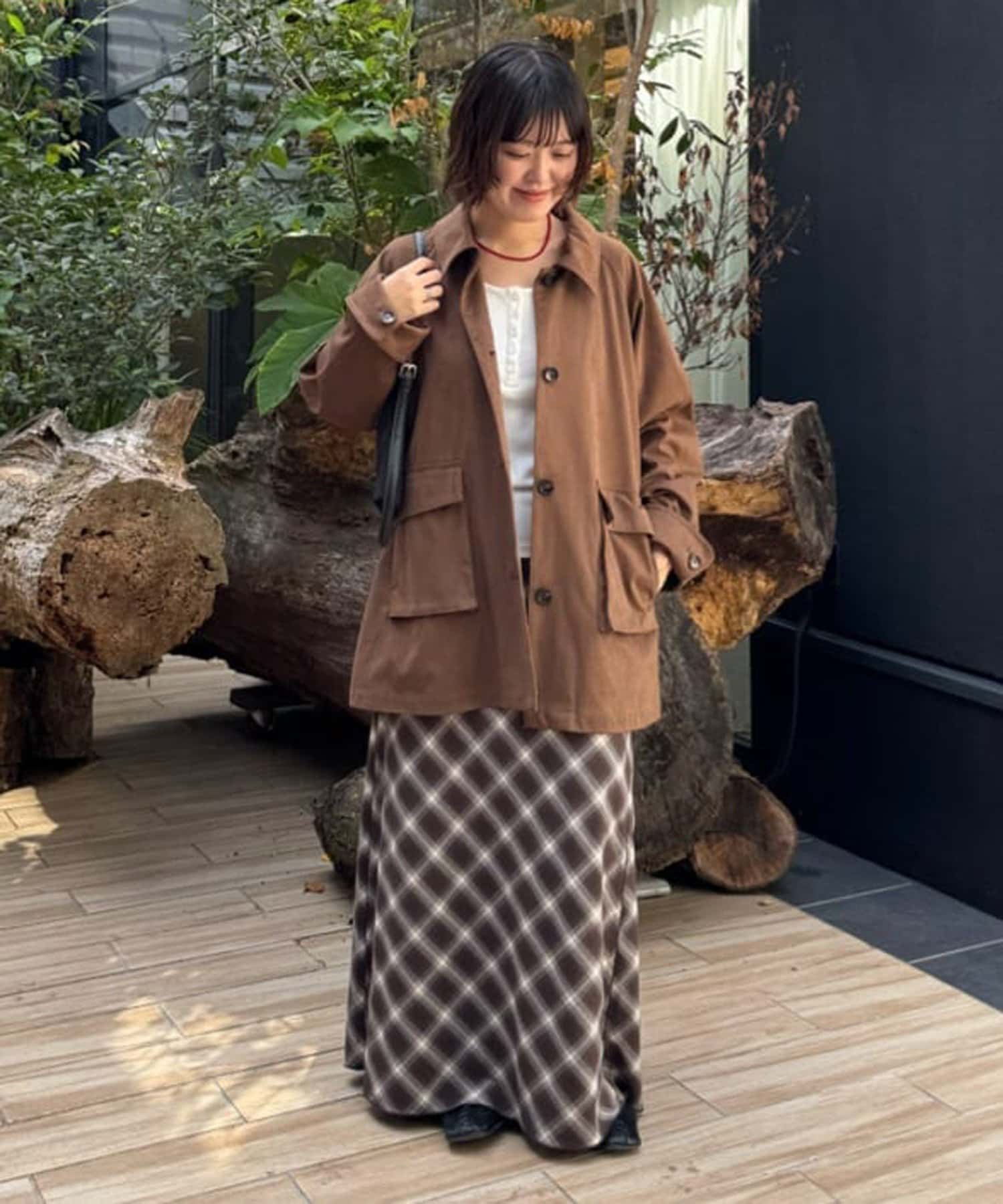 丈はトレンドのロング丈。縦ラインを強調してくれるシルエットです。