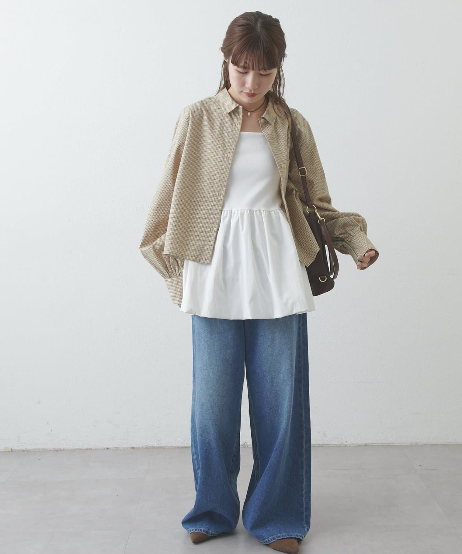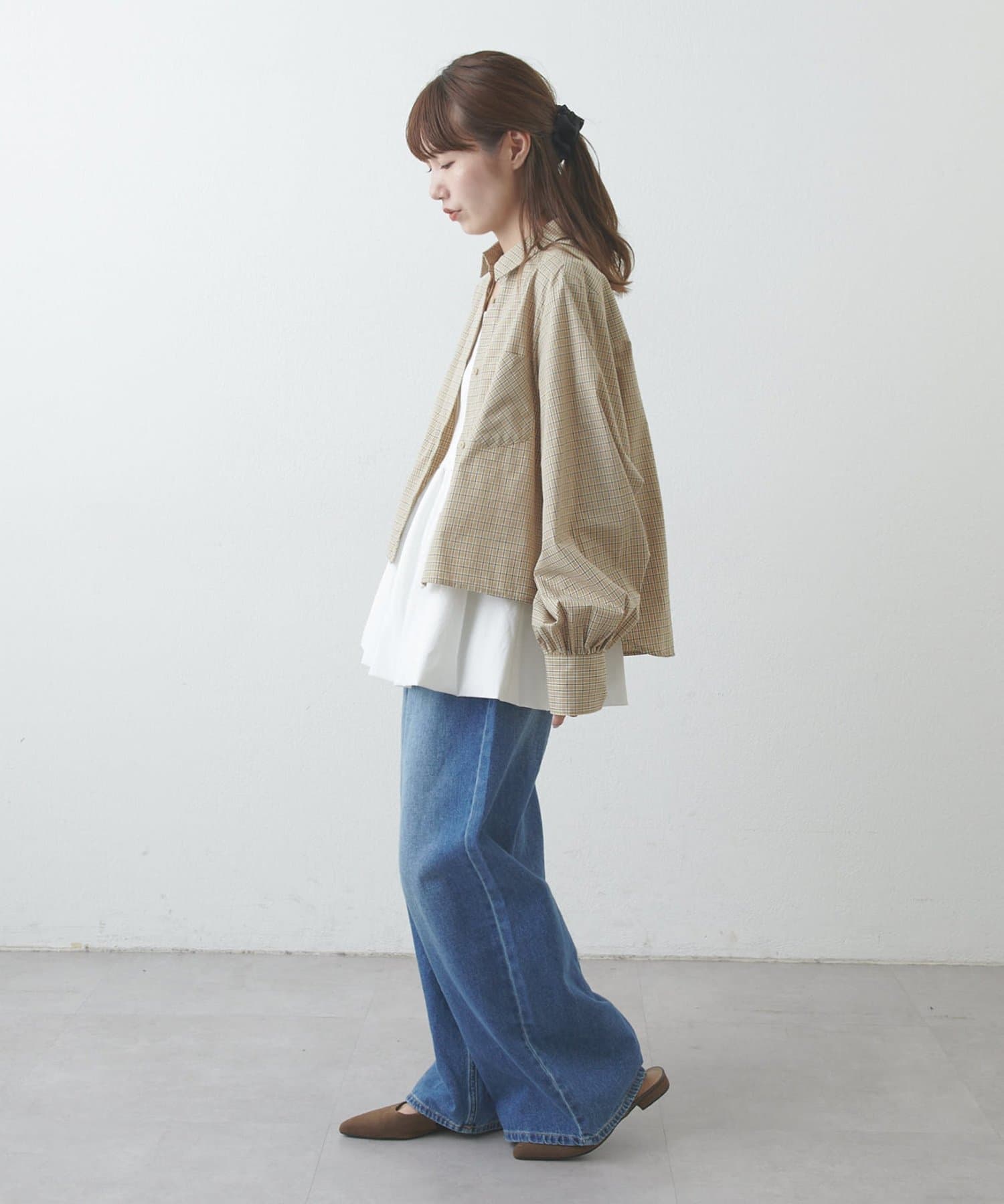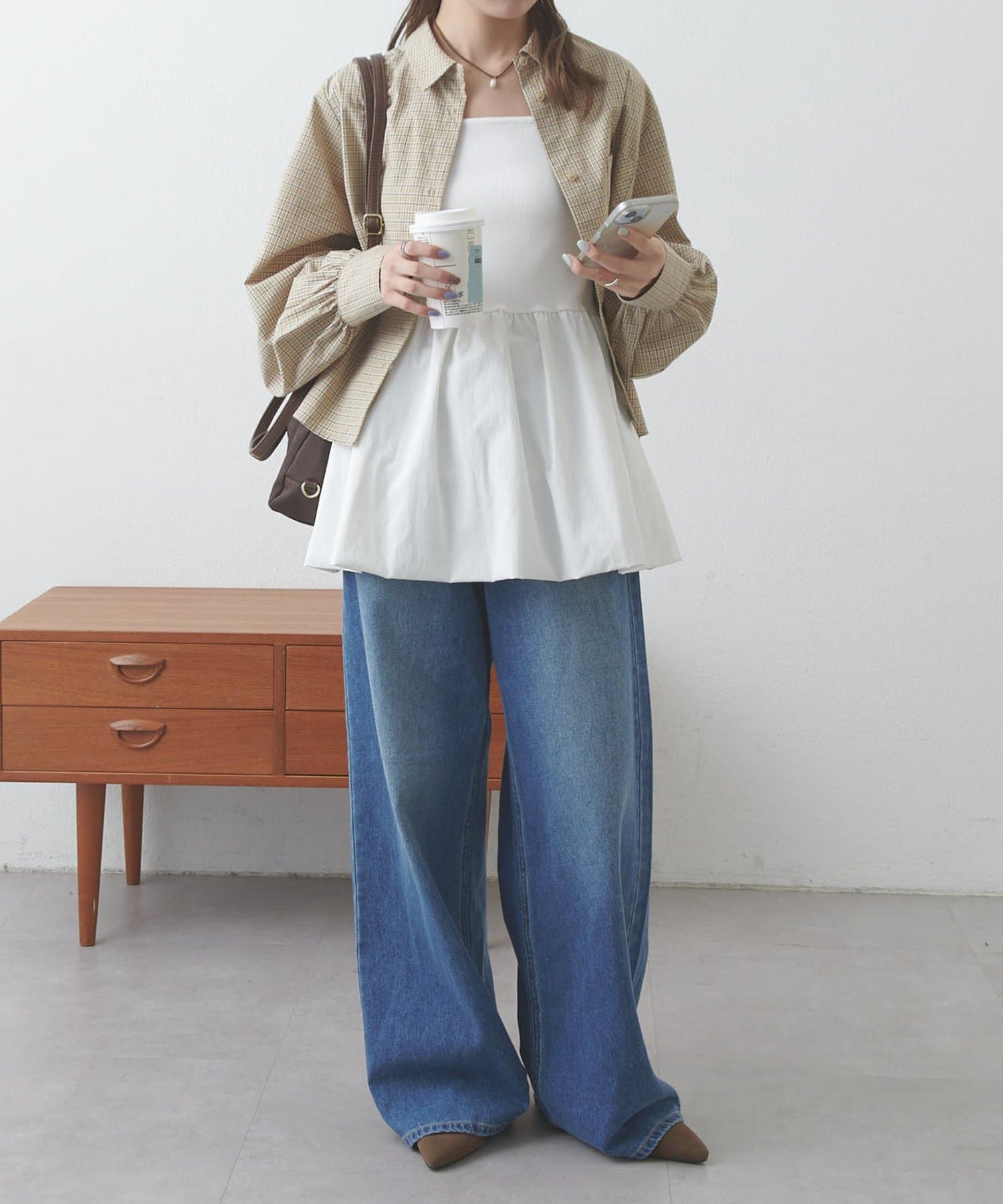 どんなボトムとも相性が良いので、パンツ・スカートどちらもシルエット問わずあわせていただきやすいアイテムです。