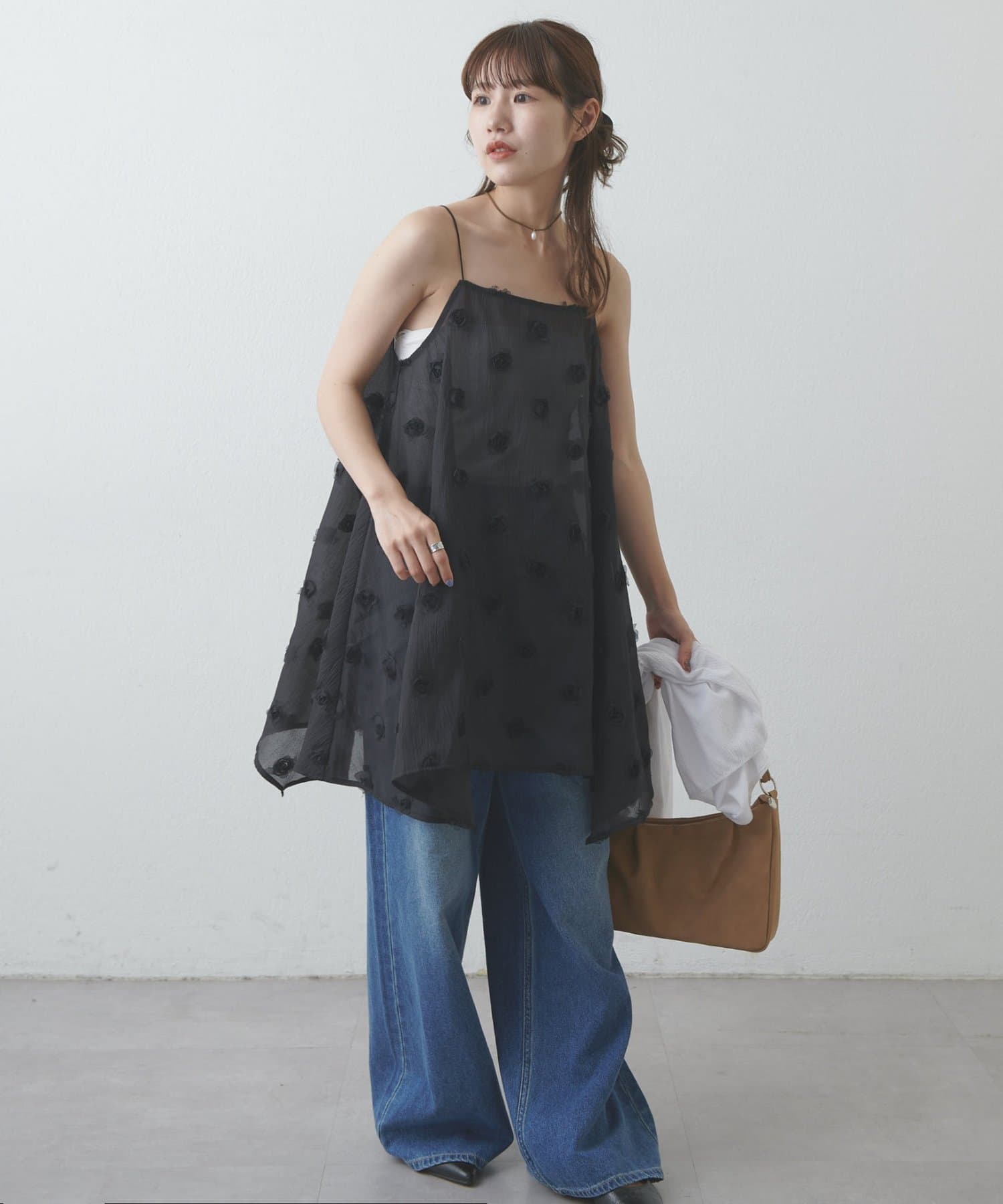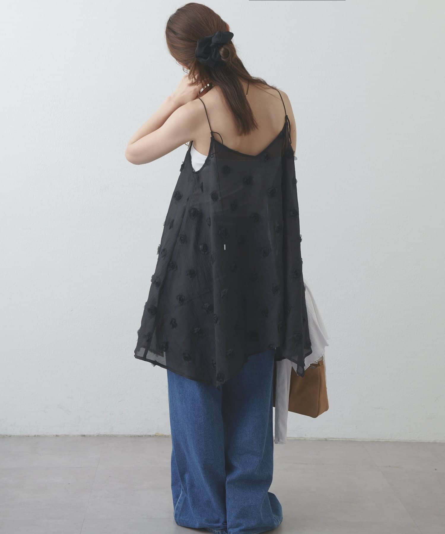 折り重なったレースフラワーが散りばめられた華やかなキャミチュニック♡