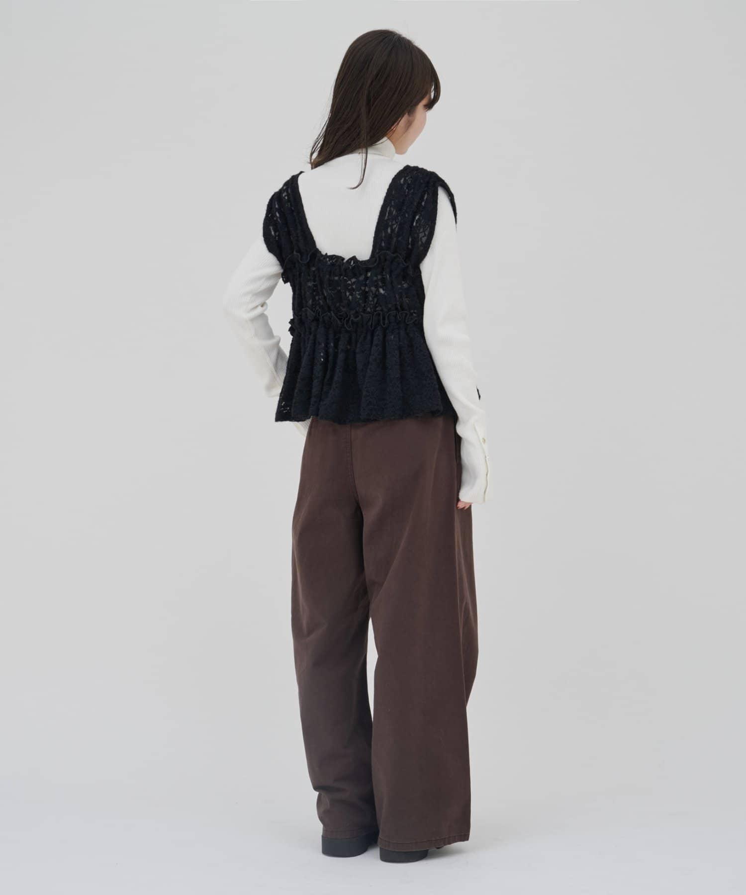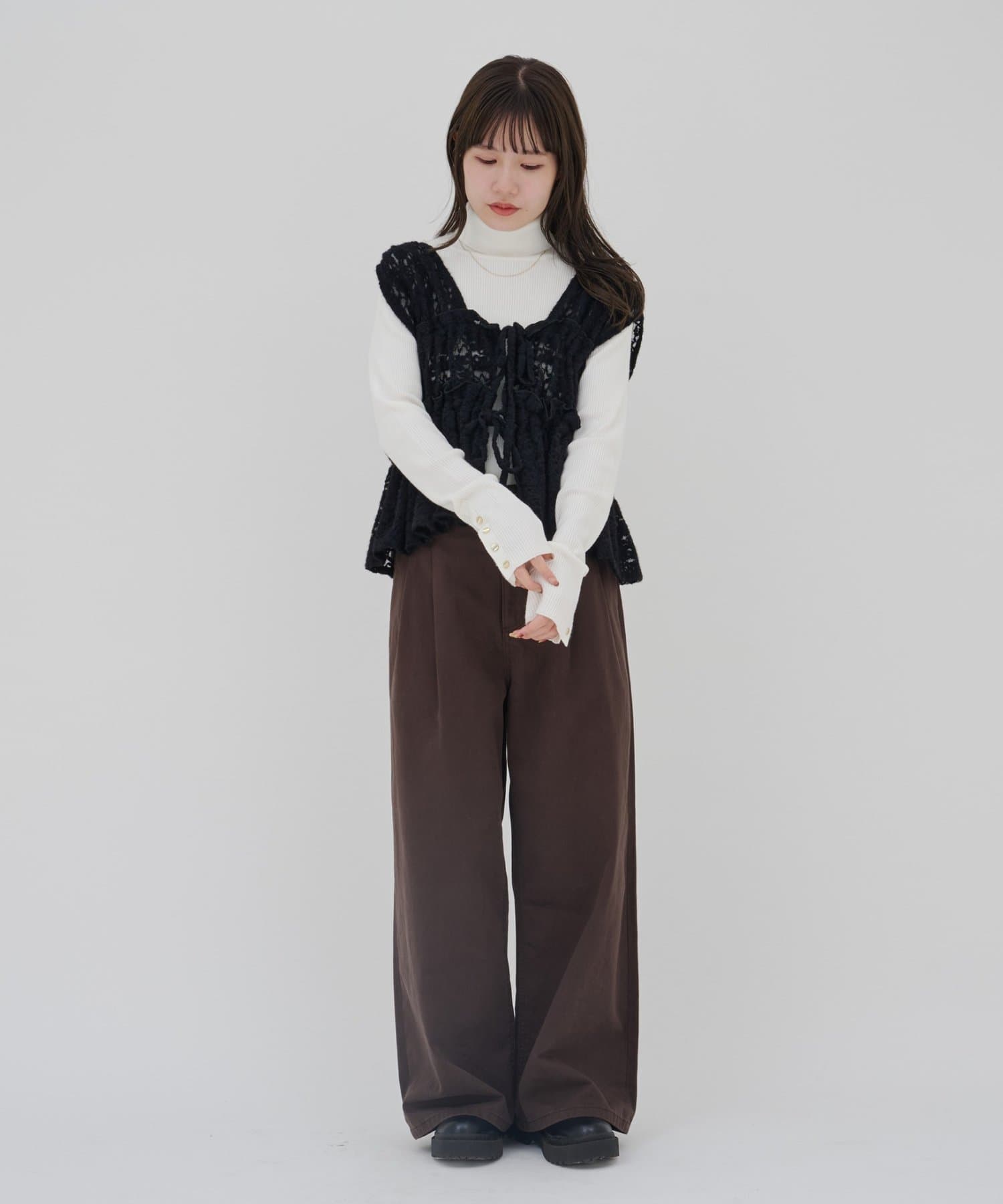 ・この製品は、柔らかく、デリケートな風合いを出す為、糸及び素材の特性上、引っ掛かり・引っ掛けにより糸が飛び出したり、ひきつれが生じやすい性質をもっております。また、激しい運動や極度な力が加われば、滑脱(縫い目が開く)・目寄れ(糸がずれて生地が開く)が生じる性質をもっております。着用時にベルト・バッグ・アクセサリー・身の回りのとがったもの等との摩擦や、引っ掛かりにご注意ください。
