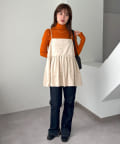 162cmスタッフ:Tシャツとデニムに合わせるだけで、一気に秋先取りコーデに!キャミチュニックなので、今の時期にも暑くなくレイヤードをたのしめめます!