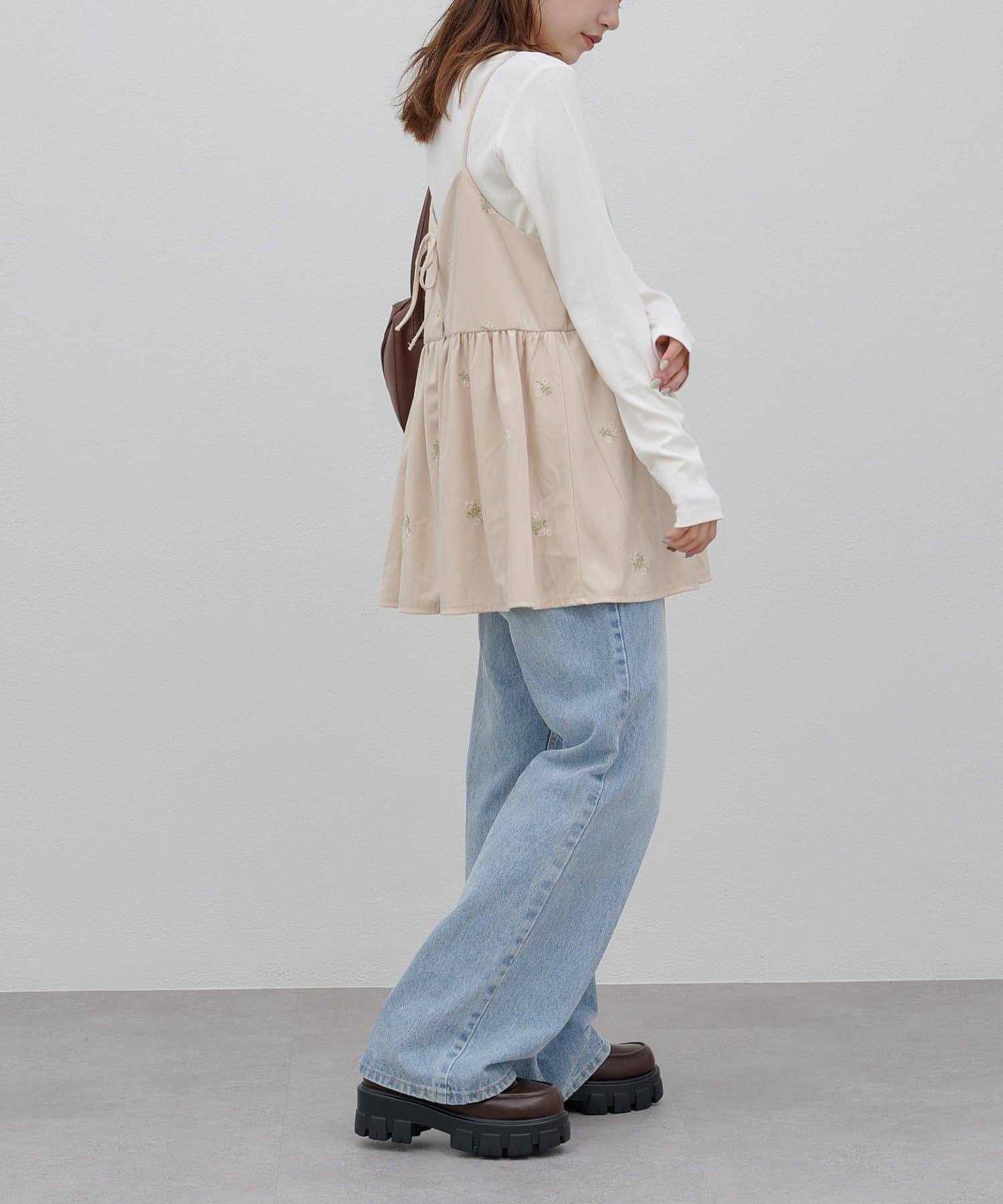 肉厚過ぎないキャミチュニックなので、今の時期からでも季節を先取りできるアイテムです。