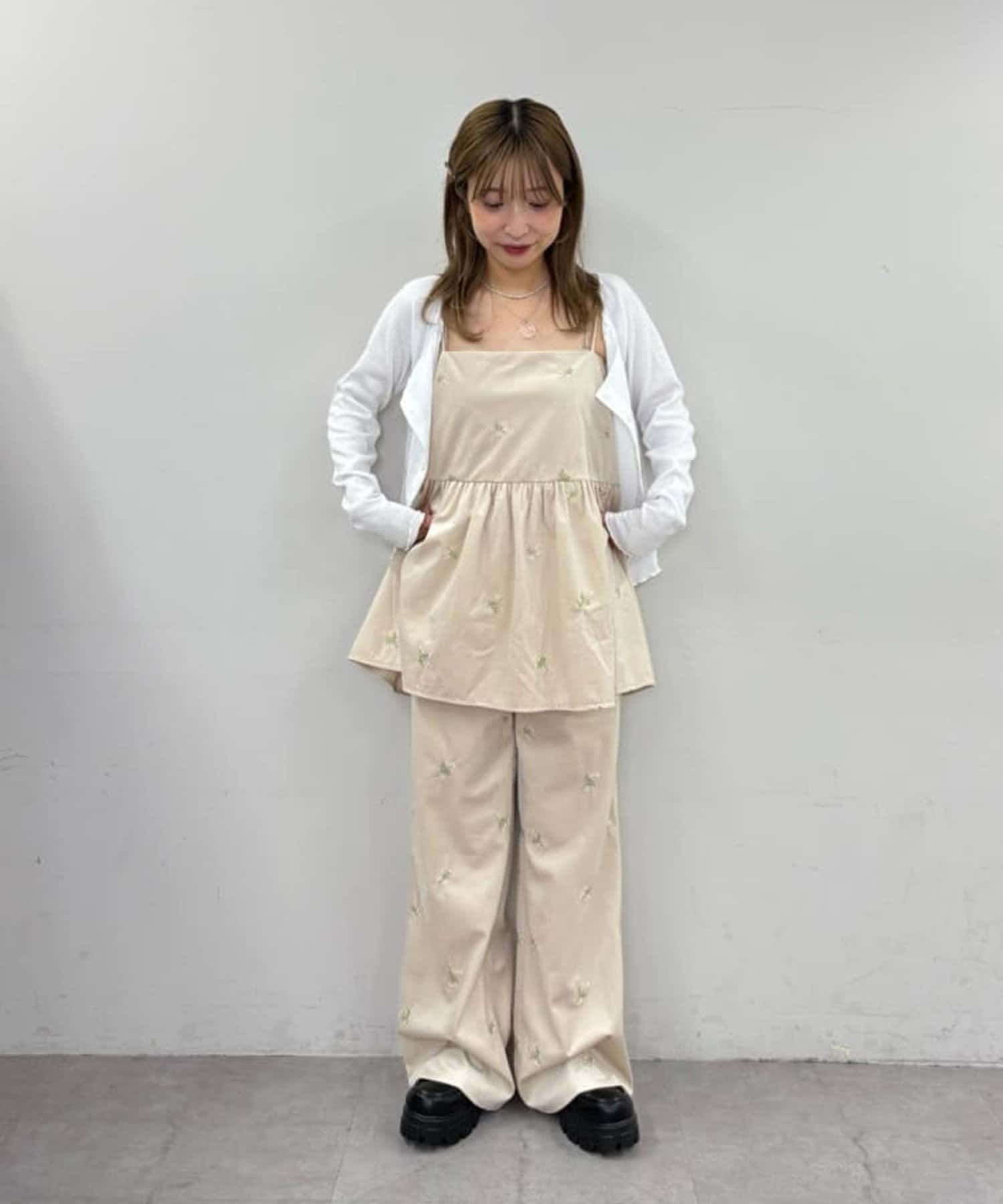 同素材のベロア刺繍セミフレアパンツとセットアップとして着用するのもおすすめです!