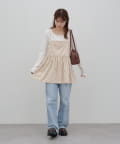 162cmスタッフ:Tシャツとデニムに合わせるだけで、一気に秋先取りコーデに!キャミチュニックなので、今の時期にも暑くなくレイヤードをたのしめめます!