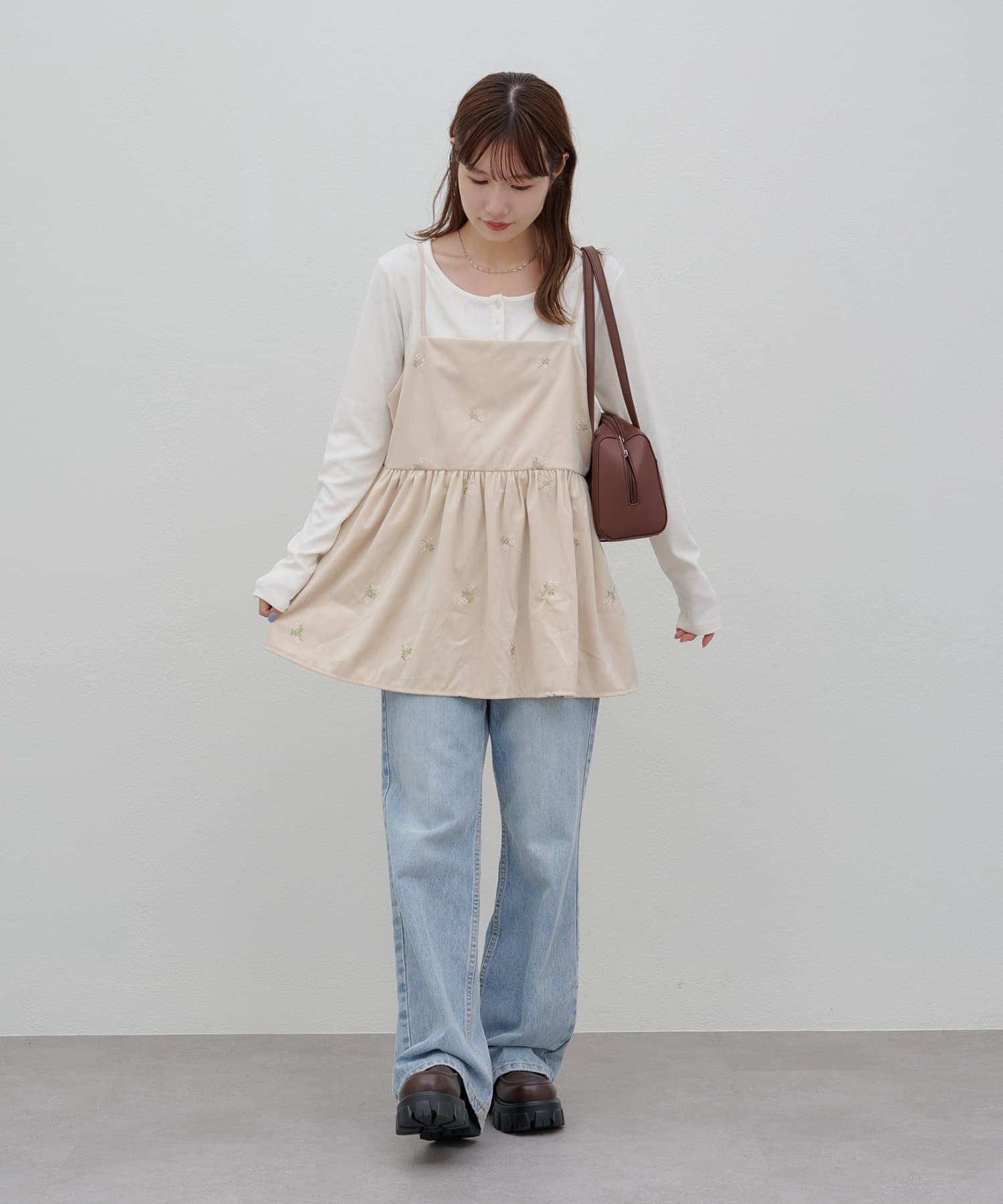 152cmスタッフ:柔らかく上品なベロアが可愛い♡お花の刺繍が入っているので、上からジャケットやカーディガンを羽織っても、コーディネートのポイントになるので、秋冬に活躍しそうです!
