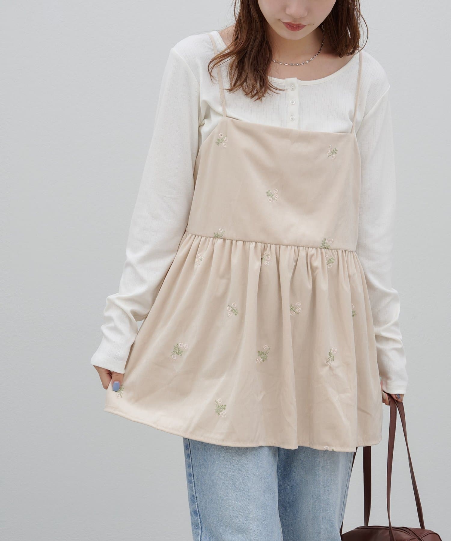 肉厚過ぎないキャミチュニックなので、今の時期からでも季節を先取りできるアイテムです。
