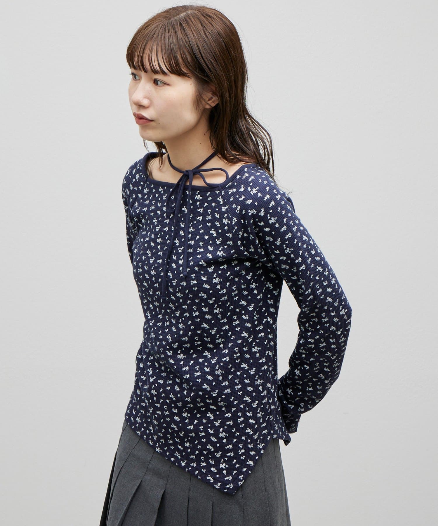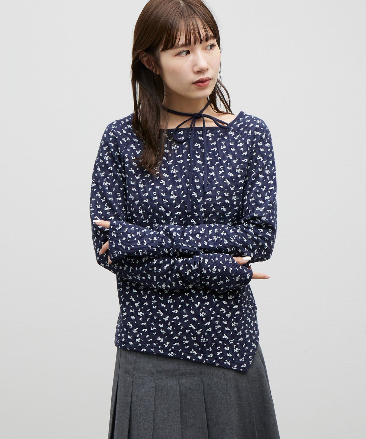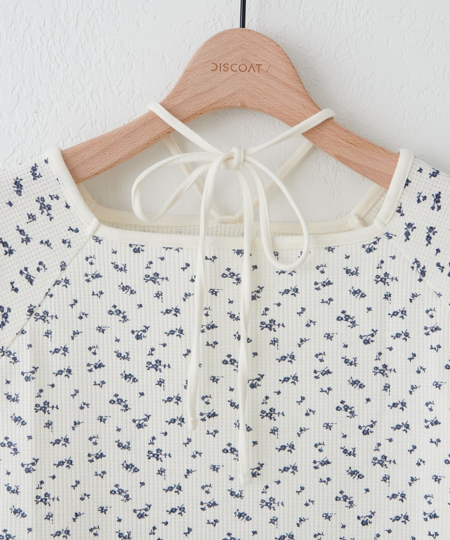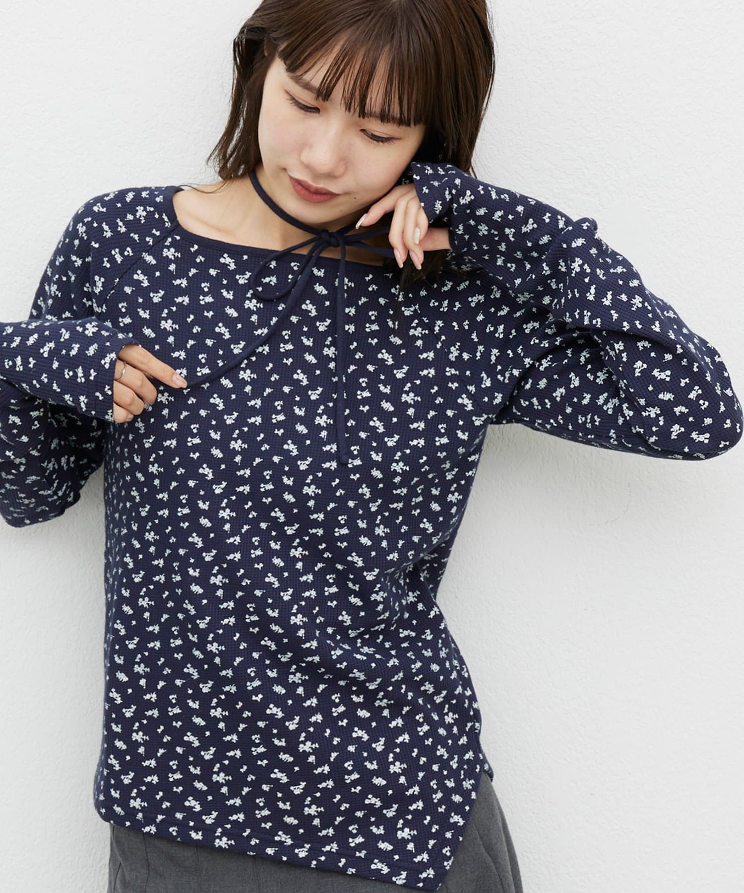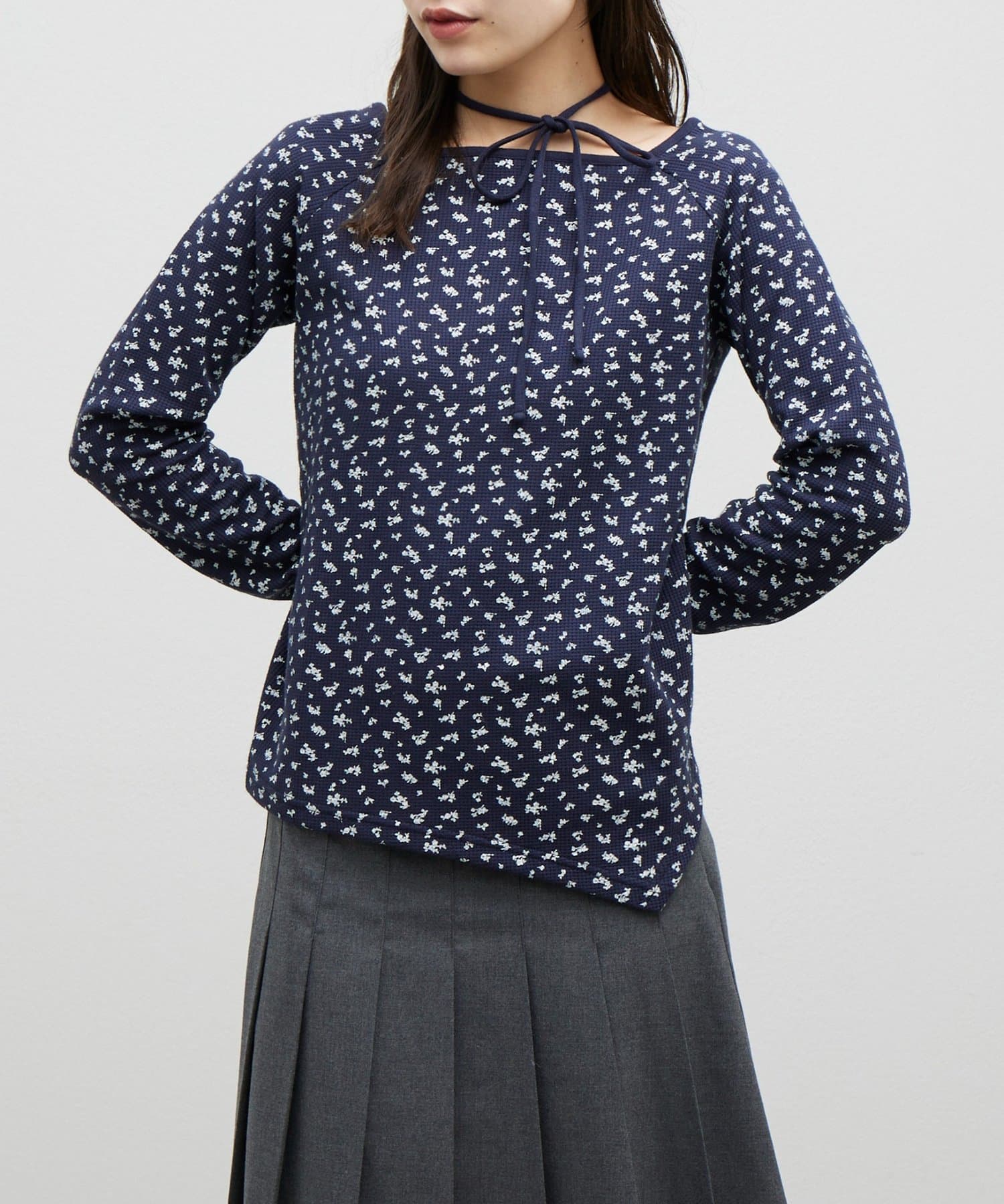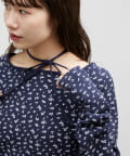 【umm.】チョーカー付ワッフル花柄スクエアネック
