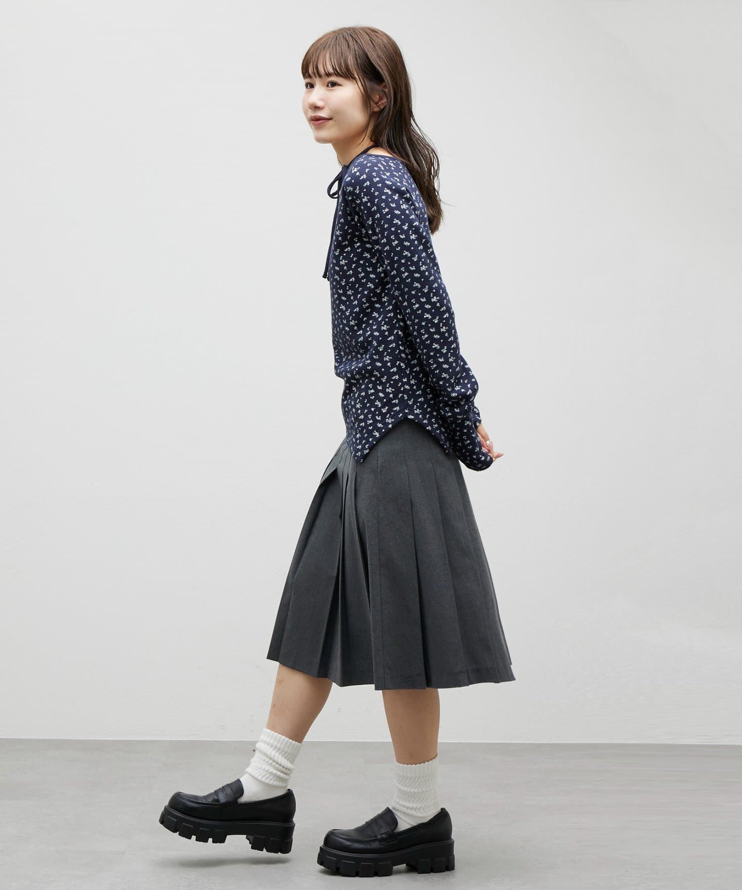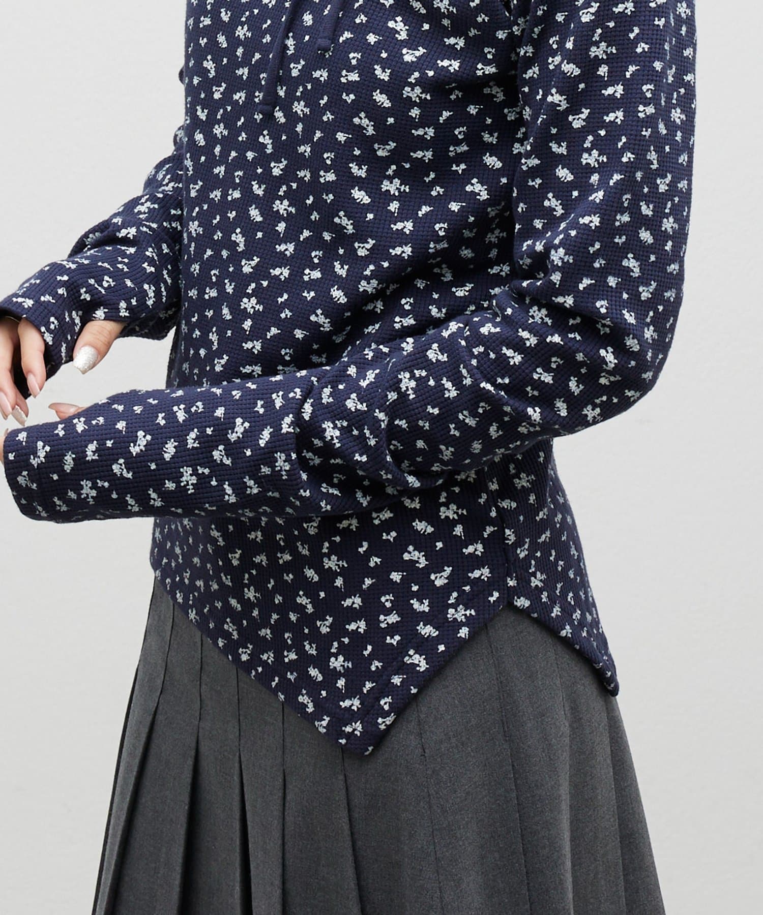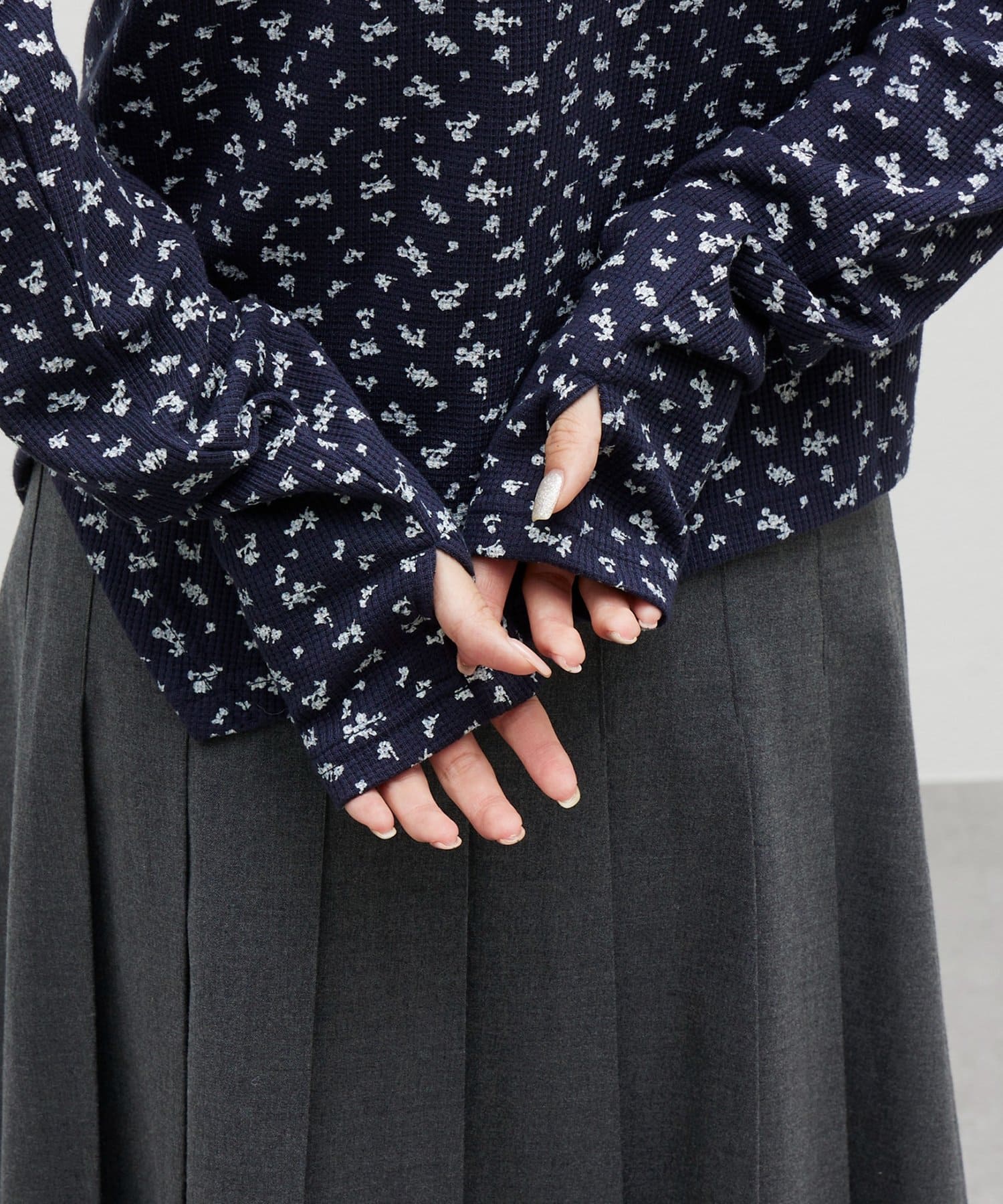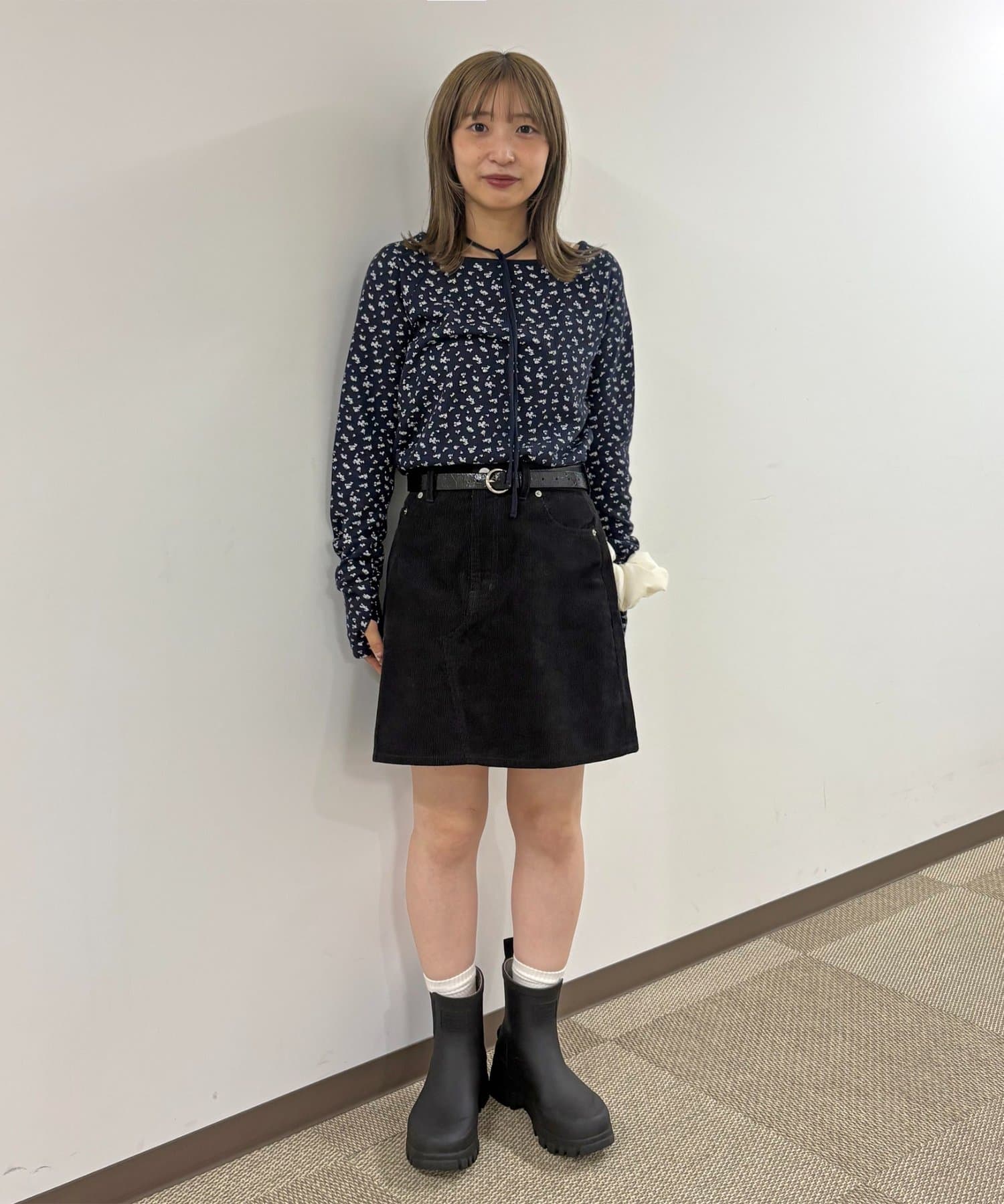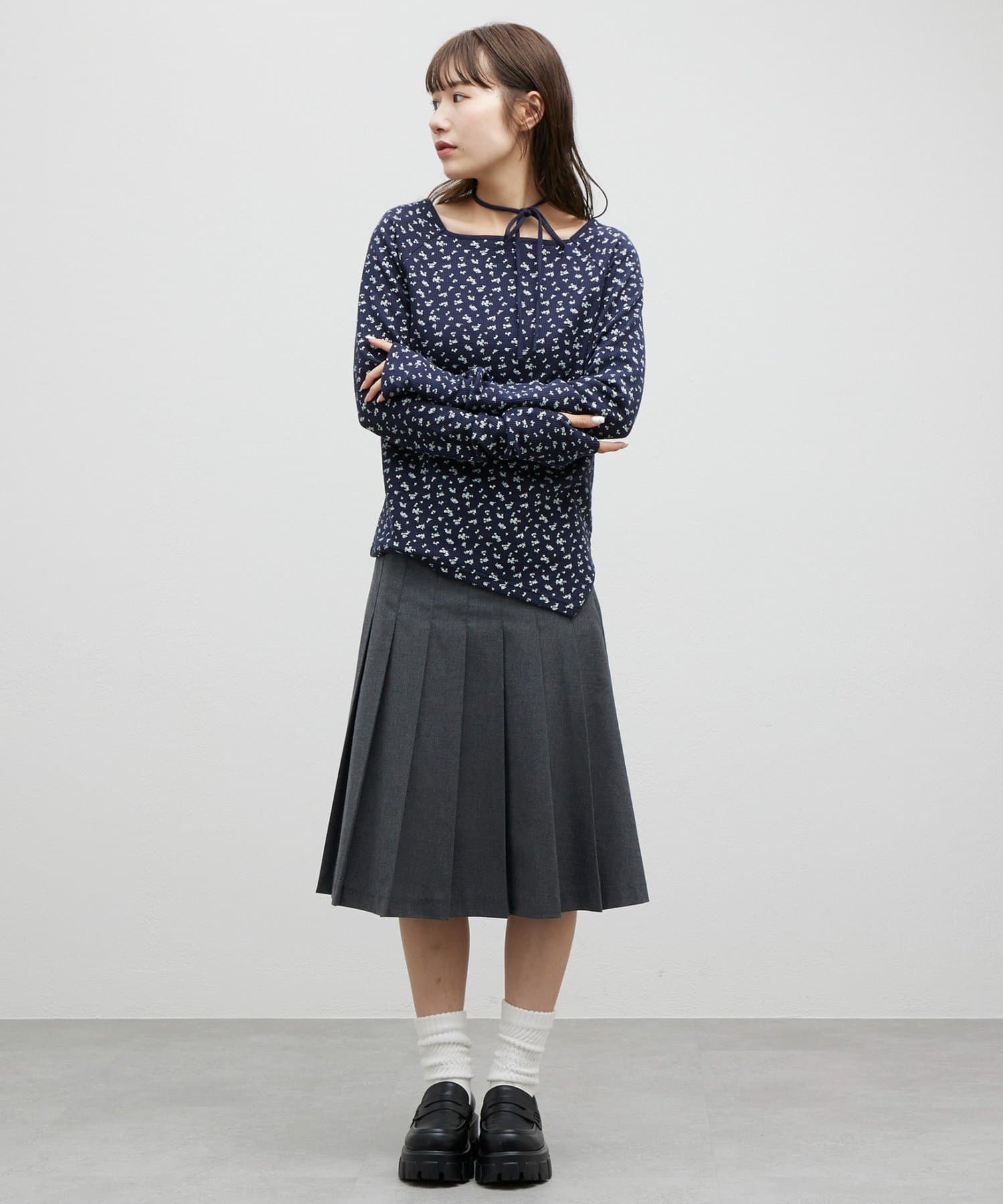 【umm.】チョーカー付ワッフル花柄スクエアネック
