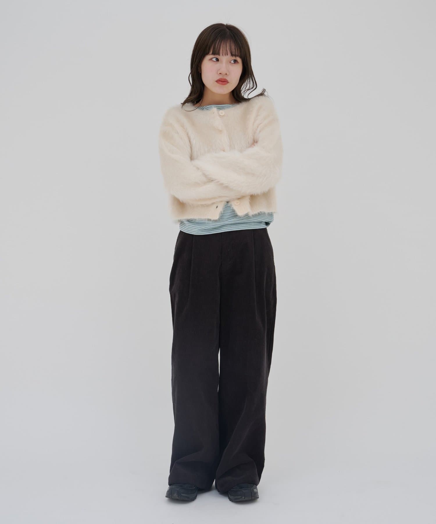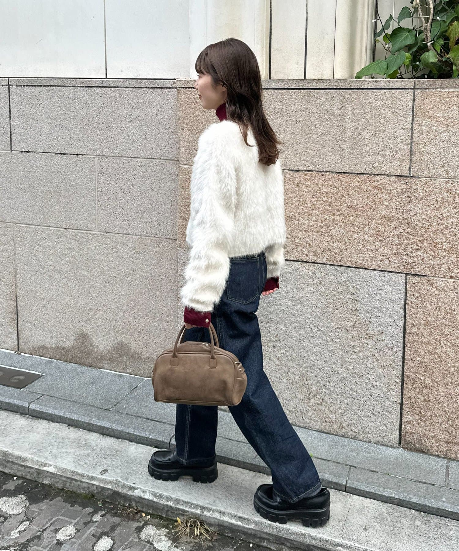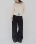 ショート丈なので、ハイウエストボトムやショート丈のボトムスとも相性が良いです◎