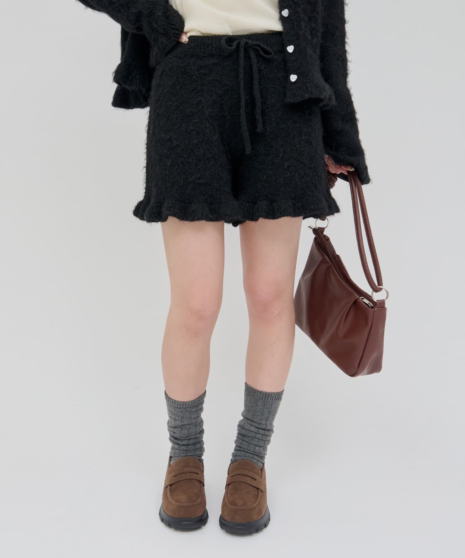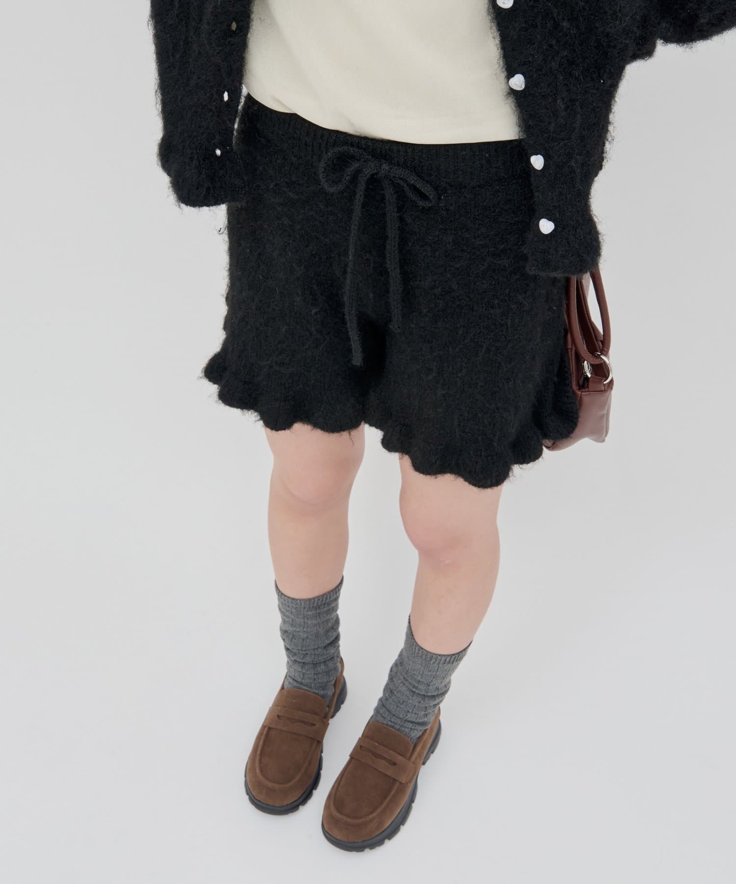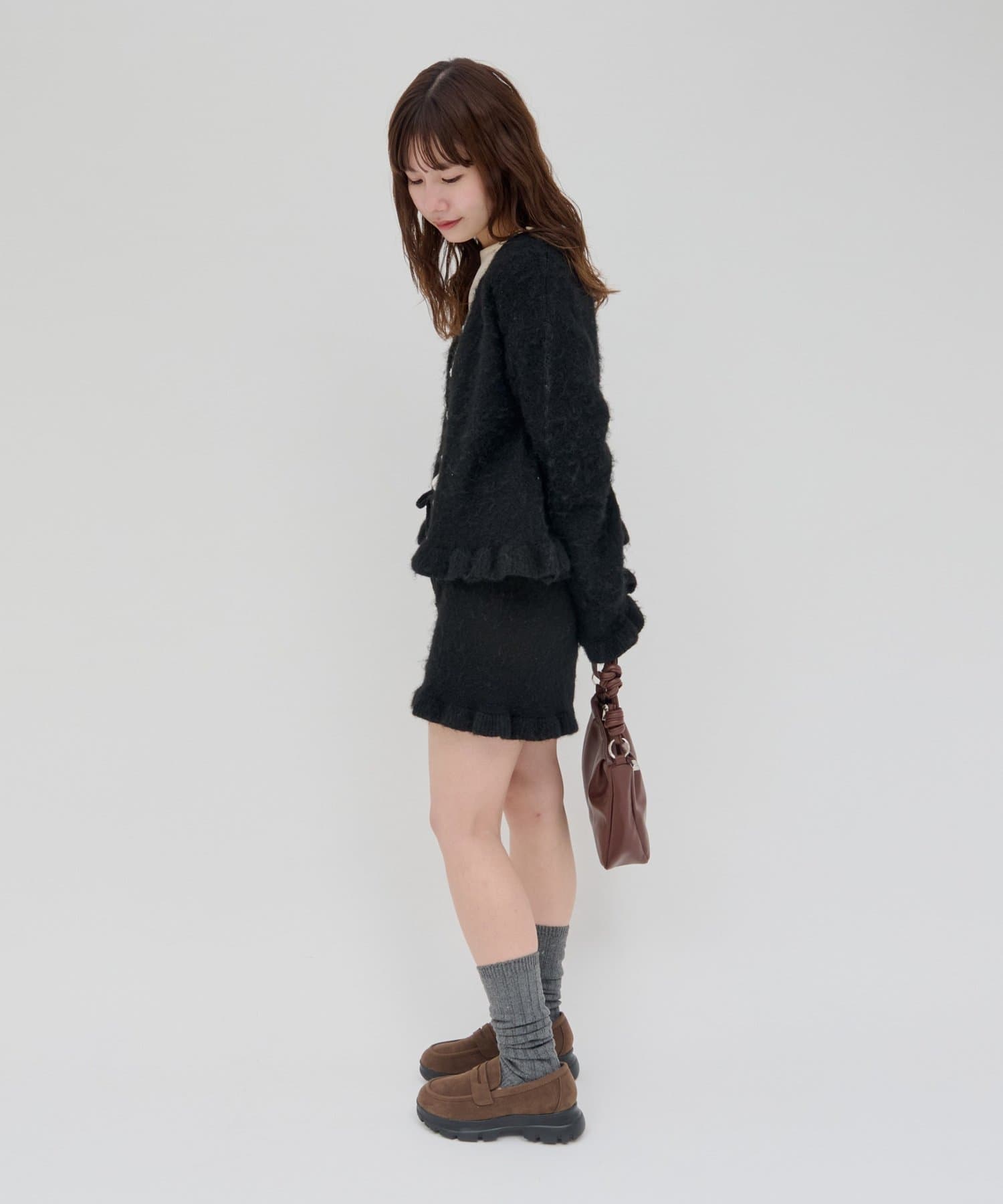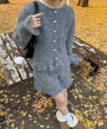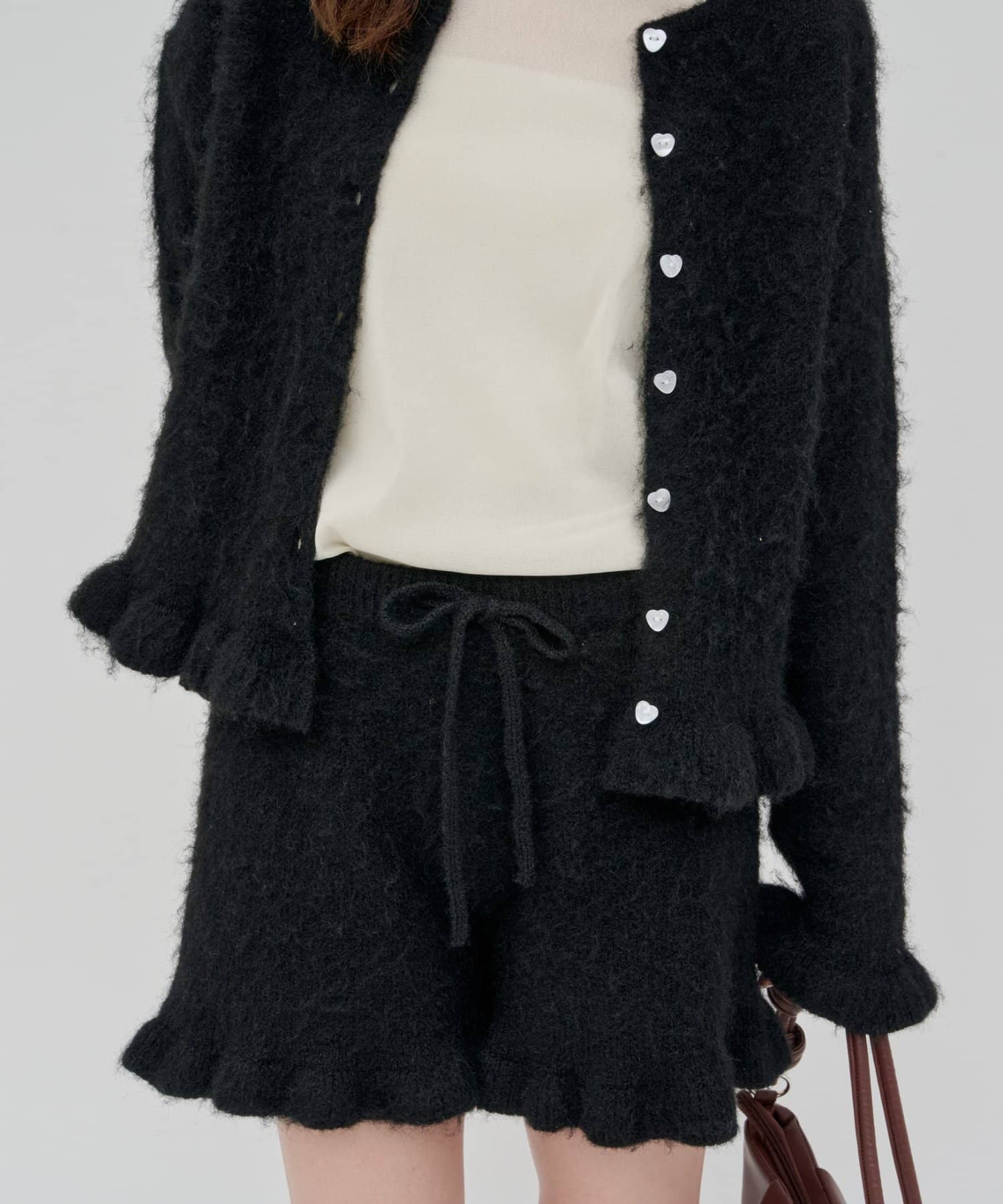 ・同素材の【umm.】ハート釦フリルニットカーデとのセットアップもおすすめです。
