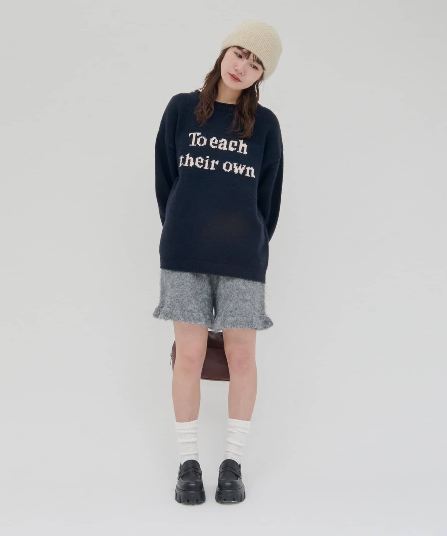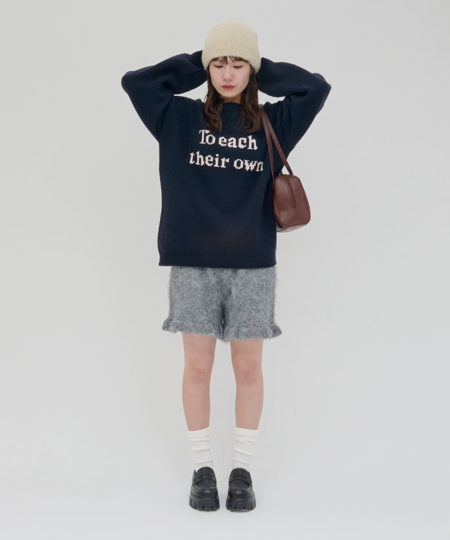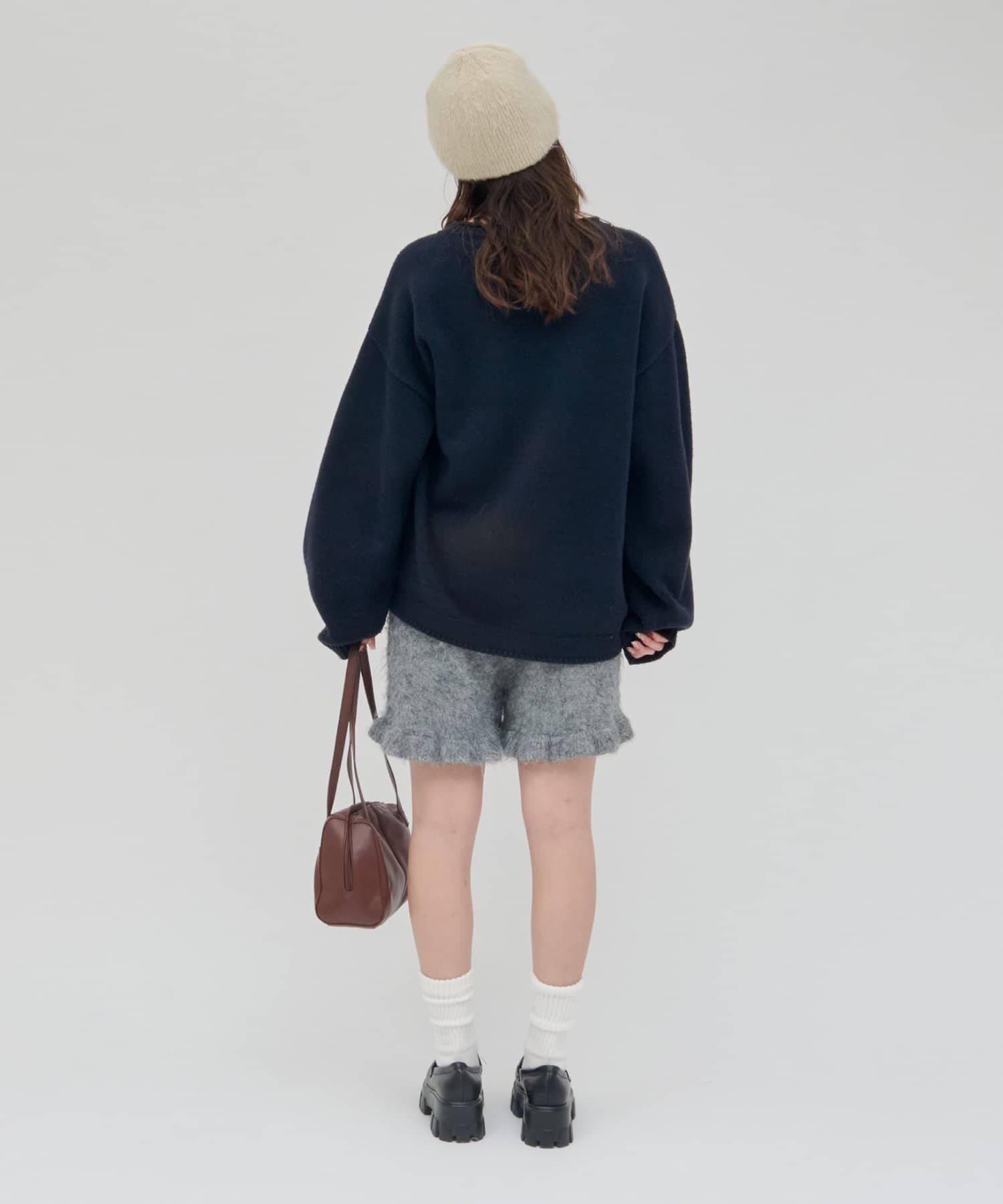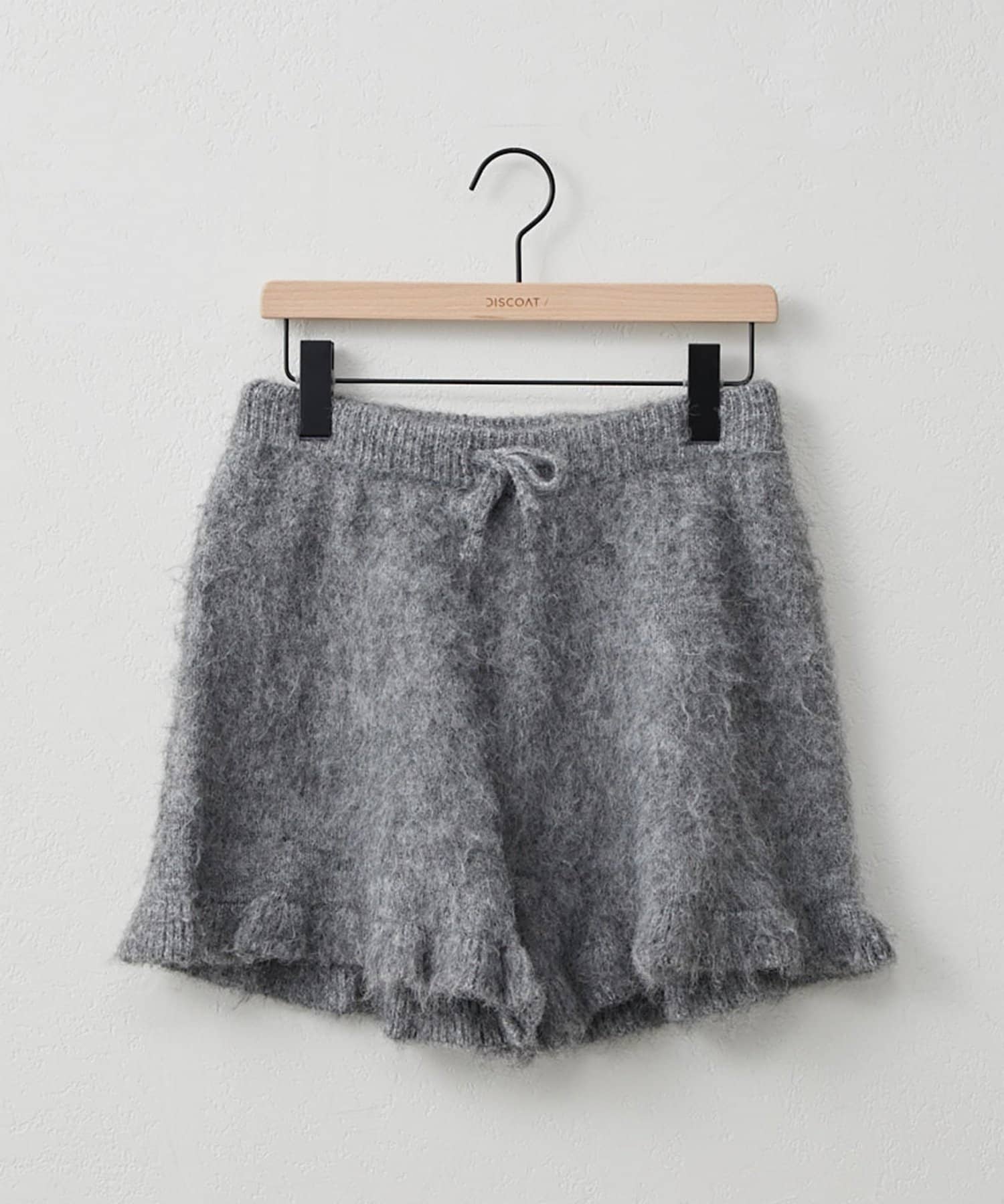 ・同素材の【umm.】ハート釦フリルニットカーデとのセットアップもおすすめです。