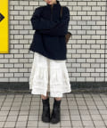 157cmスタッフ:ふくらはぎが半分くらい隠れるミドル丈で、普段使いしやすい長さ。動くたびにふんわり揺れるシルエットがかわいいです♡