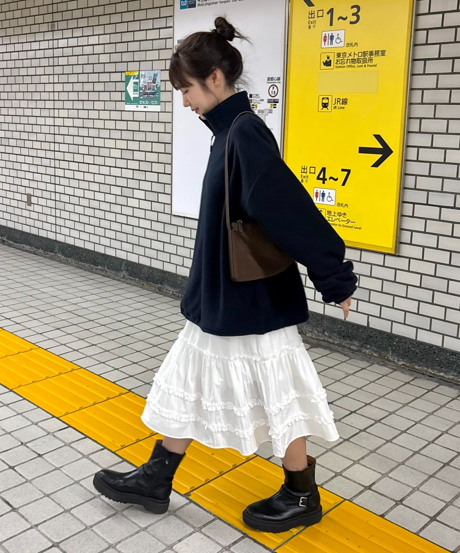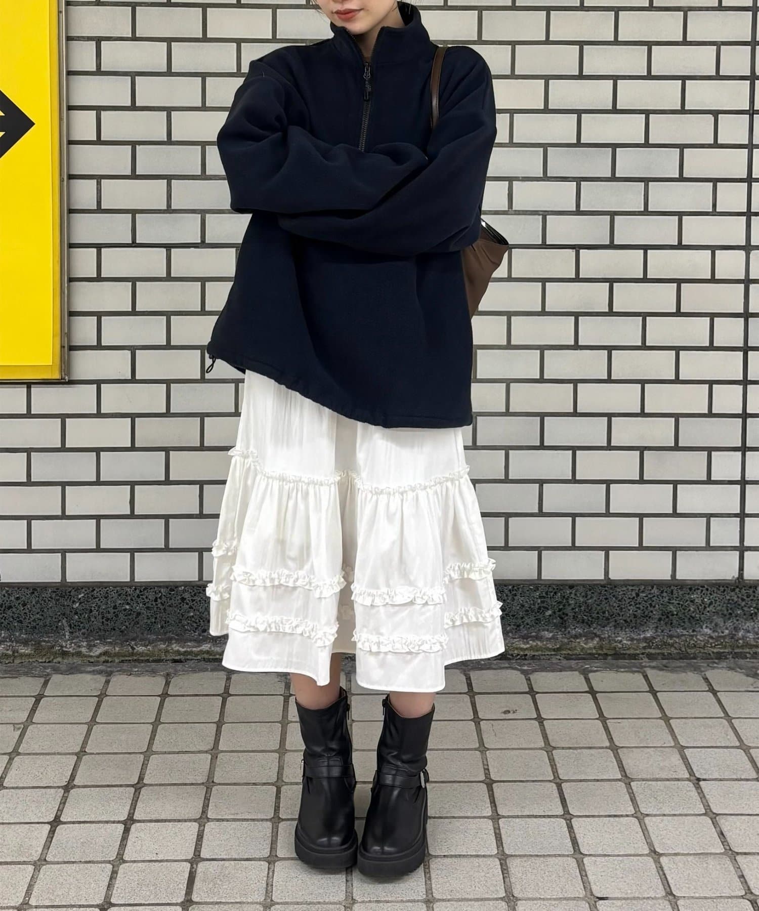 ・足元はブーツやローファーで引き締めると、甘くなりすぎず大人っぽい印象に
