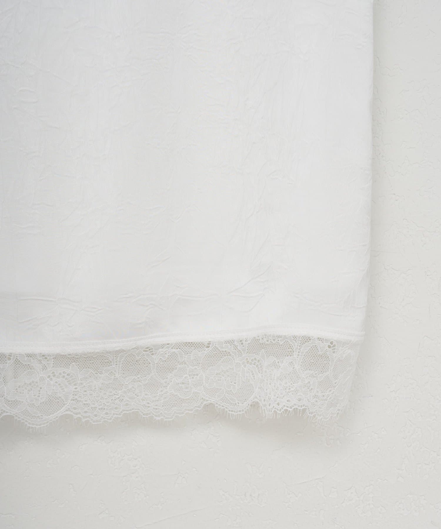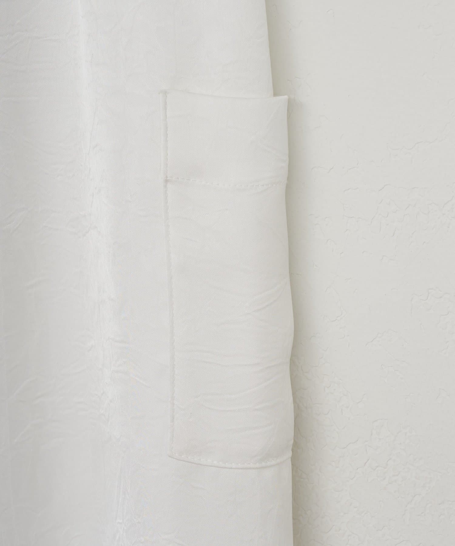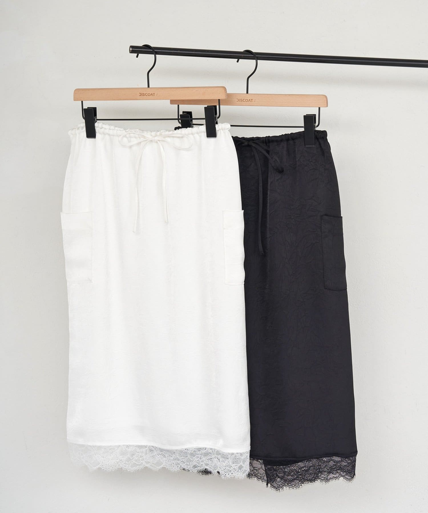 【umm.】ヒゲレースクラッシュサテンミドルスカート