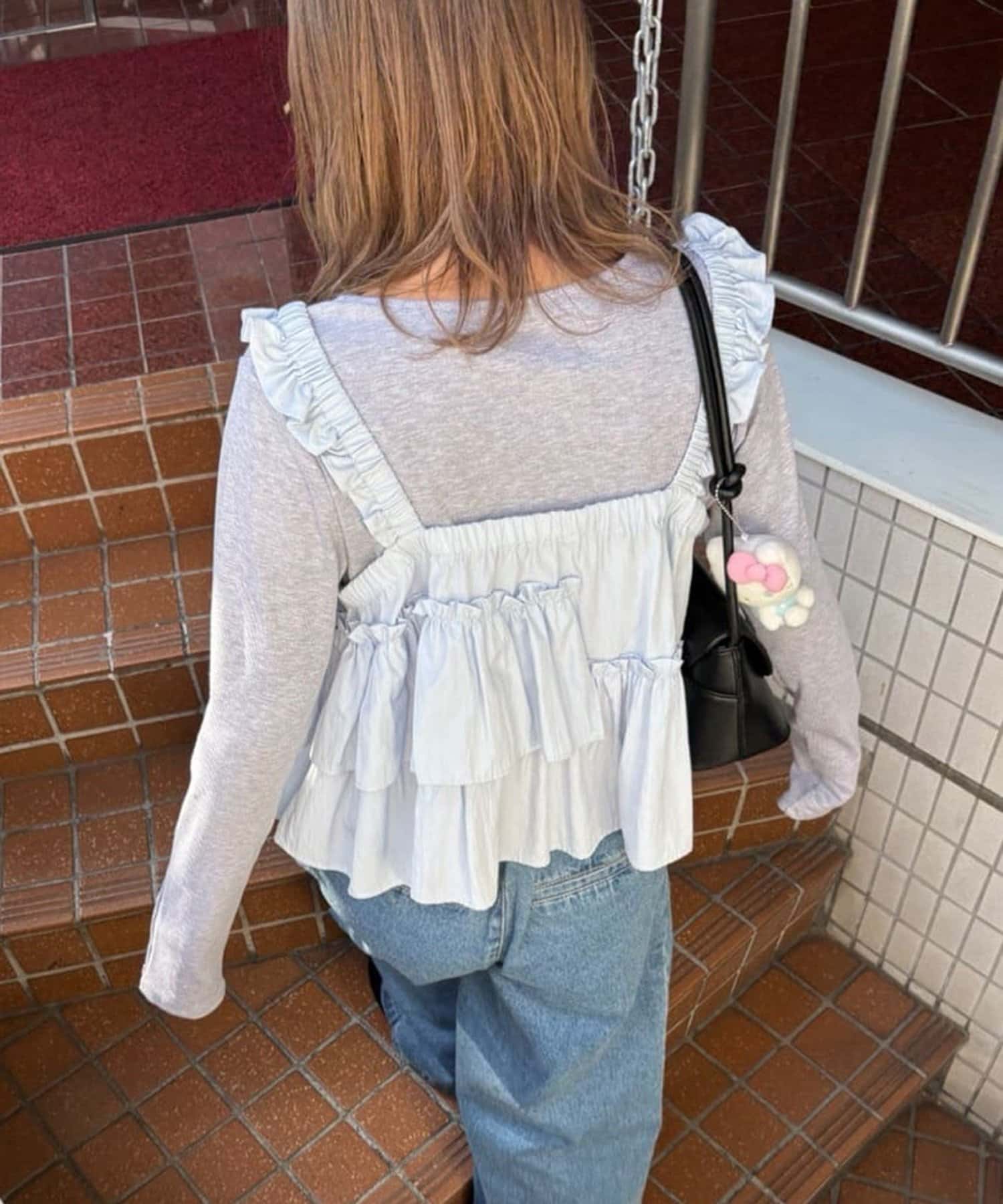 155cmスタッフ:360°フリルのデザインでどこから見ても華やかな印象になります。シンプルなデニムやスラックスと合わせて、コーデのメインとして楽しみたいです。
