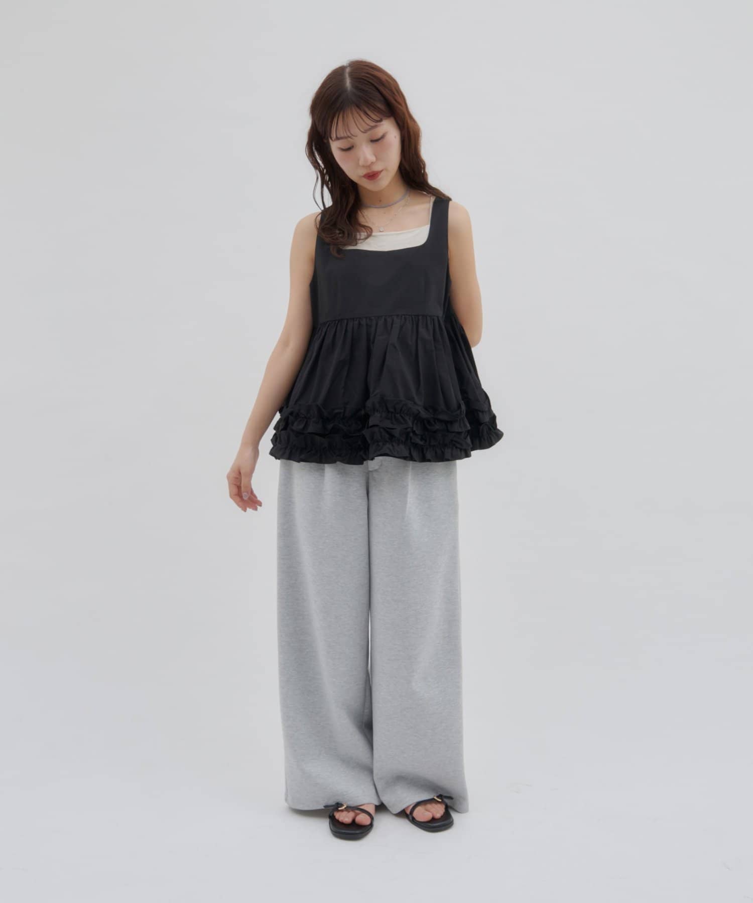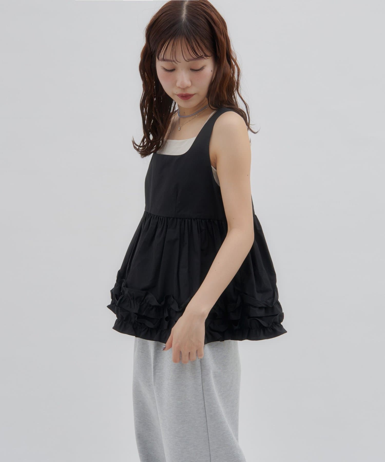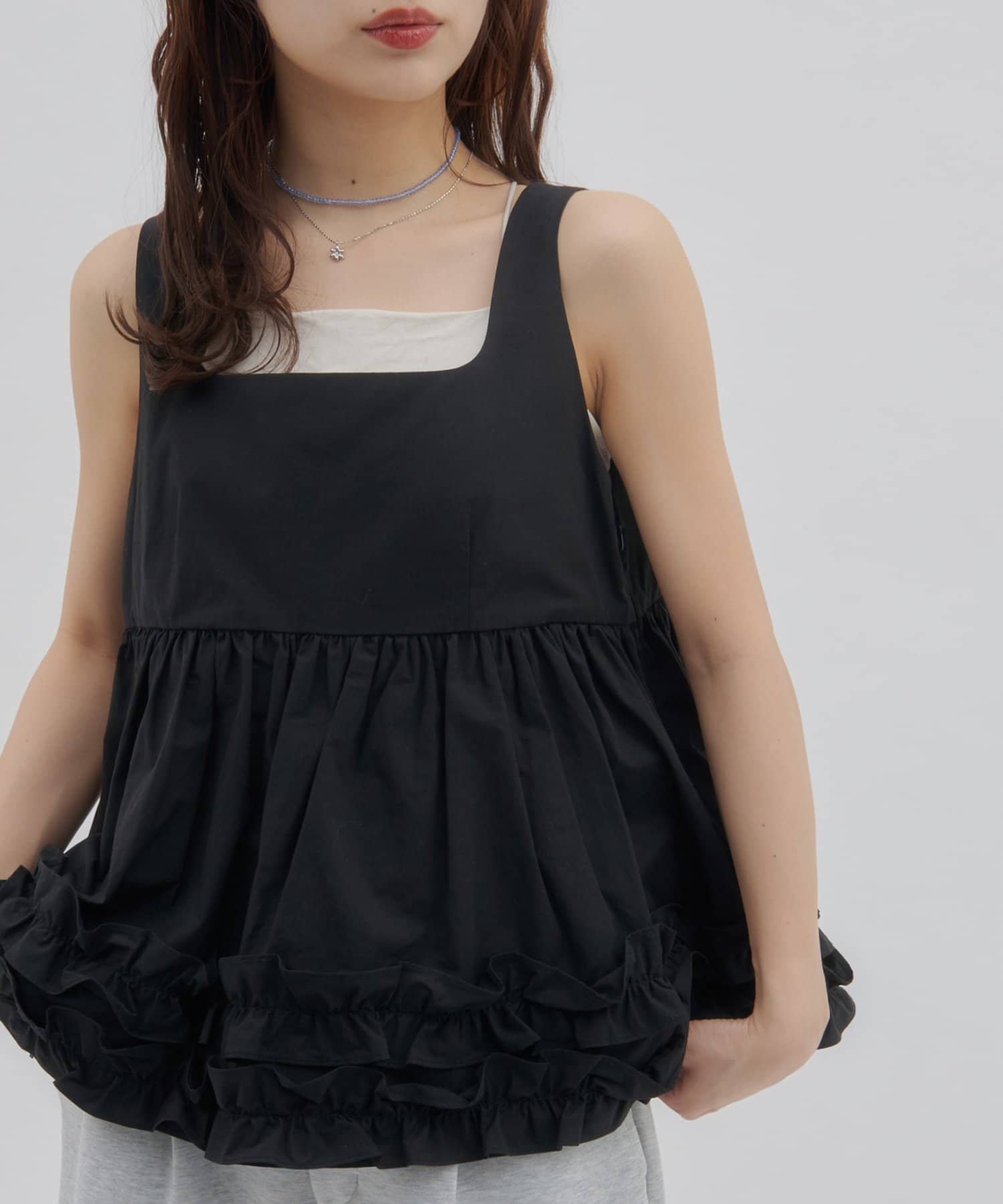 【SS先行予約/umm.】裾フリルノースリブラウス