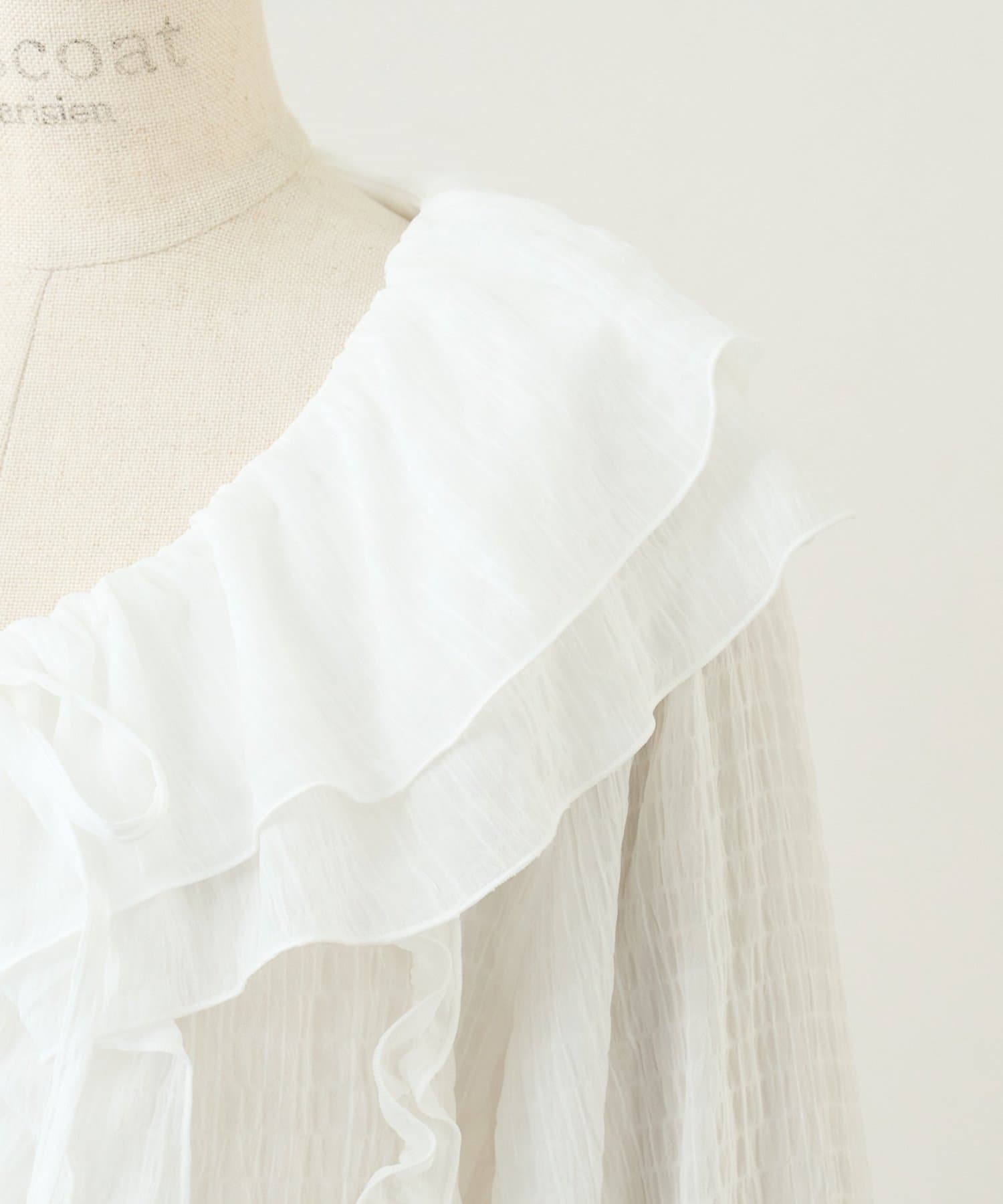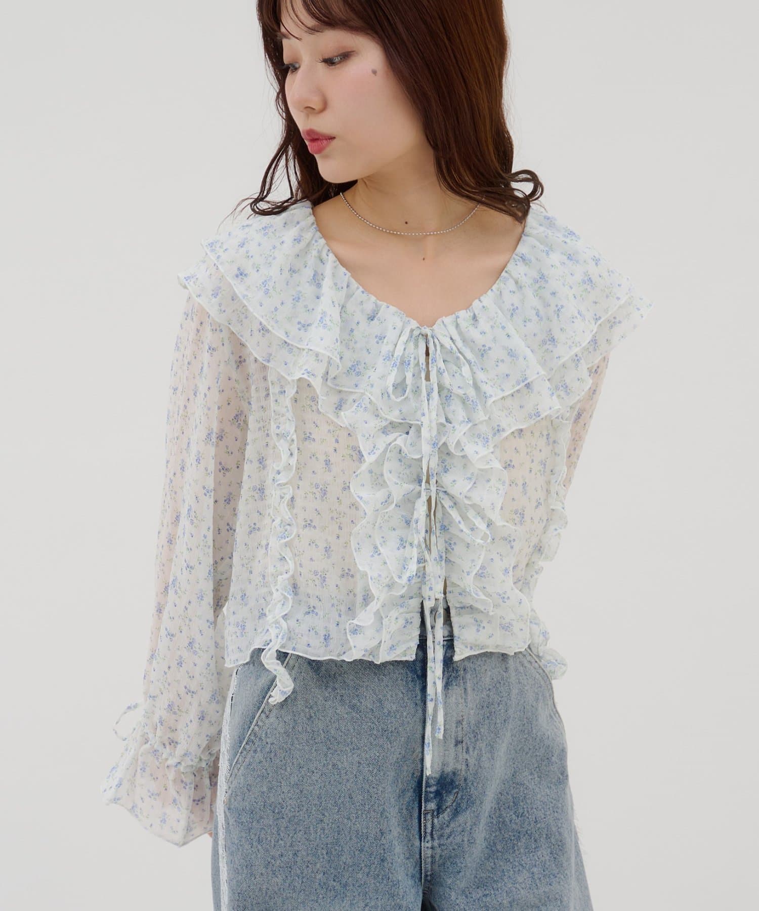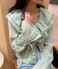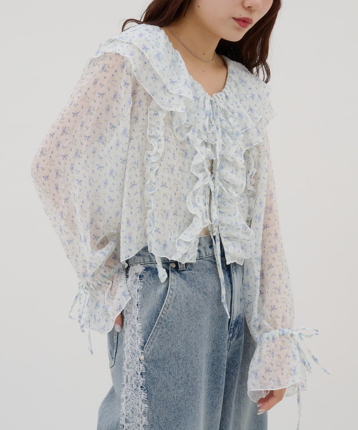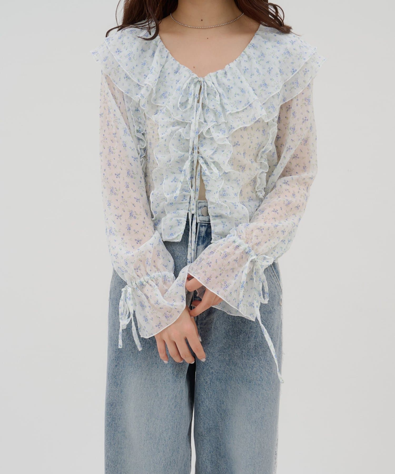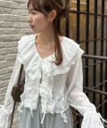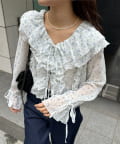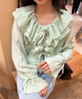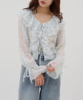 【umm./花柄&無地】生地ジャガードフリルブラウス