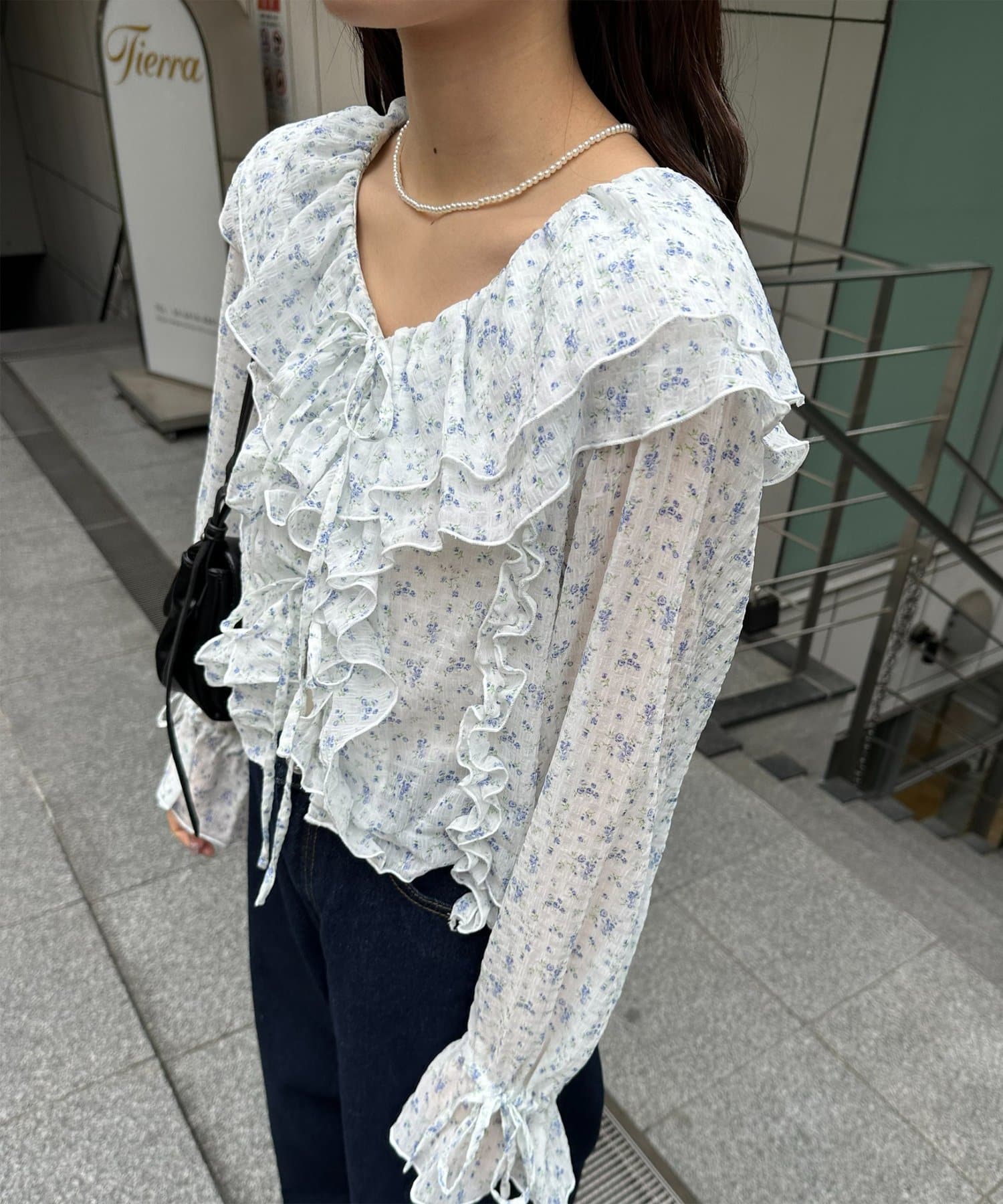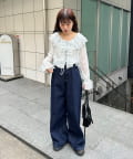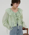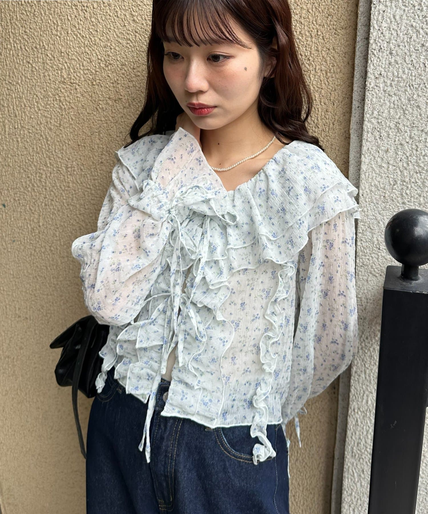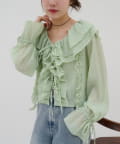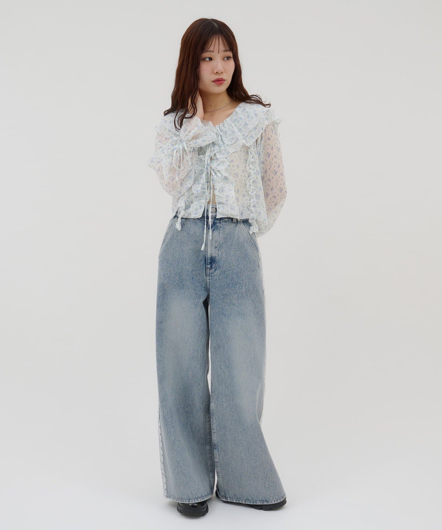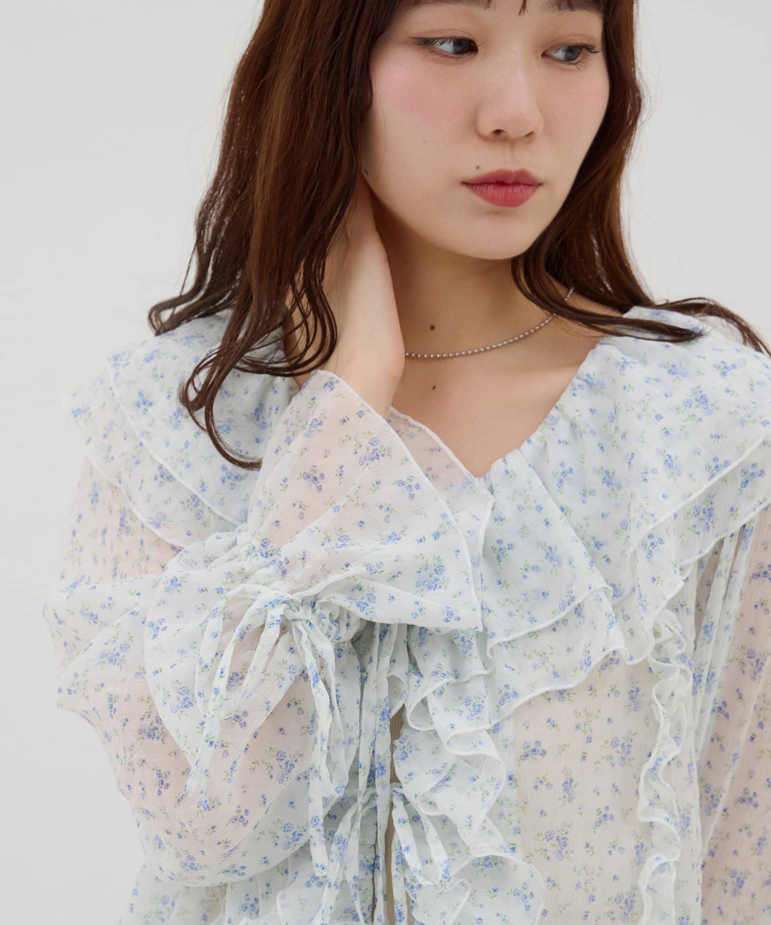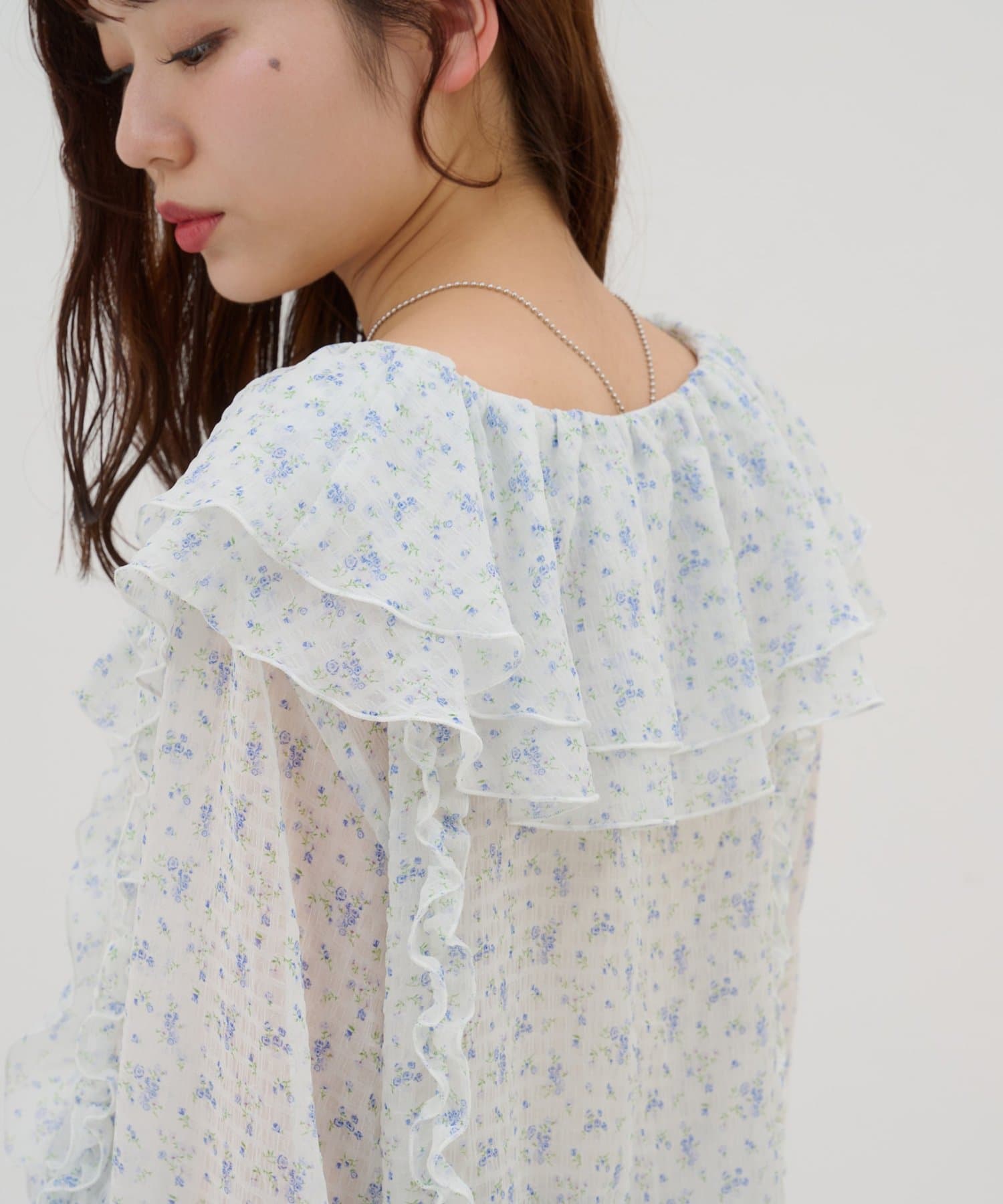 【umm./花柄&無地】生地ジャガードフリルブラウス