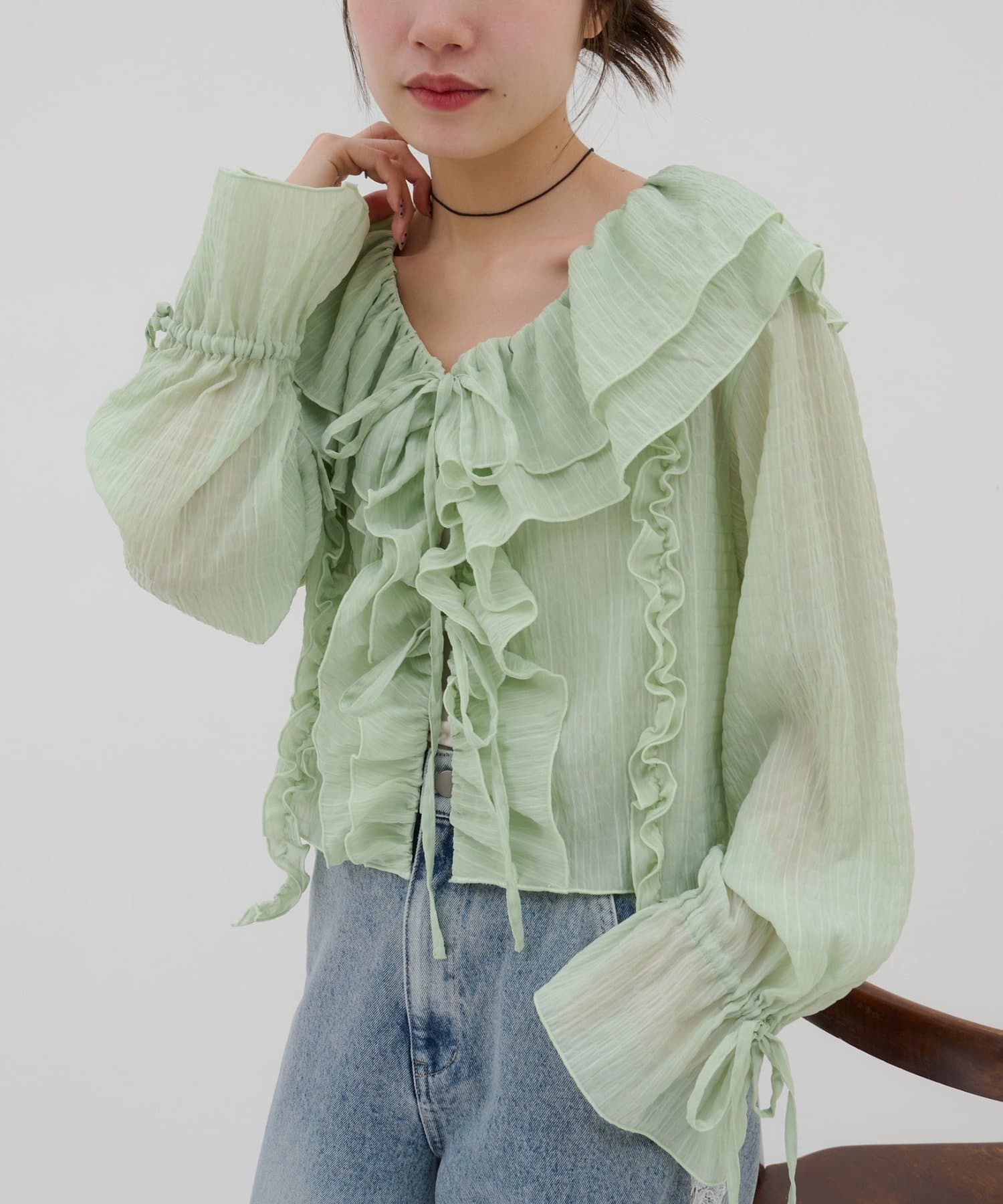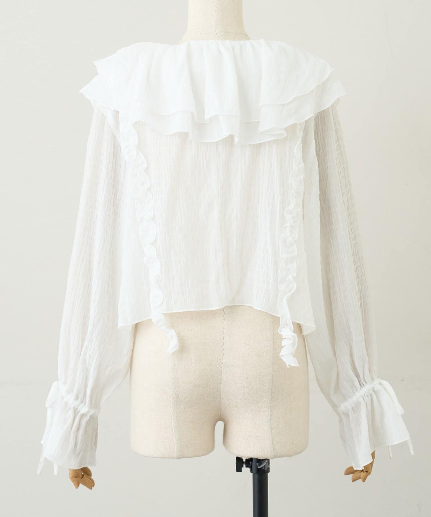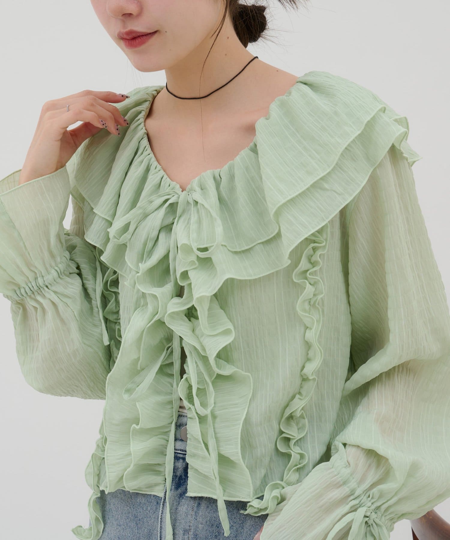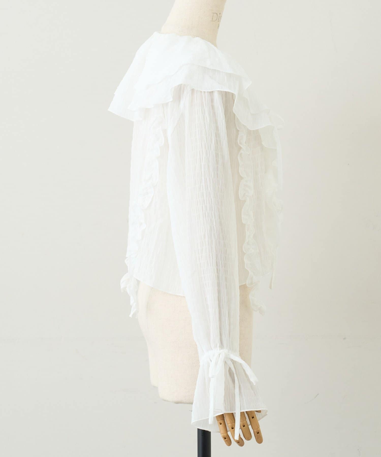 【umm./花柄&無地】生地ジャガードフリルブラウス