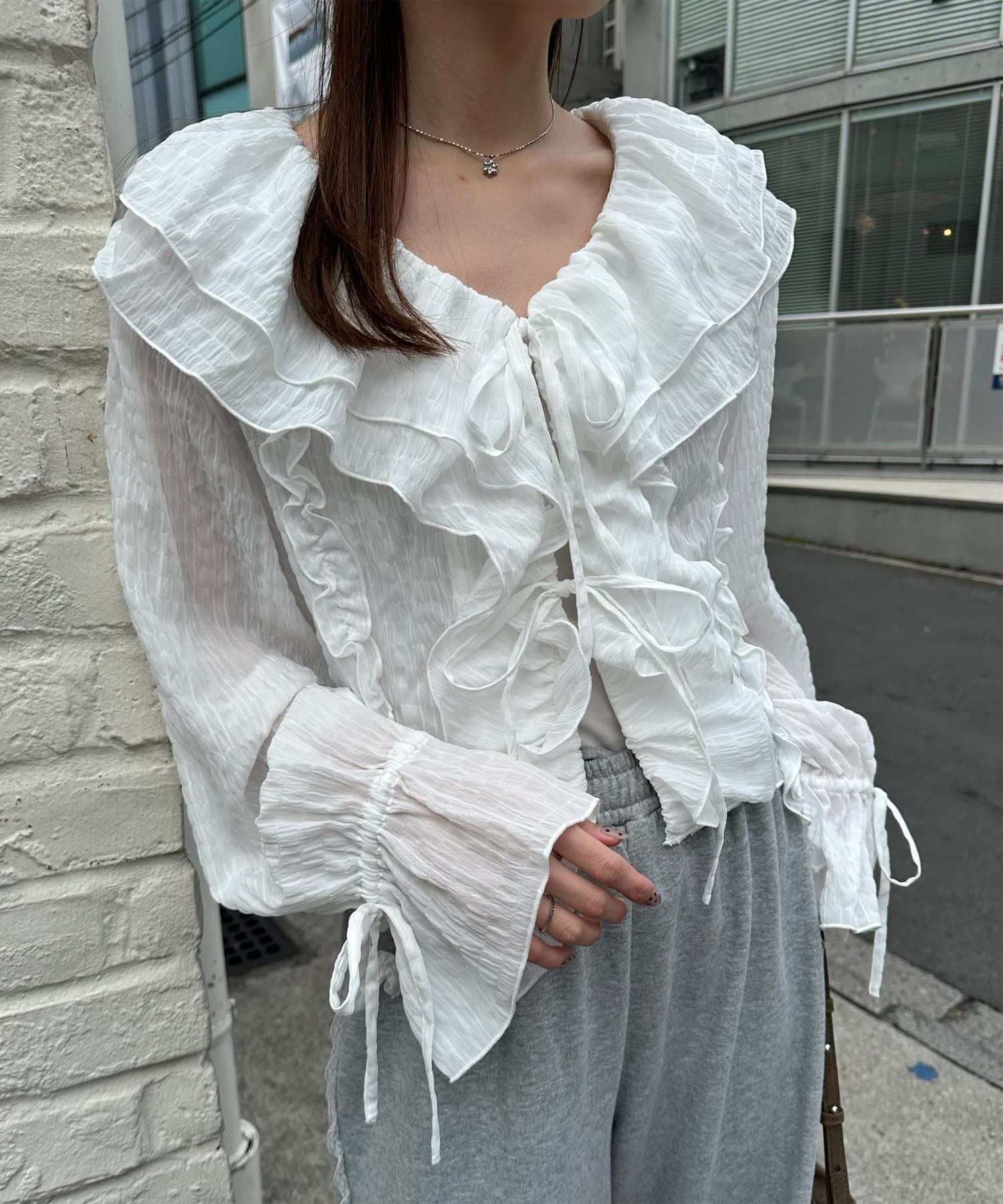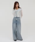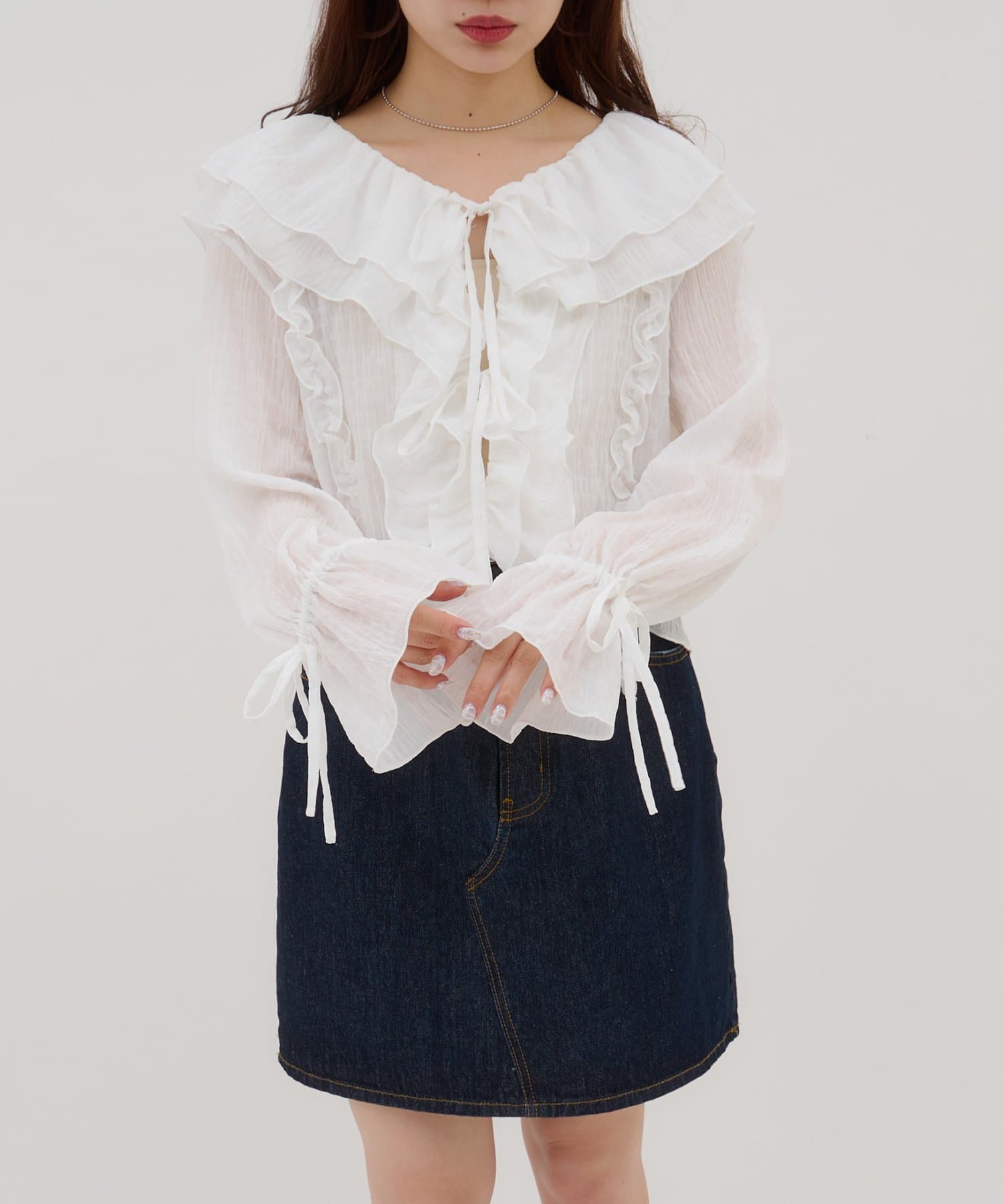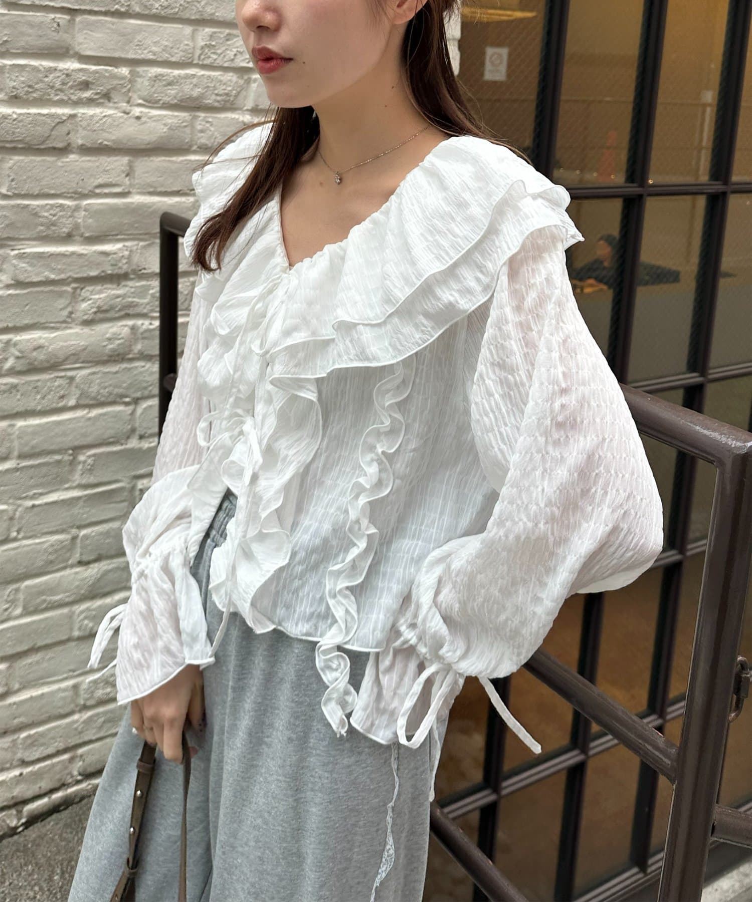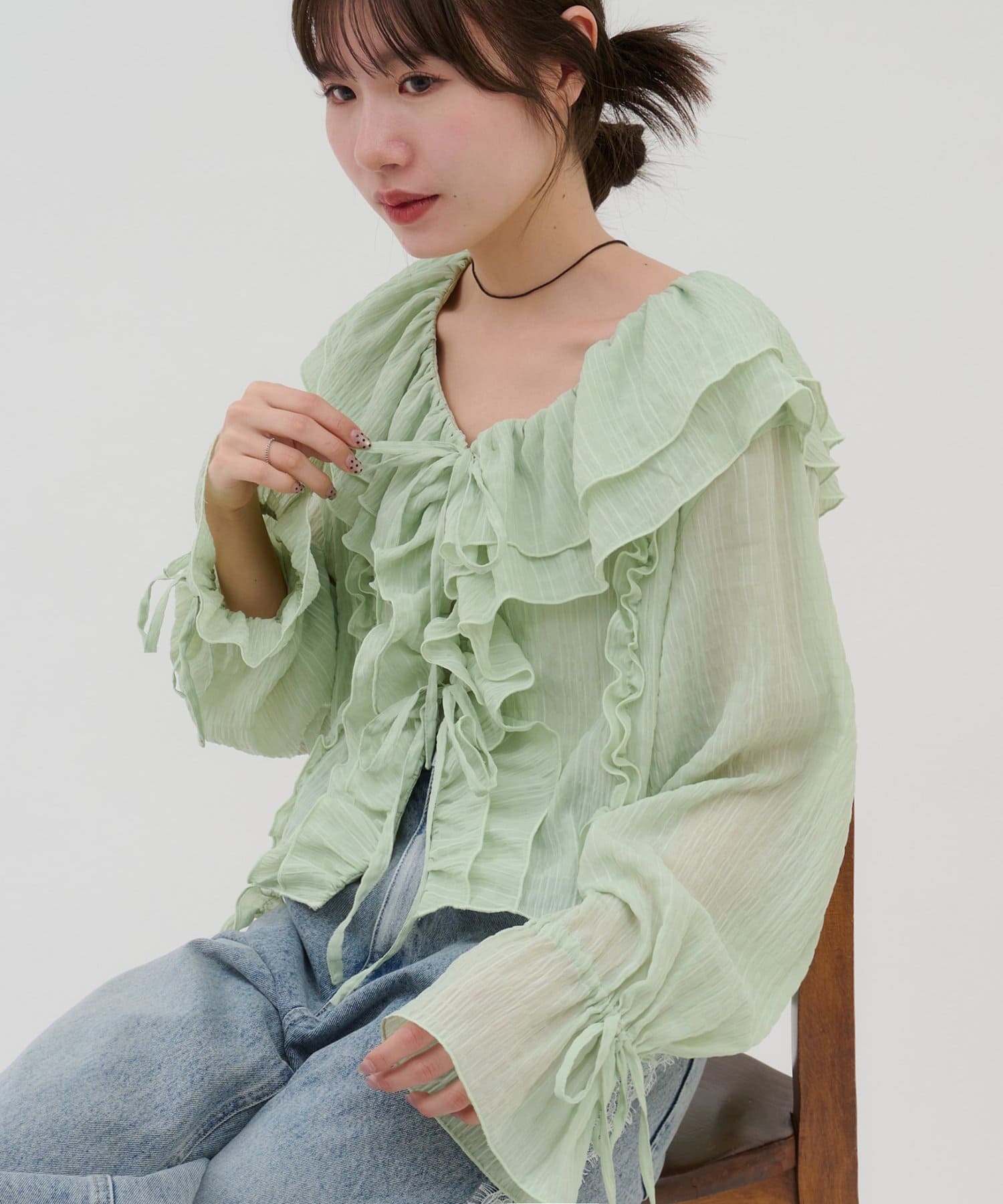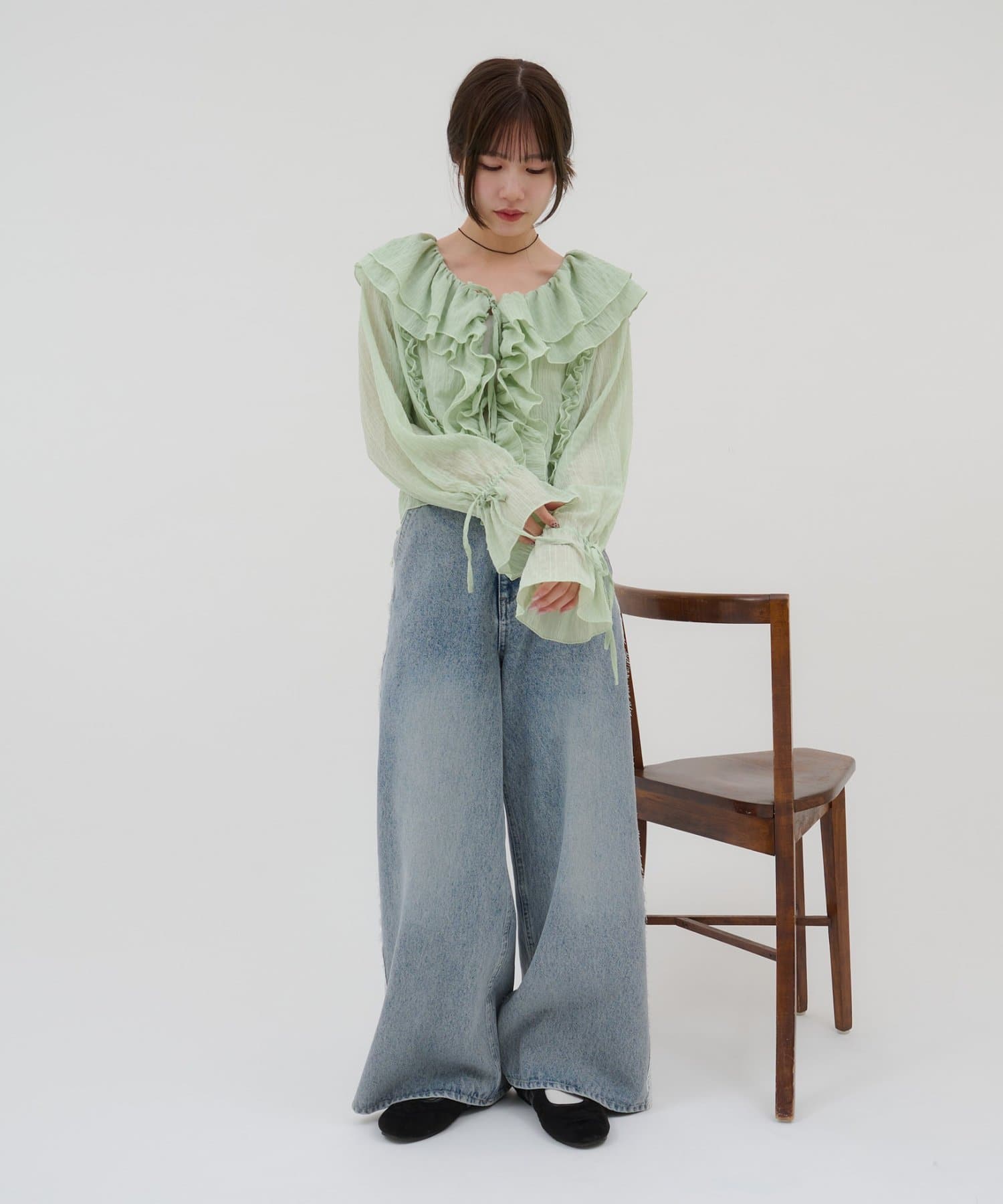 【umm./花柄&無地】生地ジャガードフリルブラウス